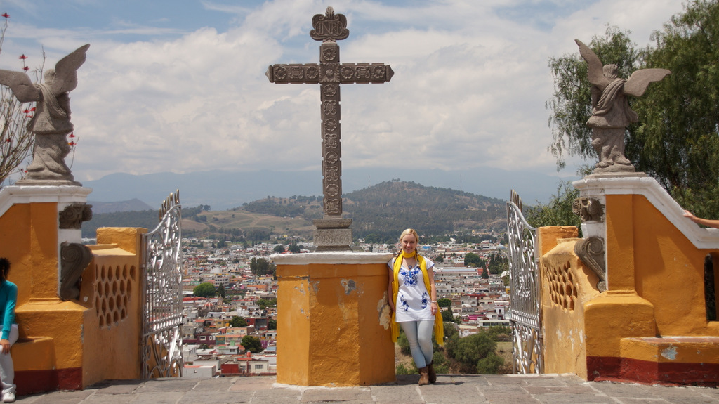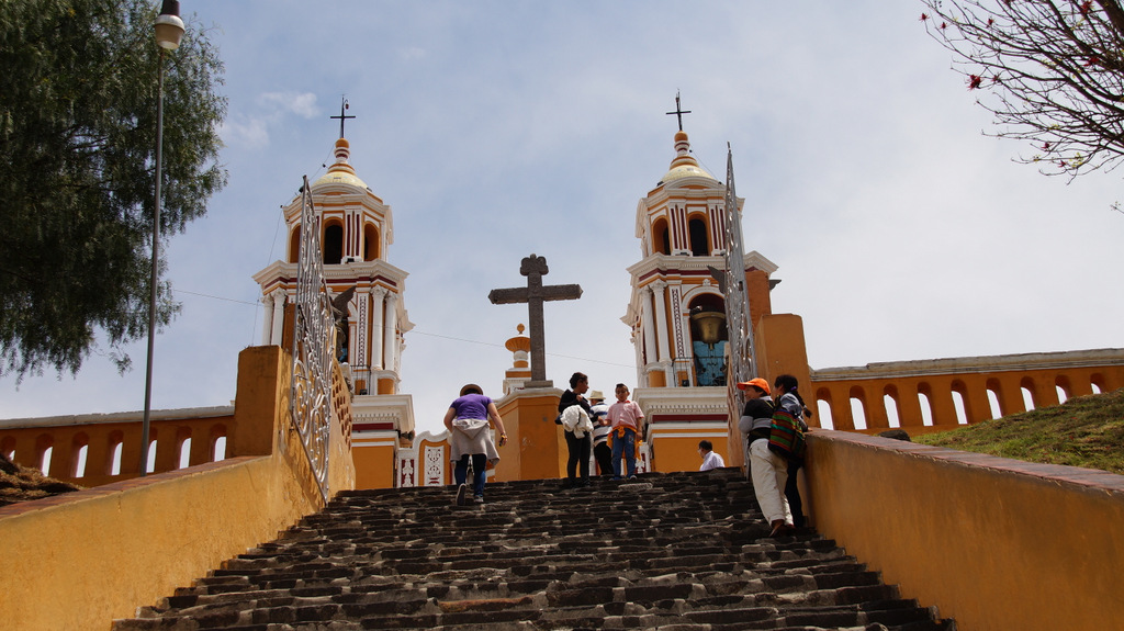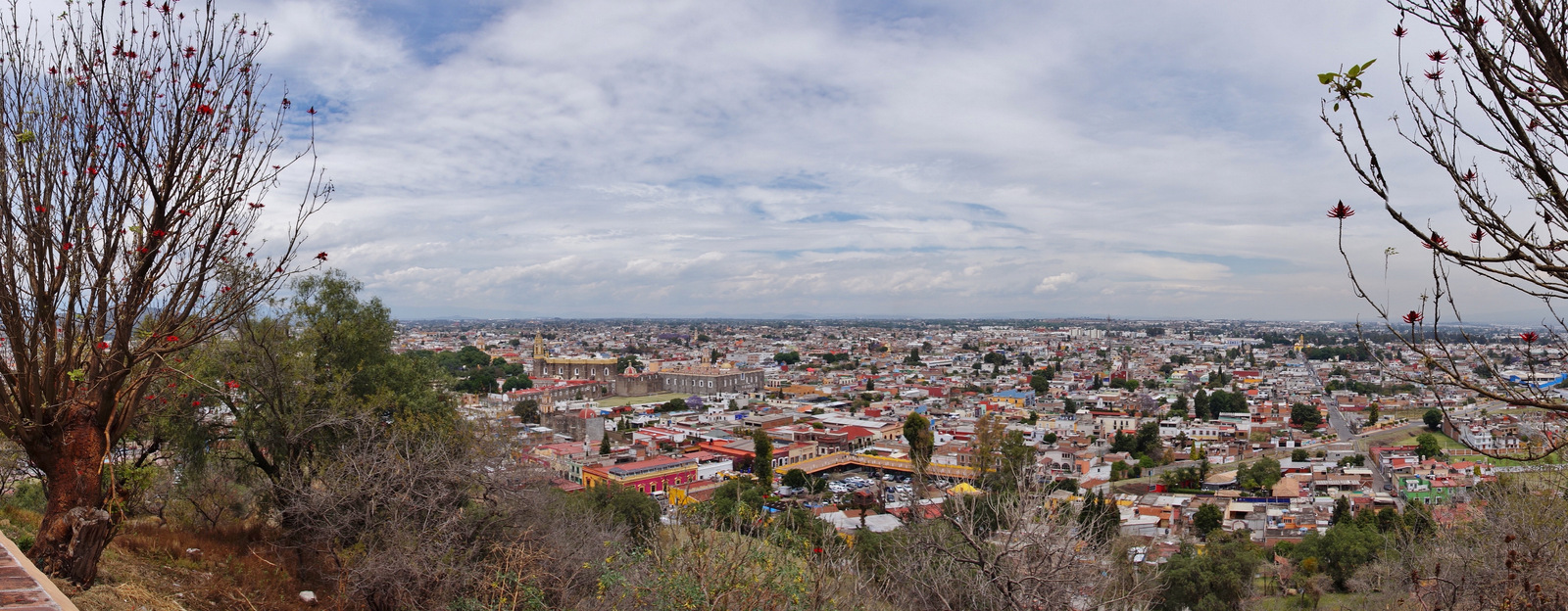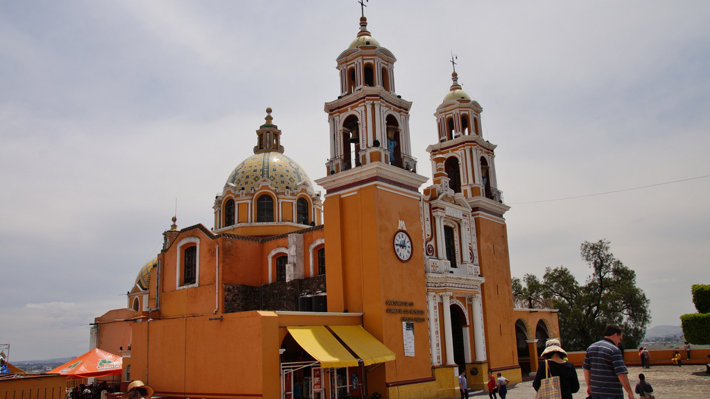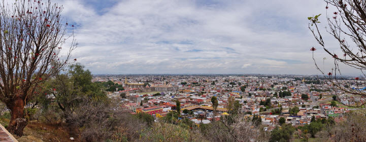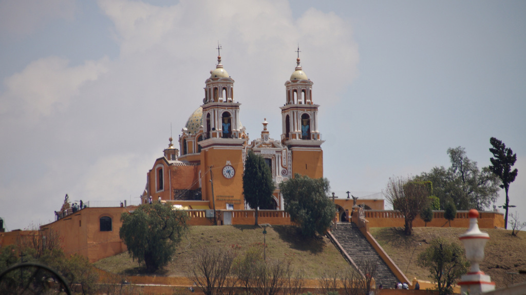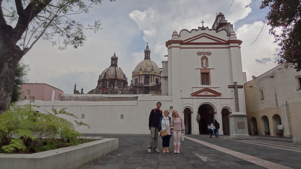 | Heute ist Samstag und Jenny muss nicht arbeiten. So nutzen wir die Gelegenheit und starten recht früh mit den Auto in Richtung Puebla. Es dauert schon eine ganze Weile, bis wir die Stadt hinter uns lassen können. Dabei erleben wir wie so oft in Mexico-City die riesigen sozialen Unterschiede. So fahren wir auf unserem Weg auch durch Stadtteile, wo man lieber nicht aussteigen will. Über die Autobahn nähern wir uns Puebla. Nachdem wir die markanten Vulkane am Rande von Puebla, den Popocatépetl und die Iztaccíhuatl in den letzten Tagen mehrmals von Tepépan aus sehen konnten, haben sie sich gerade heute meist hinter den Wolken versteckt. Kurz bevor wir Puebla erreichen biegen wir in Richtung Cholula ab. Hier steht die größte Pyramide der Welt, welche noch größer ist als die Cheops-Pyramide in Ägypten und die benachbarten riesigen Pyramiden von Teotihuacán. Allerdings ist diese Pyramide mit Erde überdeckt und nur teilweise ausgegraben und daher auf den ersten Blick nicht so imposant wie die klassischen Pyramiden. Unser Weg führt uns durch die inneren Gänge der Pyramide und anschließend steigen wir hinauf auf die Spitze, wo die spanischen Kolonialisten ein markante Kirche errichtet haben. Von hier oben hat man einen tollen Blick über Cholula - leider aber nicht zu den weiterhin wolkenumhüllten Vulkanen. Von hier oben können wir gut beobachten, wie am Fuß der Pyramide sich gerade Voladores fertig machen, um sich aus luftiger Höhe kopfüber nach unten zu "drehen". Dann geht es weiter nach Puebla. Nachdem wir einen Parkplatz gefunden haben bummeln wir durch die Stadt. Das haben aber zum gleichen Moment recht viele Leute vor, so dass es teilweise recht eng wird in den Straßen. Puebla hat im Innenstadtbereich auch jede Menge zu bieten. Rund um den Zocalo finden sich viele koloniale Fassaden, meist reicht mit Azulejos verkleidet. Markantester Punkt ist natürlich die große Kathedrale. Nachdem wir dann noch leckere Cemitas Poblada gegessen haben, machen wir uns auf die Rückfahrt nach Mexiko-City. Nachdem wir den ganzen Tag bei strahlendem Sonnenschein unterwegs waren werden wir von einem Gewitterregen in Mexico-City empfangen. Am Abend packen wir dann noch unsere Koffer, den morgen geht es sehr zeitig los in Richtung Aeropuerto. | |