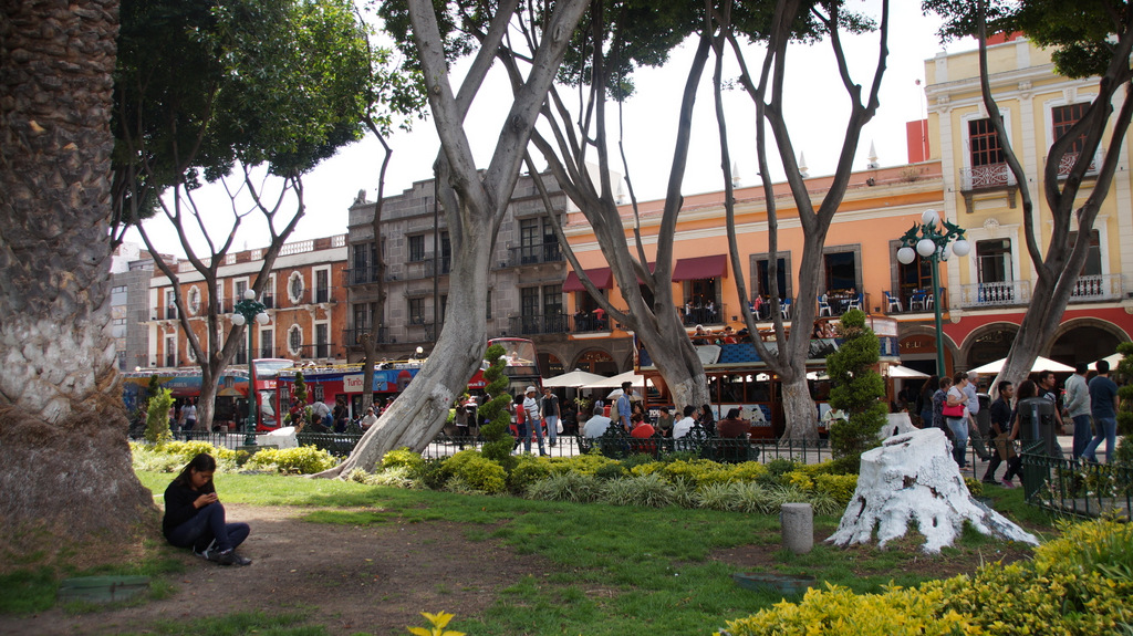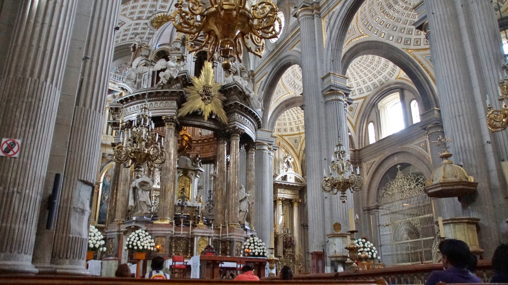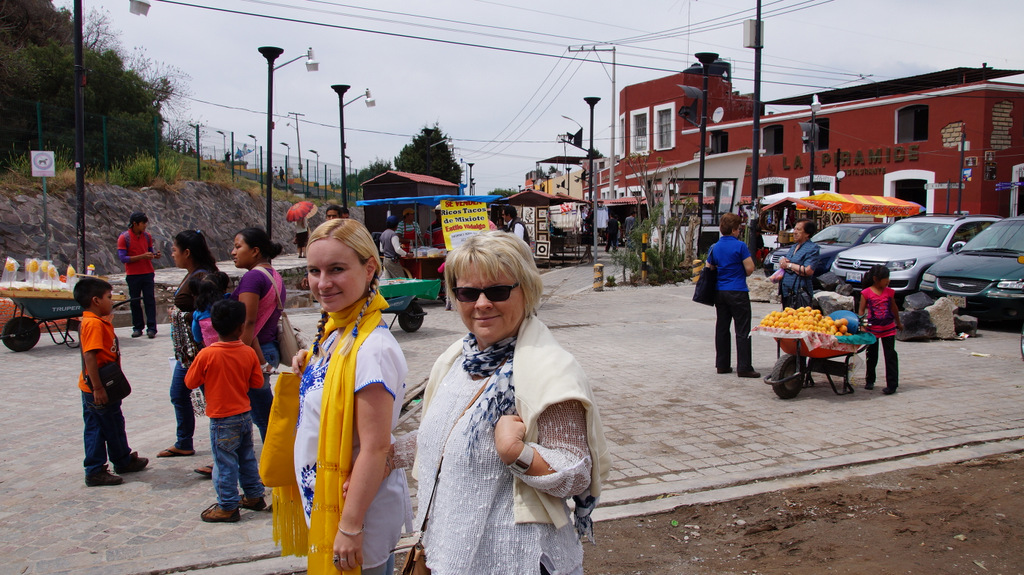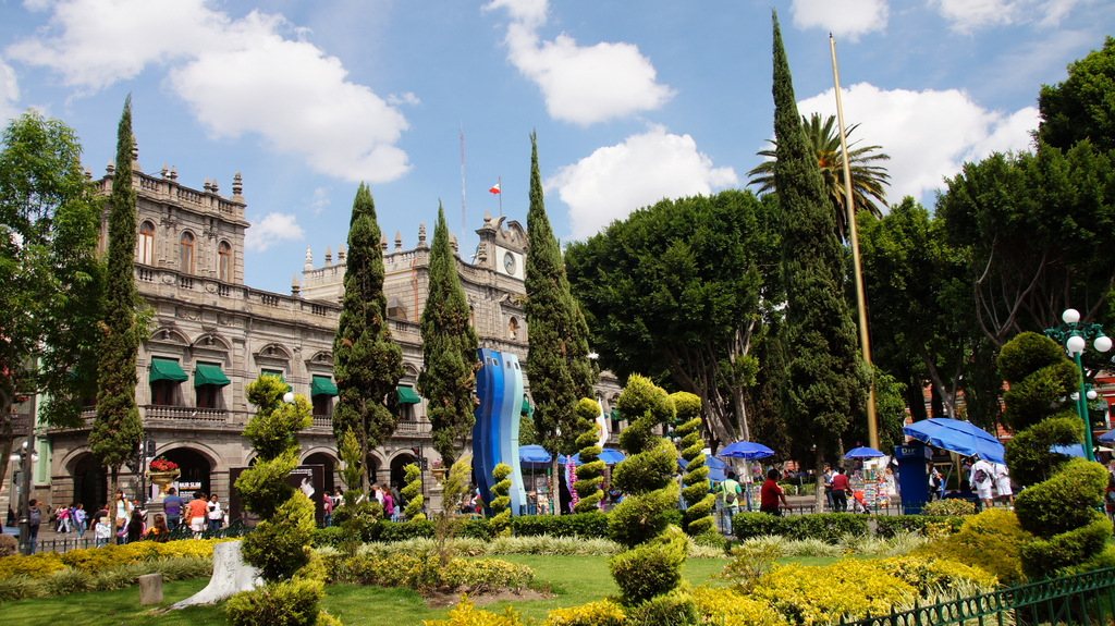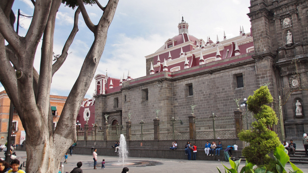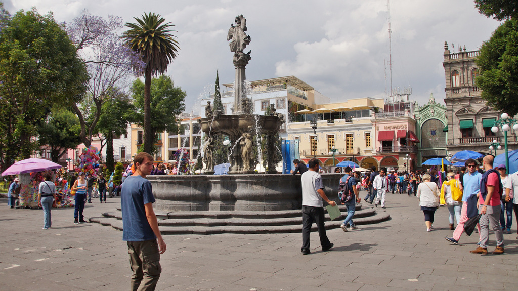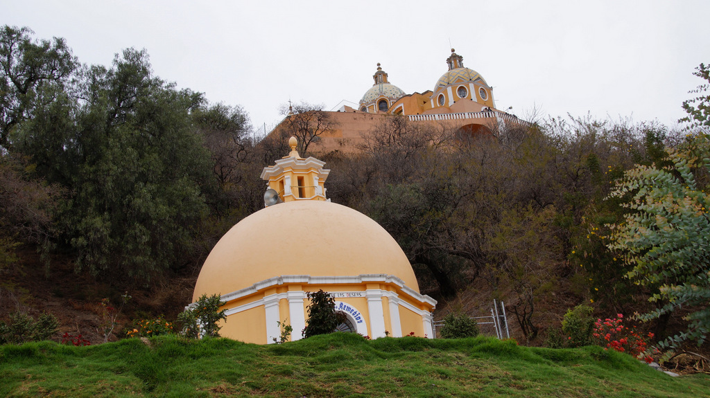 | Heute ist Samstag und Jenny muss nicht arbeiten. So nutzen wir die Gelegenheit und starten recht früh mit den Auto in Richtung Puebla. Es dauert schon eine ganze Weile, bis wir die Stadt hinter uns lassen können. Dabei erleben wir wie so oft in Mexico-City die riesigen sozialen Unterschiede. So fahren wir auf unserem Weg auch durch Stadtteile, wo man lieber nicht aussteigen will. Über die Autobahn nähern wir uns Puebla. Nachdem wir die markanten Vulkane am Rande von Puebla, den Popocatépetl und die Iztaccíhuatl in den letzten Tagen mehrmals von Tepépan aus sehen konnten, haben sie sich gerade heute meist hinter den Wolken versteckt. Kurz bevor wir Puebla erreichen biegen wir in Richtung Cholula ab. Hier steht die größte Pyramide der Welt, welche noch größer ist als die Cheops-Pyramide in Ägypten und die benachbarten riesigen Pyramiden von Teotihuacán. Allerdings ist diese Pyramide mit Erde überdeckt und nur teilweise ausgegraben und daher auf den ersten Blick nicht so imposant wie die klassischen Pyramiden. Unser Weg führt uns durch die inneren Gänge der Pyramide und anschließend steigen wir hinauf auf die Spitze, wo die spanischen Kolonialisten ein markante Kirche errichtet haben. Von hier oben hat man einen tollen Blick über Cholula - leider aber nicht zu den weiterhin wolkenumhüllten Vulkanen. Von hier oben können wir gut beobachten, wie am Fuß der Pyramide sich gerade Voladores fertig machen, um sich aus luftiger Höhe kopfüber nach unten zu "drehen". Dann geht es weiter nach Puebla. Nachdem wir einen Parkplatz gefunden haben bummeln wir durch die Stadt. Das haben aber zum gleichen Moment recht viele Leute vor, so dass es teilweise recht eng wird in den Straßen. Puebla hat im Innenstadtbereich auch jede Menge zu bieten. Rund um den Zocalo finden sich viele koloniale Fassaden, meist reicht mit Azulejos verkleidet. Markantester Punkt ist natürlich die große Kathedrale. Nachdem wir dann noch leckere Cemitas Poblada gegessen haben, machen wir uns auf die Rückfahrt nach Mexiko-City. Nachdem wir den ganzen Tag bei strahlendem Sonnenschein unterwegs waren werden wir von einem Gewitterregen in Mexico-City empfangen. Am Abend packen wir dann noch unsere Koffer, den morgen geht es sehr zeitig los in Richtung Aeropuerto. | |