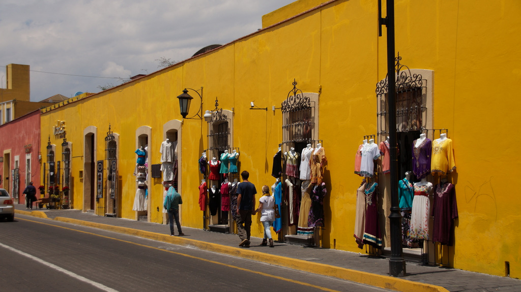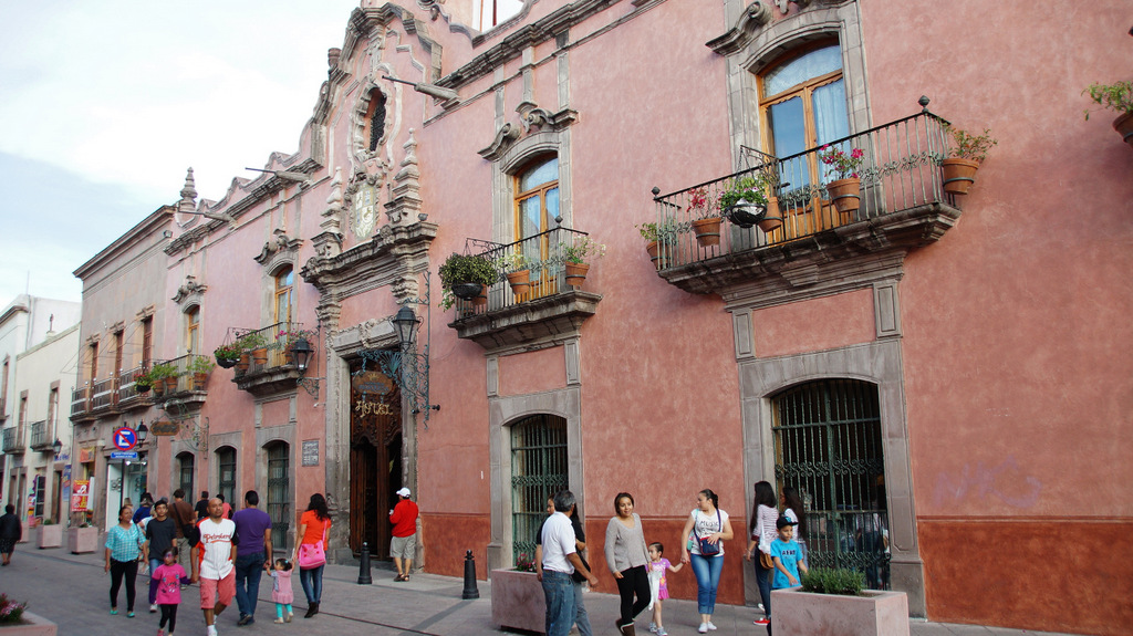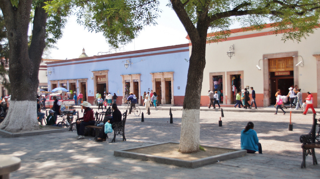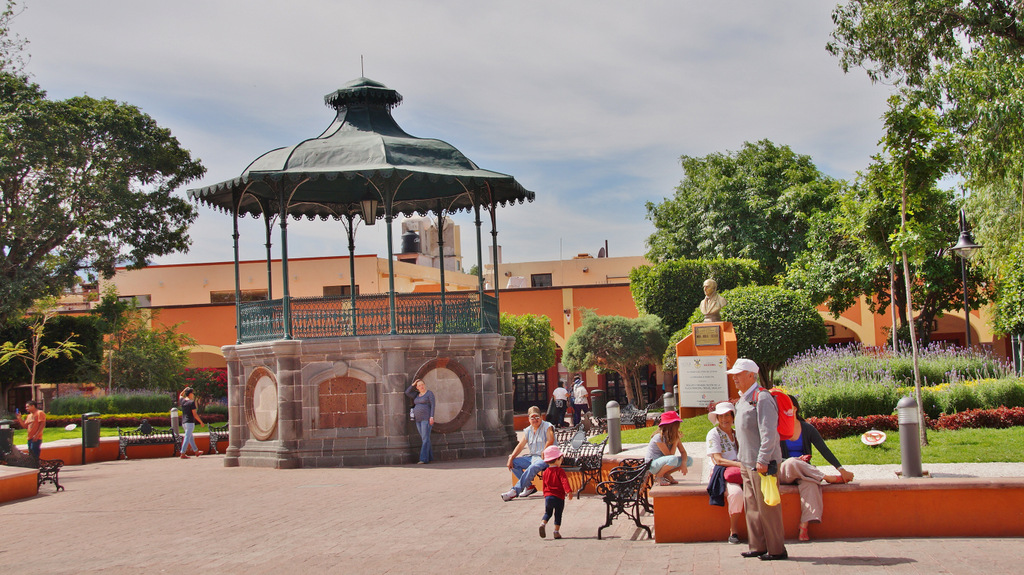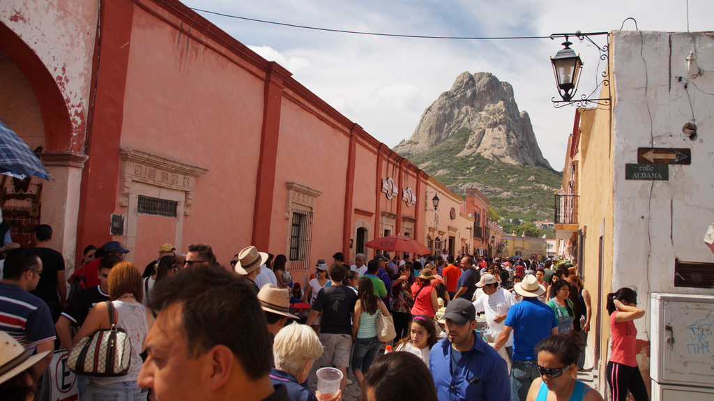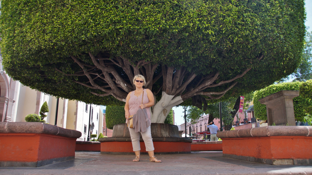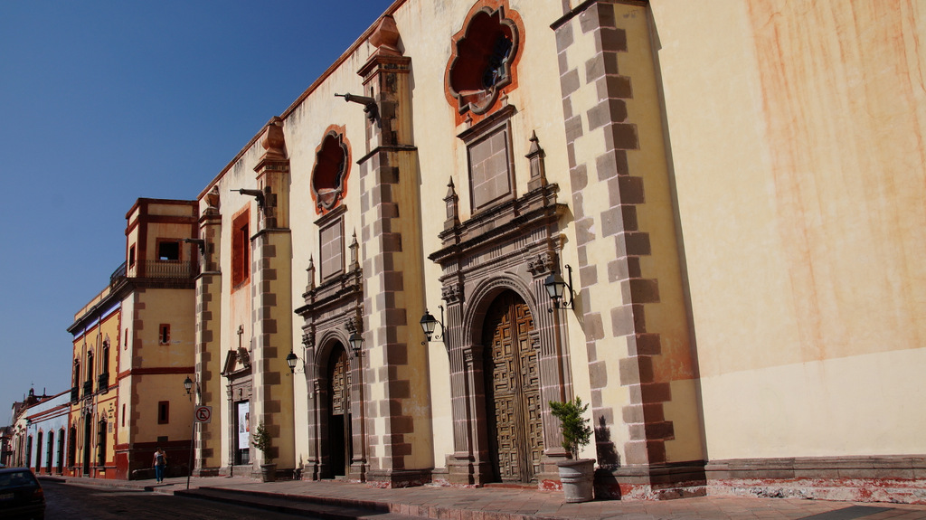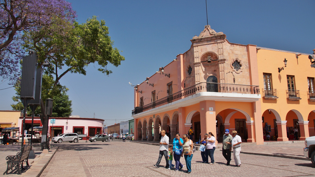 | Kurz nach 07:00 Uhr brechen wir mit dem Auto auf. Wie gestern geht es über die Periferico westlich am Stadtzentrum vorbei. Im Norden der Stadt biegen wir dann auf die Autobahn in Richtung Querétaro ein. Bei San Juan del Rio biegen wir ab und erreichen kurze Zeit später unser erstes Ziel - Tequisquiapan. Dieser Ort ist ein sog. Pueblo magico, was man dem Ort in positiver Hinsicht auch ansieht. Hier treffen wir auf viele tolle Fassaden und alte Kolonialarchitektur. Alles ist recht chic herausgeputzt und man hat das Gefühl, eher in Spanien zu sein. Hier nutzen wir das sonnige Wetter für einen ausgedehnten Ortsbummel. Hier in Tequisquiapan ist auch der geofrafische Mittelpunkt Mexicos, was durch ein Denkmal im Ort auch entsprechend dokumentiert wird. Da wir entlang der Routa Queso y Vinos (Käse- und Weinroute) unterwegs sind probieren wir den lokalen Käse und erstehen eine Ecke für das nächste Frühstück. Dann fahren wir weiter nach Norden bis nach Cadereyta. Auch dieses ist ein Puebla magico, auch wenn es nicht ganz mit Tequisquiapan mithalten kann. Auch hier sind die Straßen des Ortes typisch quadratisch angelegt und der Ort wird von typisch spanisch-kolonial anmutenden Flachbauten geprägt. Markantestes Bauwerk ist natürlich auch hier die Ortskirche, welche wir besichtigen. Dann lassen wir Cadereyta hinter uns und fahren weiter nach Bernal. Auch dieser Ort ist ein "magisches Dorf" und wird vom drittgrößten Monolithen der Welt, dem Peña de Bernal überragt. Da dieser Ort wirklich ein Schmückkästchen ist haben bei diesem herrlichen Wetter und durch die Osterfeiertage viele Besucher den Weg hierher nach Bernal gefunden, so dass wir erst nach einigem Suchen einen Parkplatz finden. In den alten Gassen ist es dann wirklich sehr eng, doch das was es hier zu sehen gibt, ist schon außergewöhnlich. Ein kleiner Ort wie aus dem Bilderbuch und viele tolle Fassaden. Natürlich gibt es auch hier eine Unzahl von kleinen Läden und Geschäften, welche allerlei Dinge anbieten. Am Abend geht die Fahrt weiter in die Provinzhauptstadt Querétaro, wo wir im La Hija del Alfarero einchecken. Nach einer kurzen Erfrischung machen wir uns ins Centro Historico auf den Weg. das erreichen wir nach nur kurzem Fußmarsch, da unser Hotel ziemlich in der Innenstadt liegt. Auch hier ist heute Abend, sicher wegen des Osterwochenendes, sehr viel los und es sind unzählige Menschen unterwegs. Auch Querétaro hat eine tolle historische Innenstadt und gefühlte 1000 Kirchen. Am Abend ist alles sehr schön angestrahlt. Nachdem wir heute sehr lange unterwegs waren fallen wir gegen 22:00 Uhr ziemlich müde ins Bett. | |