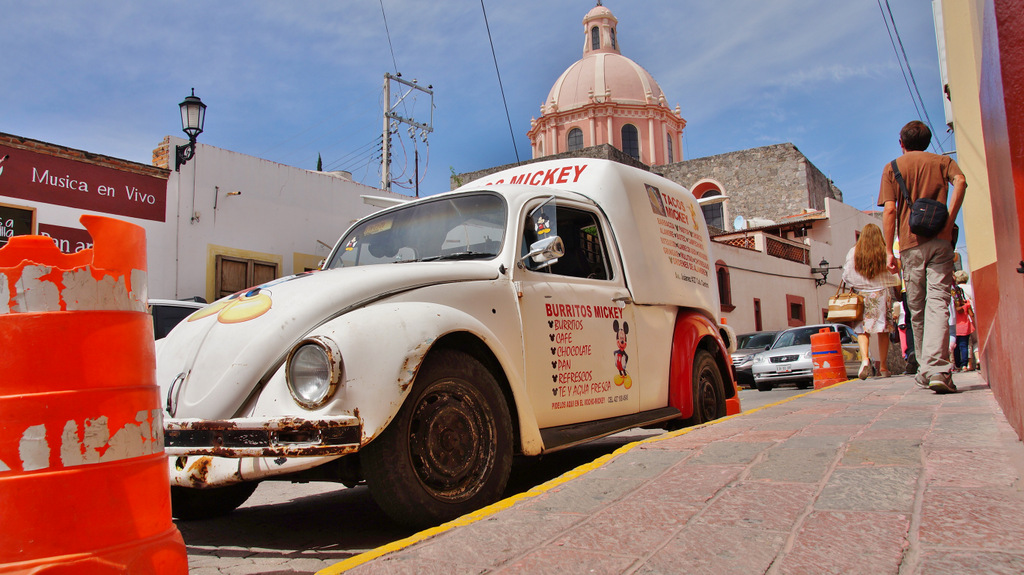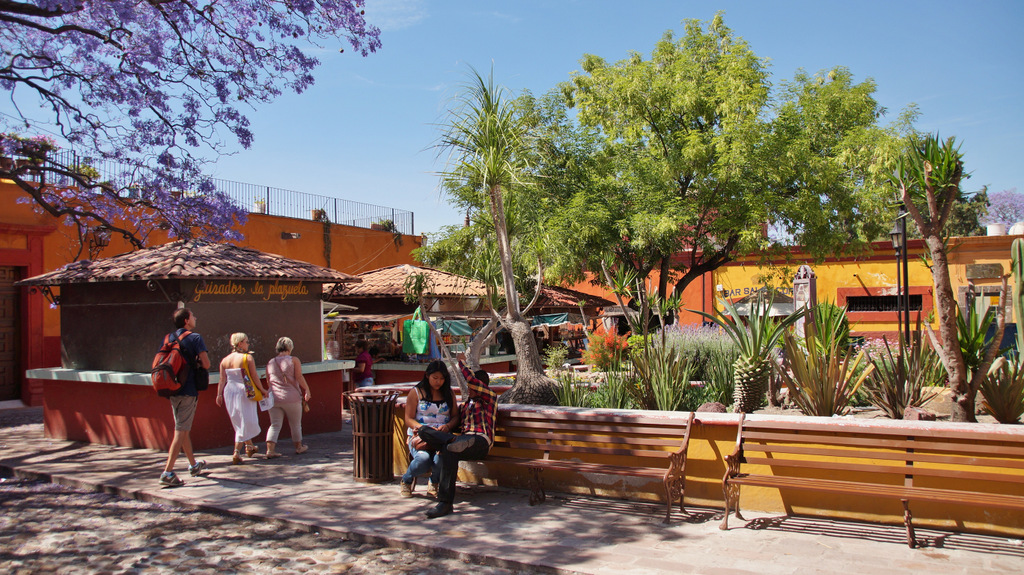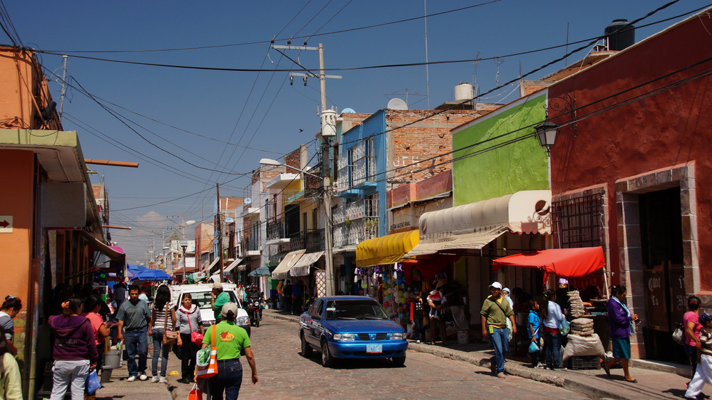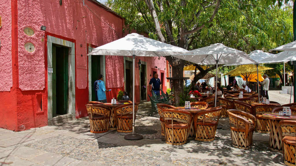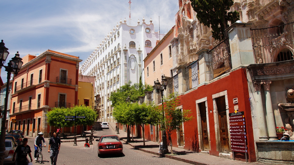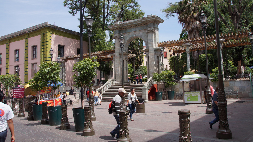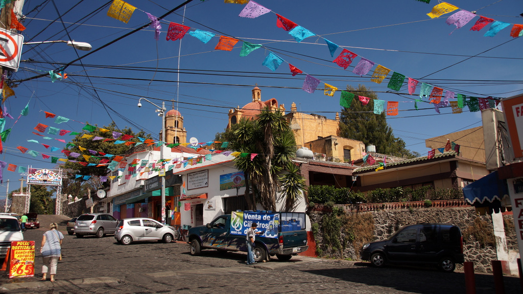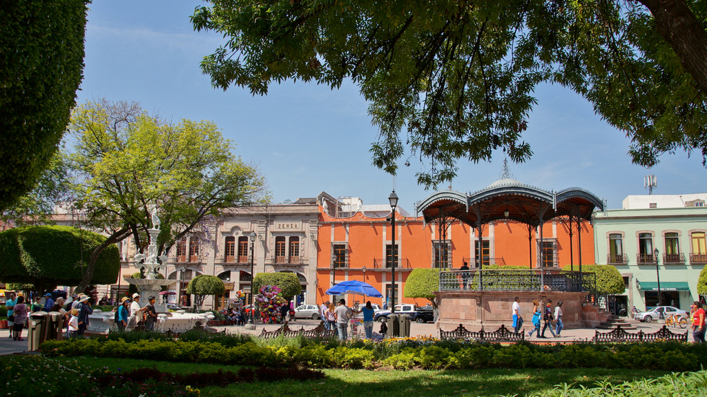 | Kurz nach 07:00 Uhr brechen wir mit dem Auto auf. Wie gestern geht es über die Periferico westlich am Stadtzentrum vorbei. Im Norden der Stadt biegen wir dann auf die Autobahn in Richtung Querétaro ein. Bei San Juan del Rio biegen wir ab und erreichen kurze Zeit später unser erstes Ziel - Tequisquiapan. Dieser Ort ist ein sog. Pueblo magico, was man dem Ort in positiver Hinsicht auch ansieht. Hier treffen wir auf viele tolle Fassaden und alte Kolonialarchitektur. Alles ist recht chic herausgeputzt und man hat das Gefühl, eher in Spanien zu sein. Hier nutzen wir das sonnige Wetter für einen ausgedehnten Ortsbummel. Hier in Tequisquiapan ist auch der geofrafische Mittelpunkt Mexicos, was durch ein Denkmal im Ort auch entsprechend dokumentiert wird. Da wir entlang der Routa Queso y Vinos (Käse- und Weinroute) unterwegs sind probieren wir den lokalen Käse und erstehen eine Ecke für das nächste Frühstück. Dann fahren wir weiter nach Norden bis nach Cadereyta. Auch dieses ist ein Puebla magico, auch wenn es nicht ganz mit Tequisquiapan mithalten kann. Auch hier sind die Straßen des Ortes typisch quadratisch angelegt und der Ort wird von typisch spanisch-kolonial anmutenden Flachbauten geprägt. Markantestes Bauwerk ist natürlich auch hier die Ortskirche, welche wir besichtigen. Dann lassen wir Cadereyta hinter uns und fahren weiter nach Bernal. Auch dieser Ort ist ein "magisches Dorf" und wird vom drittgrößten Monolithen der Welt, dem Peña de Bernal überragt. Da dieser Ort wirklich ein Schmückkästchen ist haben bei diesem herrlichen Wetter und durch die Osterfeiertage viele Besucher den Weg hierher nach Bernal gefunden, so dass wir erst nach einigem Suchen einen Parkplatz finden. In den alten Gassen ist es dann wirklich sehr eng, doch das was es hier zu sehen gibt, ist schon außergewöhnlich. Ein kleiner Ort wie aus dem Bilderbuch und viele tolle Fassaden. Natürlich gibt es auch hier eine Unzahl von kleinen Läden und Geschäften, welche allerlei Dinge anbieten. Am Abend geht die Fahrt weiter in die Provinzhauptstadt Querétaro, wo wir im La Hija del Alfarero einchecken. Nach einer kurzen Erfrischung machen wir uns ins Centro Historico auf den Weg. das erreichen wir nach nur kurzem Fußmarsch, da unser Hotel ziemlich in der Innenstadt liegt. Auch hier ist heute Abend, sicher wegen des Osterwochenendes, sehr viel los und es sind unzählige Menschen unterwegs. Auch Querétaro hat eine tolle historische Innenstadt und gefühlte 1000 Kirchen. Am Abend ist alles sehr schön angestrahlt. Nachdem wir heute sehr lange unterwegs waren fallen wir gegen 22:00 Uhr ziemlich müde ins Bett. | |