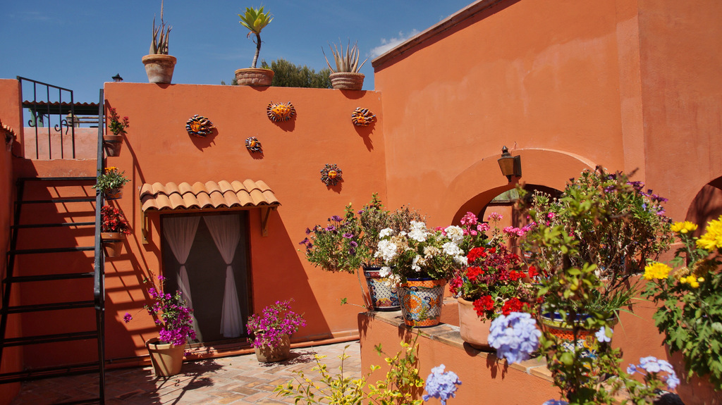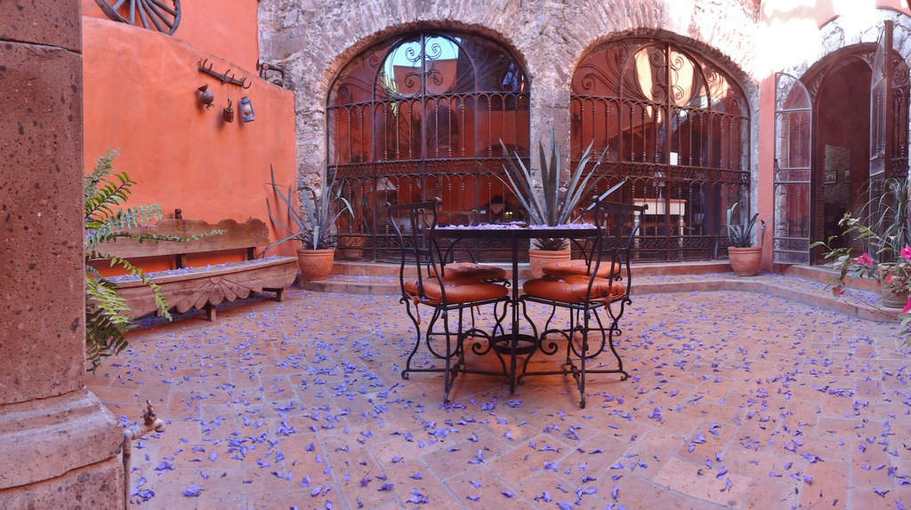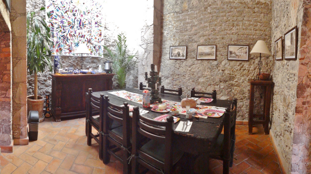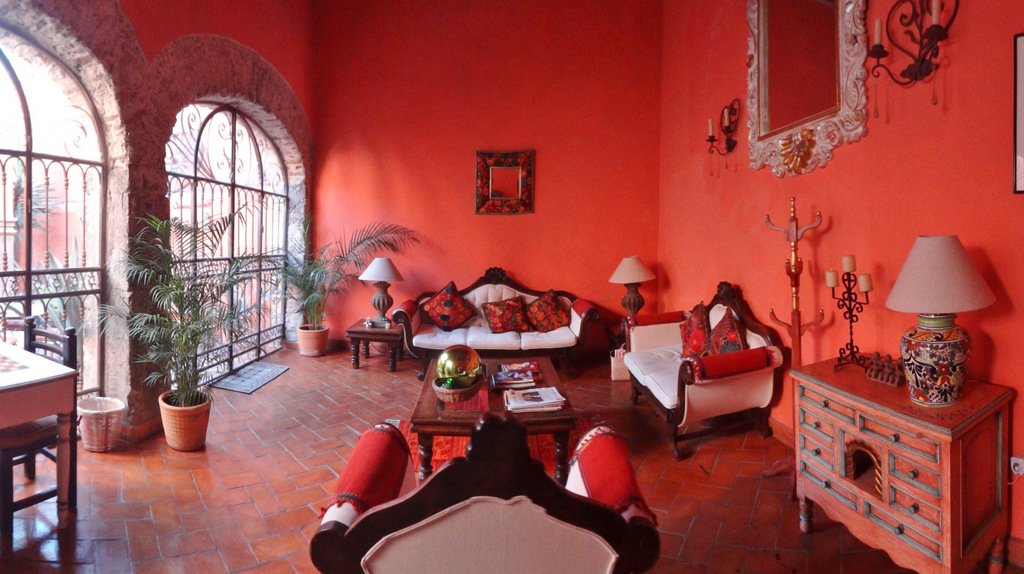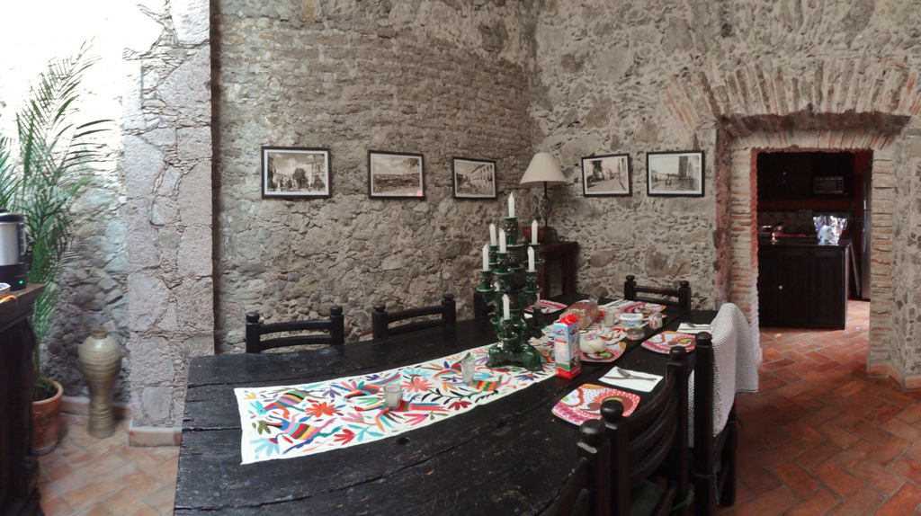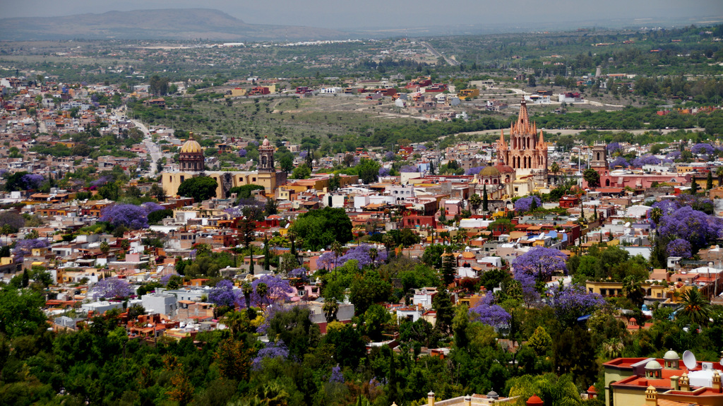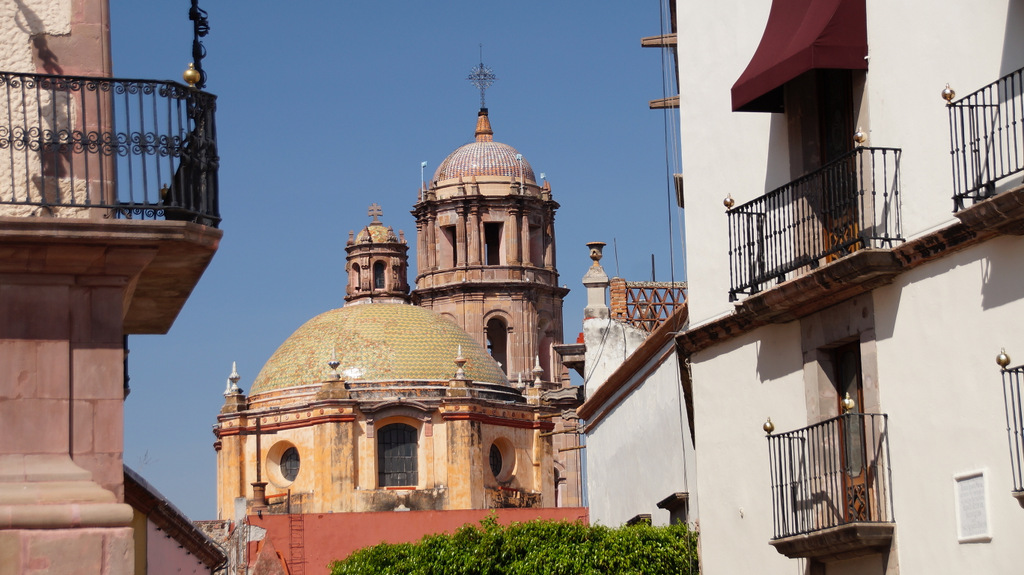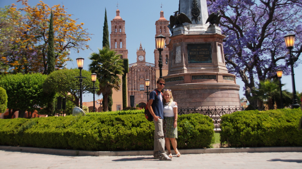 | Da wir glücklicherweise in San Miguel 2 Tage verbringen, müssen wir heute nicht in aller Frühe starten. So bereiten wir uns unser Frühstück und genießen es in aller Ruhe in der Lounge unserer Casa Colibri. Dann führt uns der Weg hinüber nach Dolores Hidalgo, was wir nach einer knappen Stunde Fahrt erreichen. Nach erfolgreicher Parkplatzsuche besichtigen wir die große Kirche des Ortes. Wie in vielen Orten in dieser Gegend gibt es auch hier einen schön gestalteten Zocalo, welcher inmitten eines Häuserquadrats sehr schön grün mit vielen Pflanzen gestaltet ist. Dann bummeln wir durch die Gassen des Ortes und dann fahren wir auf gleicher Strecke wieder zurück nach San Miguel de Allende. Den Nachmittag verbringen wir dann bei herrlicher Sonne auf der Dachterrasse der Casa Colibri. Ein paar Stunden relaxen zwischendurch sind auch mal notwendig. Im späten Nachmittag drehen wir dann noch eine Runde durch San Miguel de Allende. Heute ist es deutlich ruhiger als gestern und die Ostertouristen sind nicht mehr in der Stadt. Nach dem Abendessen sind dann die Kirchtürme, von denen es hier reichlich gibt, alle erleuchtet und wir erleben die blaue Stunde am Jardin Allende. Auch die Hauptkirche der Stadt, die Parroquía San Miguel Arcángel, ist inzwischen angestrahlt und wir genießen die entspannte Stimmung. Während Jenny und Rafa noch weiter hier verweilen, ziehen wir uns auf die Dachterrasse der Casa Colibri zurück und genießen die milde Abendstimmung. | |