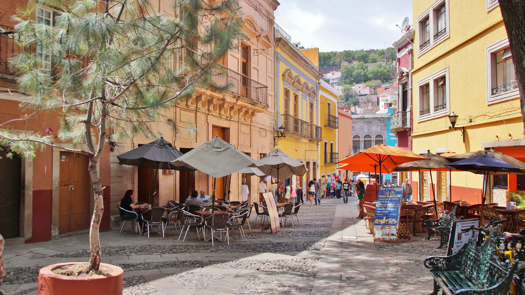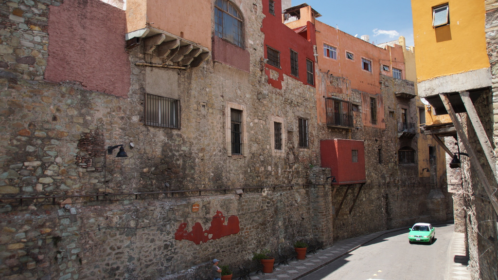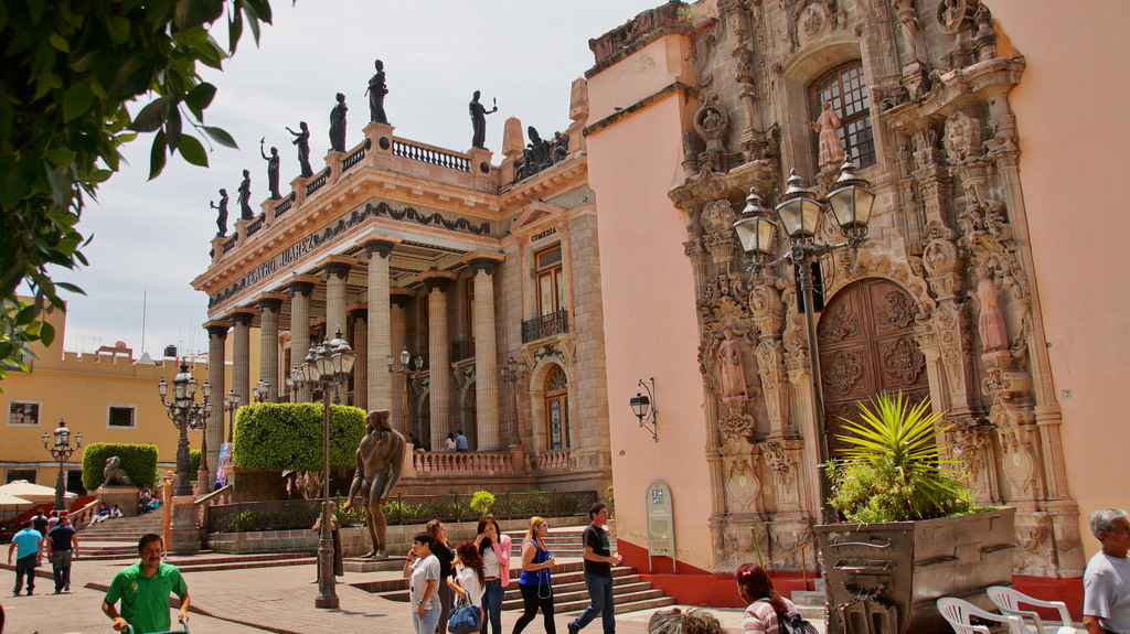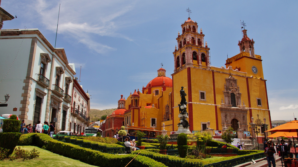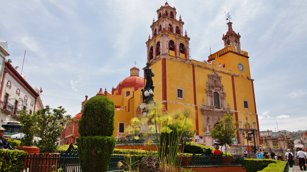 | Heute Morgen müssen wir schon wieder unsere Sachen packen. Bevor wir nach Mexico D.F. zurück fahren, steht noch ein weiteres Highlight auf unserer Tourenliste. Nach ca. 1,5 Stunden Fahrt durch fast mediterran anmutende Landschaften erreichen wir die Hauptstadt des gleichnamigen Bundeslandes Guanajuato. Inmitten von Hügeln gelegen bietet die ehemalige Bergbaustadt sehr viel Charme und Flair. Nachdem wir den Ort erreicht haben fahren wir auf der Suche nach einem Parkplatz durch ein teilweise enges und unübersichtliches Gewirr von alten Bergwerkstollen, welche immer wieder nach oben abbiegen. Dann erreichen wir ein unterirdisches Parkhaus und stehen nach wenigen Treppenstufen nach oben mitten im Centro Historico. Nachdem San Miguel de Allende eher kleinstädtisch, ländlich geprägt war, finden wir hier in Guanajuato eine eher städtische Architektur in kolonial, klassizistischer Ausprägung. Man hat das Gefühl mitten in Spanien zu sein und nicht in Mexico, was durch die Geschichte natürlich nachvollziehbar ist. Wir schlendern vorbei an vielen Kirchen. Besonders sticht die Basílica Colegiata de Nuestra Señora de Guanajuato heraus. Gegenüber des Jardin de la Unión die das klassizistische Teatro Juárez mit seiner markanten Säulenfassade. Überall gibt es zwischen den engen Straßen kleine Placetas, wo kunstvoll geschnittene Fikus-Bäume Schatten spenden. Leider drängt die Zeit uns zum Rückweg, obwohl wir gerne noch länger durch die wunderschöne alte Stadt gebummelt wären. Über Irapuato und Salamanca, vorbei an Querétaro erreichen wir die die Periferico der Hauptstadt. Hier wartet dann wieder der ganz normale Stauwahnsinn auf uns. Nach insgesamt ca. 5 Stunden treffen wir dann wieder in Xochimilco ein. | |