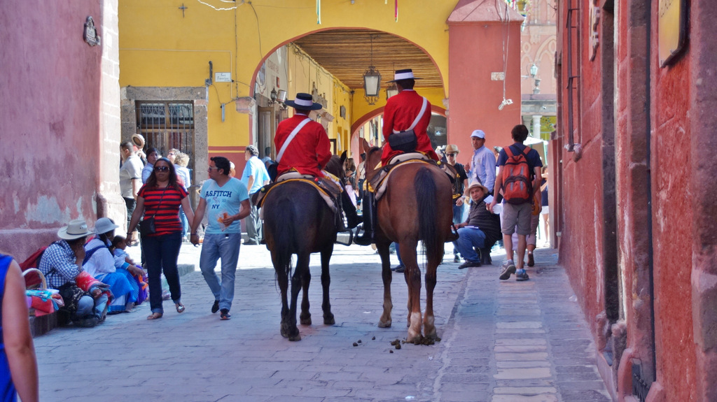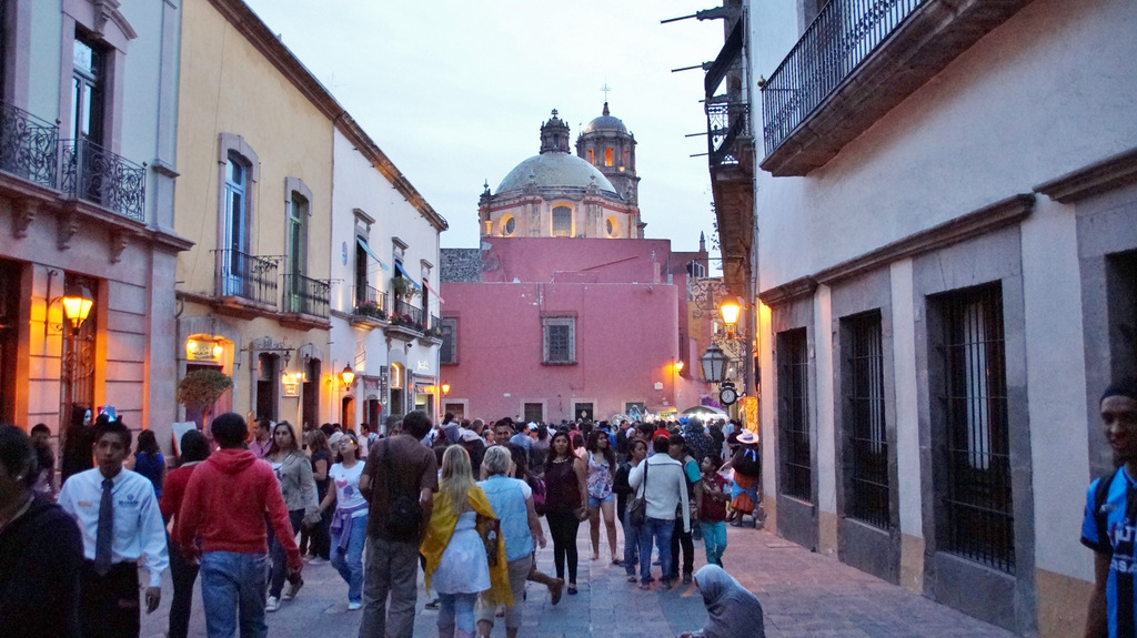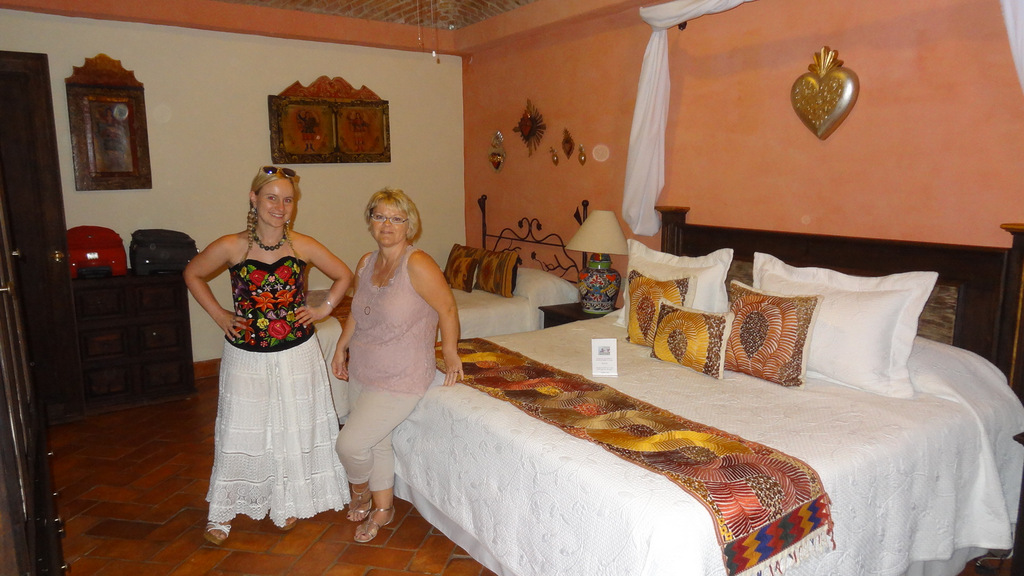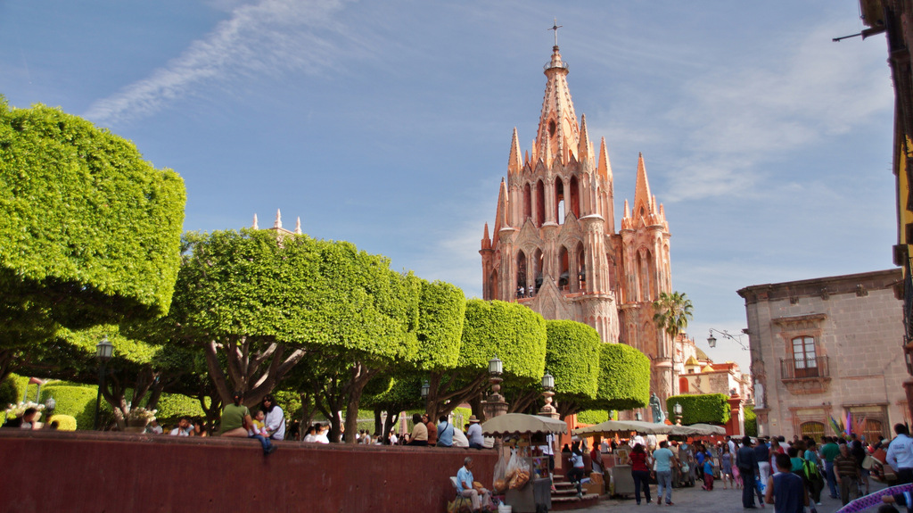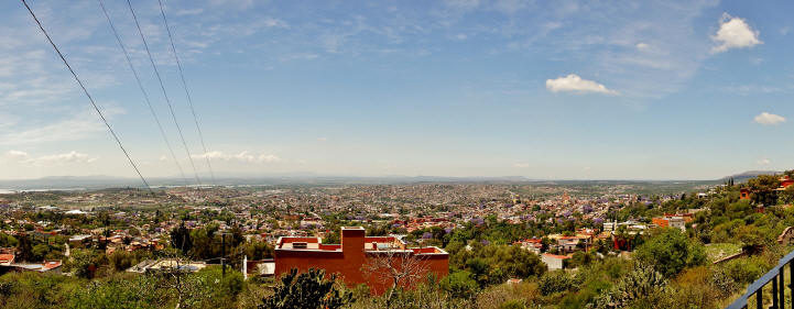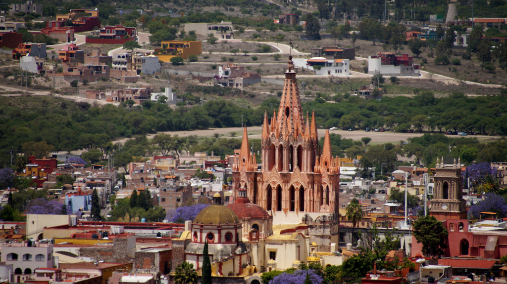 | Nach dem Frühstück drehen wir noch eine Runde durch die Innenstadt von Querétaro. Heute Morgen ist es sehr viel ruhiger und wir genießen das Flair der alten Innenstadt. Wir bummeln entspannt durch die Gassen und über die Plätze der Stadt und sehen sie heute in einem ganz anderen Licht. Gegen 13:00 Uhr brechen wir dann in Richtung San Miguel de Allende auf. Nach 1,5 Stunden Fahrt erreichen wir die Stadt. Bevor wir sie erreichen machen wir einen Stopp an einem Mirador oberhalb des Zentrums, von wo aus wir einen tollen Blick über San Miguel (140.000 Einwohner) haben. Trotz der Größe präsentiert sich San Miguel mit einer eher kleinstädtischen Atmosphäre. Die Stadt ist wirklich ein absolutes Highlight und daher sind hier wieder mehr Touristen anzutreffen. Viele Amerikaner und Kanadier haben hier ihr Häuschen im Süden und man merkt schon überall, dass jeder Menge fremdes Kapital hier steckt. Nach einigem suchen finden wir dann unser Boutique-Hotel Casa Colibri. Mit gerade einmal 4 Zimmern ist es ein sehr individuelles Haus mit viel Liebe zum Detail. Das mit viel Aufwand restaurierte Haus bietet sehr viel Charme. So haben wir neben einer großzügigen Lounge eine Dachterrasse, wo man nicht nur toll sitzen und relaxen kann, sondern auch abends einen phantastischen Blick über die Silhouette der Stadt hat. Nach der Begrüßung durch unsere Gastgeber starten wir dann sofort zu einem ersten Bummel durch den Ort. Der Ort wird durch eine Vielzahl von Kirchen geprägt, welche von der größten, direkt am Zocalo gelegen und aus roten Buntsandstein erbaut, überragt wird. Es erübrigt sich zu betonen, dass natürlich auch heute zum Ostersonntag viele Leute in der Stadt unterwegs sind. San Miguel de Allende ist mit Sicherheit eine der schönsten mexikanischen Orte. Es drängt sich ein gewisser Vergleich mit dem spanischen Toledo auf, auch wenn es nicht ganz zu vergleichen ist. Auf alle Fälle aber ist San Miguel ein Kleinod, was wir sehr genießen. Nach einen italienischen Abendessen ziehen wir uns dann mit einem Glas Wein auf die Dachterrasse der Casa Colibri zurück und genießen den Blick über die abendliche Stadt mit ihren erleuchteten Kirchtürmen. | |