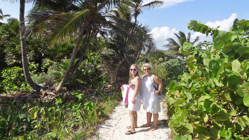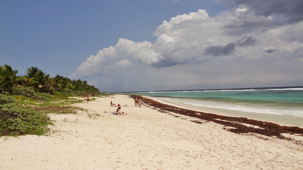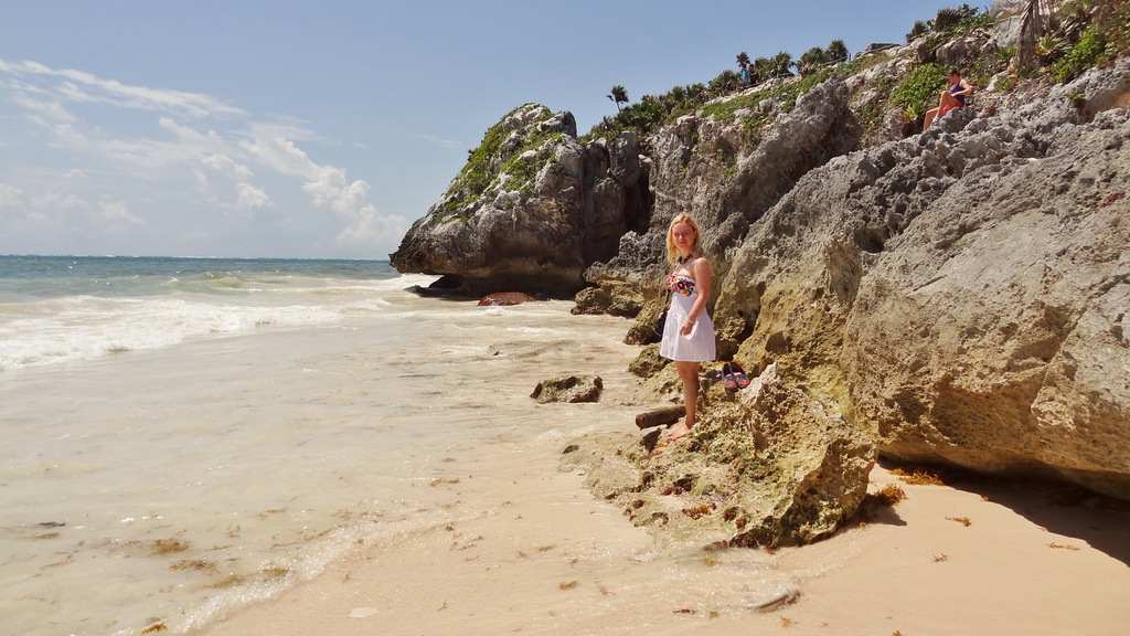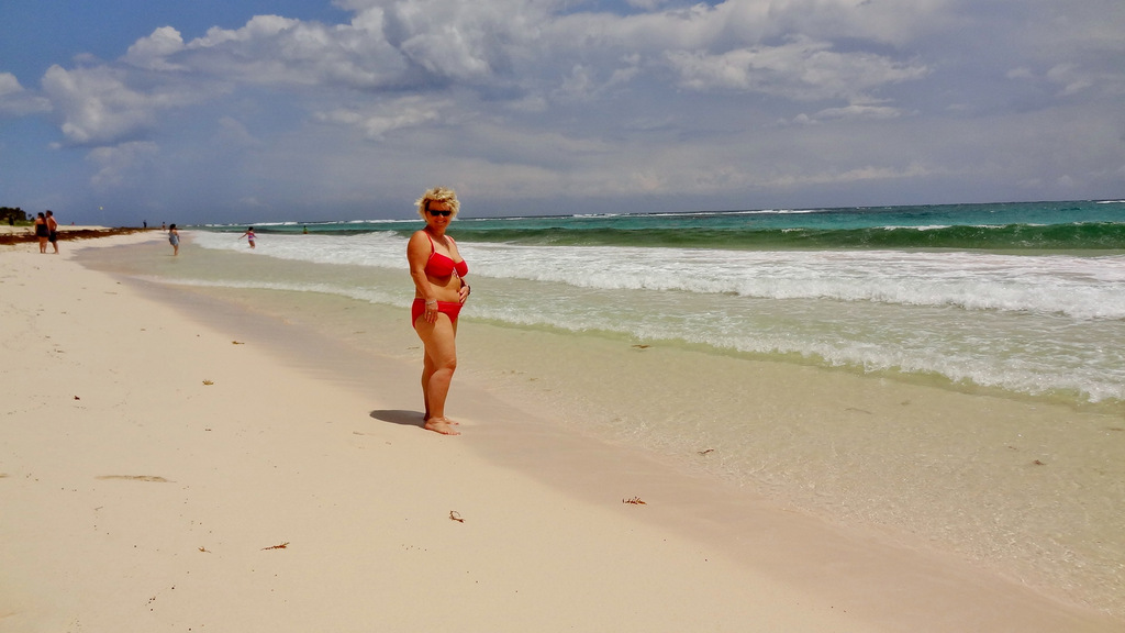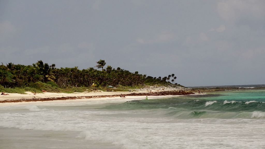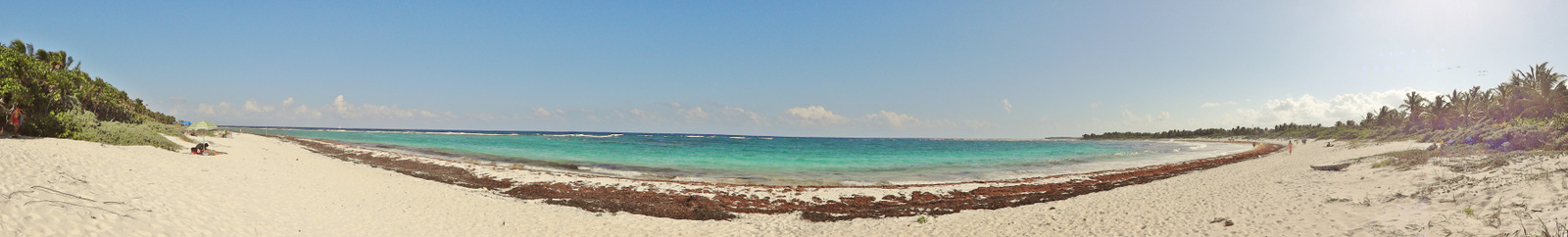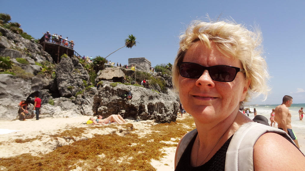| Nach einem mexikanischen Frühstück im offenen Poolbereich wollen wir heute die Pyramiden von Tulum, welche in unmittelbarer Nähe liegen, erkunden. Zum Laufen ist es trotzdem zu weit und so fahren wir mit dem Auto die paar Kilometer bis zum Parkplatz. Von hier führt ein Fußweg bis zum Eingang in der große Areal. Nachdem am Morgen noch ein paar Wolken zu sehen waren, haben sich diese jetzt fast völlig verzogen und wir starten unsere Tour bei heißem Sonnenwetter. Auch wenn hier viele Besucher unterwegs sind so verteilen sich diese auf dem weitläufigen Gelände. Highlights sind natürlich die beiden Pyramiden direkt an der Küste. Diese liegen oberhalb von zwei Sandbuchten. Während die nördliche Bucht für Besucher gesperrt ist (...hier legen Meeresschildkröten ihre Eier ab) drängeln sich an der anderen Bucht die badelustigen Touristen. Auch wir steigen die Treppen hinunter aber nicht zum Baden sondern um ein paar Fotos zu machen. Nach dem ausgiebigen Bummel geht es dann zurück zum Auto. Wir fahren nach Norden und kurz vor Akumal biegen wir zum Strand von Xcacel ab. Nachdem wir unsere 20,- Peso p.P. Eintritt gelöhnt haben suchen wir uns am Strand ein ruhiges Plätzchen. Auch hier gibt es leider viel Seegras doch wir finden eine Stelle wo wir gut ins 27°C warme Wasser gelangen können. Wir haben zwar die Schnorchelausrüstung dabei doch leider gibt es nur wenig zu sehen. Am Nachmittag machen wir uns dann noch auf den Weg zu der im Areal befindlichen Cenote. Ganz Yucatan ist relativ karstig und so findet man an vielen Stellen diese Cenoten, eine Art Wasserlöcher, welche teilweise oberirdisch sind, in vielen Fällen aber auch große unterirdische Höhlensysteme bilden. Diese Cenote ist eher klein aber hat glockenklares, erfrischendes Süßwasser. Darin schwimmen viele kleine bunte Fische. Nach dem Erlebnis Cenote und der Abkühlung fahren wir dann zurück nach Tulum, wo wir im Restaurant des San Diego de la Selva gut und lecker zu Abend essen - es gibt ja schließlich was zu feiern ;-) | |