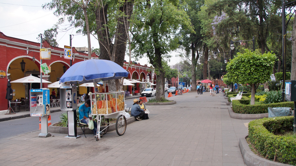 | Heute starten wir etwas ruhiger in den Tag. Nachdem Jenny am Morgen in Richtung TEC zu ihrem Unterricht startet übernehmen wir derweil einen kurzen Hausputz, muss ja auch sein. Nachdem Rafa das Auto wieder besorgt hat, starten wir im späten Mittag um Jenny abzuholen. Dann fahren wir, wieder durch den scheinbar endlosen Stau, in Richtung Coyoacan. Nach 90 Minuten haben wir dann die ca. 10 Kilometer auch hinter uns gebracht und starten zu unserem Bummel durch einen der schönsten Stadtteile der Stadt - Coyoacan. Zuerst bummeln wir über einen typisch mexikanischen Markt und anschließend durch die engen Gassen. Dieser Teil der Stadt hat sich an vielen Stellen noch seinen kolonialen Charme erhalten. Nach unserem Bummel geht es dann noch zum Sushi-Essen. Dann geht es wieder zurück durch den abendlichen Stau nach Xochimilco zu Jennys Haus. | |
