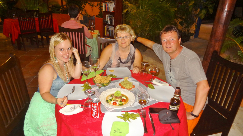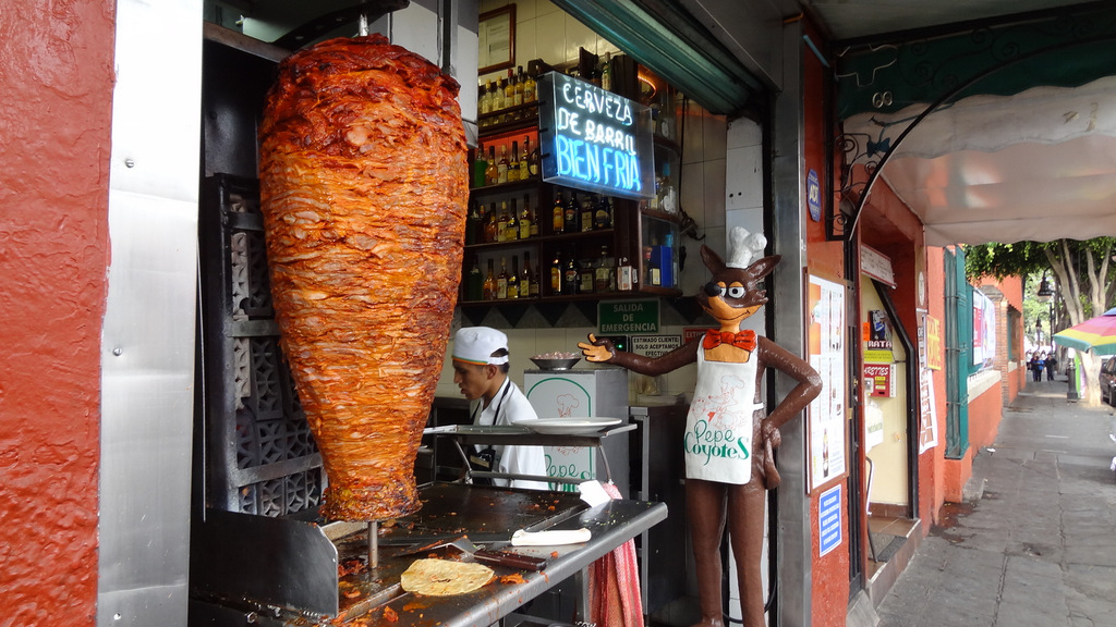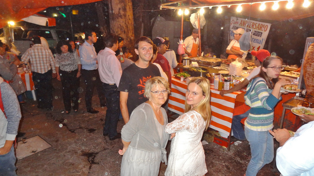 | Heute ist schon der letzte Tag unseres kurzen Karibikausfluges. Am Morgen packen wir schnell unsere Rucksäcke und genießen die letzten Minuten am Pool des San Diego de la Selva. Dann geht es schon zurück nach Cancun. Dort geben wir unseren Mietwagen ab und checken für den Rückflug ein. Nachdem wir unsere Wartezeit absolviert haben starten wir pünktlich zurück in die Hauptstadt, wo wir gegen 20:00 Uhr eintreffen. Dort werden wir wieder von Rafas Papa abgeholt. Bevor wir zurück zu Jenny fahren, machen wir am Tacostand von "Los Güeros" noch einen Zwischenstopp und lassen uns die wie immer sehr leckeren Tacos al Pastor schmecken. | |