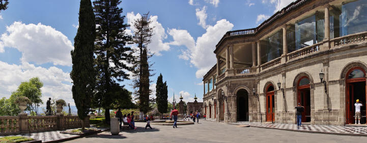 | Auch heute grüßt beim Wetter mal wieder das Murmeltier. Genau wie gestern und die letzten Tage ist es am Morgen wunderbar sonnig, während sich im Tagesverlauf die Wolken zur Gewitterstimmung zusammenziehen. Im Zentrum der Stadt haben wir Glück und alles bleibt trocken, in Xochimilco hingegen geht am Nachmittag ein kräftiger Schauer hernieder. Nach dem Frühstück zieht es uns auch heute wieder ins Stadtzentrum. Auf dem gleichen Weg wie gestern starten wir gegen 09:15 Uhr in Tepepan und fahren mit Microbus und Metro bis Pino Suarez, wo wir in die Linie 1 in Richtung Chapultepec umsteigen. Dort kommen wir gegen 11:00 Uhr an und schlendern durch den Bosque Chapultepec, einen innerstädtischen Park, indem der Zoo und das gleichnamige Schloss liegen. Hier löhnen wir unseren Eintritt von 64,- Pesos und besichtigen das Schloss vom habsburgischen Kaiser von Mexico Maximiliano. Neben dem tollen Bauwerk mit vielen historischen Exponaten hat man vom Hügel, auf dem das Schloss steht, auch einen tollen Blick über die Stadt. Der Blick fällt markant auf den schnurgeraden Paseo de la Reforma, Maximilians Prachtallee, welche sich direkt bis zum Zocalo fortsetzt. Nach einem ausführlichen Rundgang geht unser Weg hinunter zum Paseo de la Reforma bis hin zum zum Unabhängigkeitsengel - dem Angel de Independencia. Kurz dahinter biegen wir in die Zona Rosa ein. Hier in der Calle Amberes liegt unser Hotel, wo wir bei unserem letzten Aufenthalt gewohnt haben. Nach einem Bummel durch dieses Viertel fahren wir dann mit der Metro von Insurgentes wieder zurück nach Xochimilco. Heute sind wir etwas früher unterwegs und es geht etwas flüssiger. So kommen wir gegen 17:00 Uhr an und können so in der Abendsonne noch die Kolibris unmittelbar an der Eingangstür beobachten. Leider fängt es dann wieder an zu regnen und wir hoffen, dass Jenny noch halbwegs trocken heimkommt. Am Abend geht es dann noch an einen kleinen Straßenverkauf, wo wir sehr leckere Quesadillas essen. Das sind größere Maistortillas, welche individuell gefüllt werden können. Wir wählen verschiedene Zutaten, so u.a. Rindfleisch, Queso Oaxaca und natürlich Cilandro (Koriander). Dazu noch eine scharfe Habanero-Sosse - lecker. | |