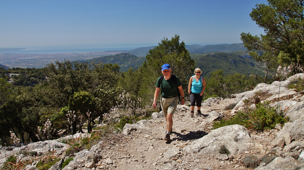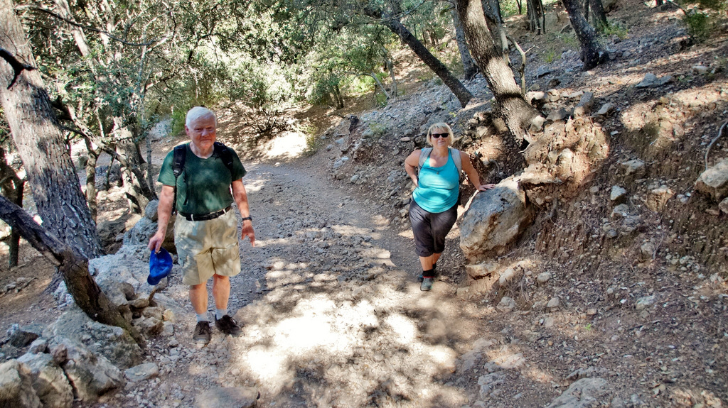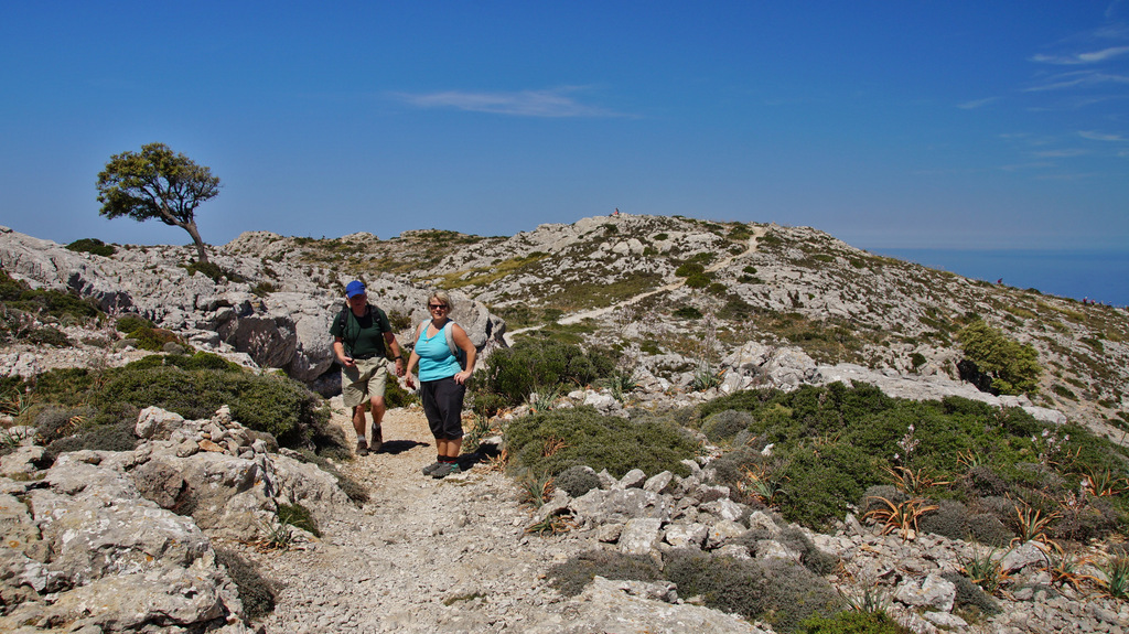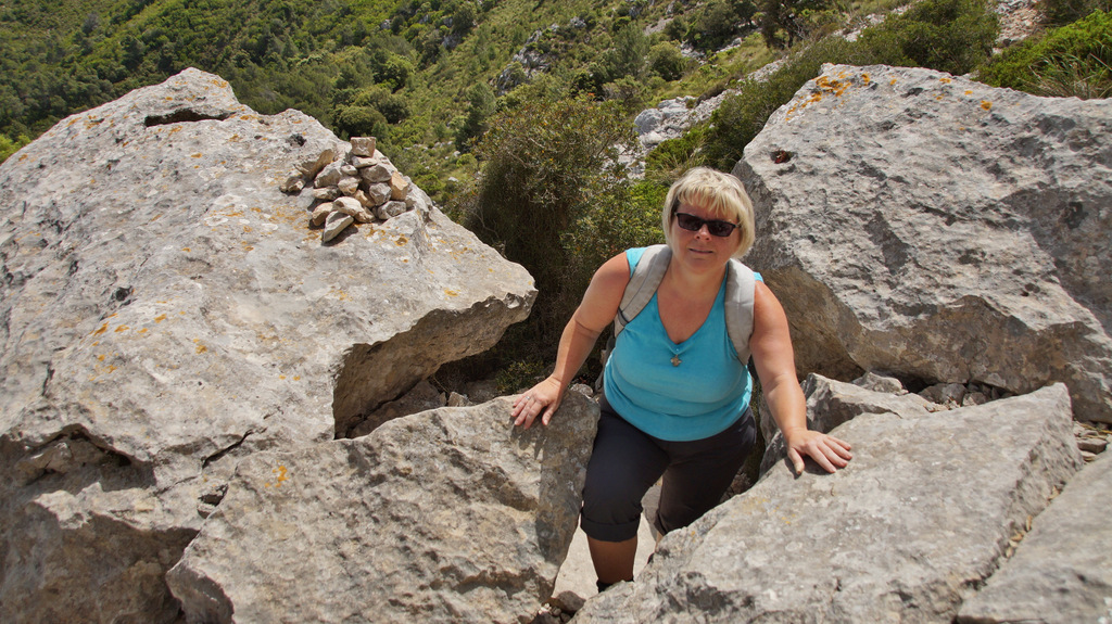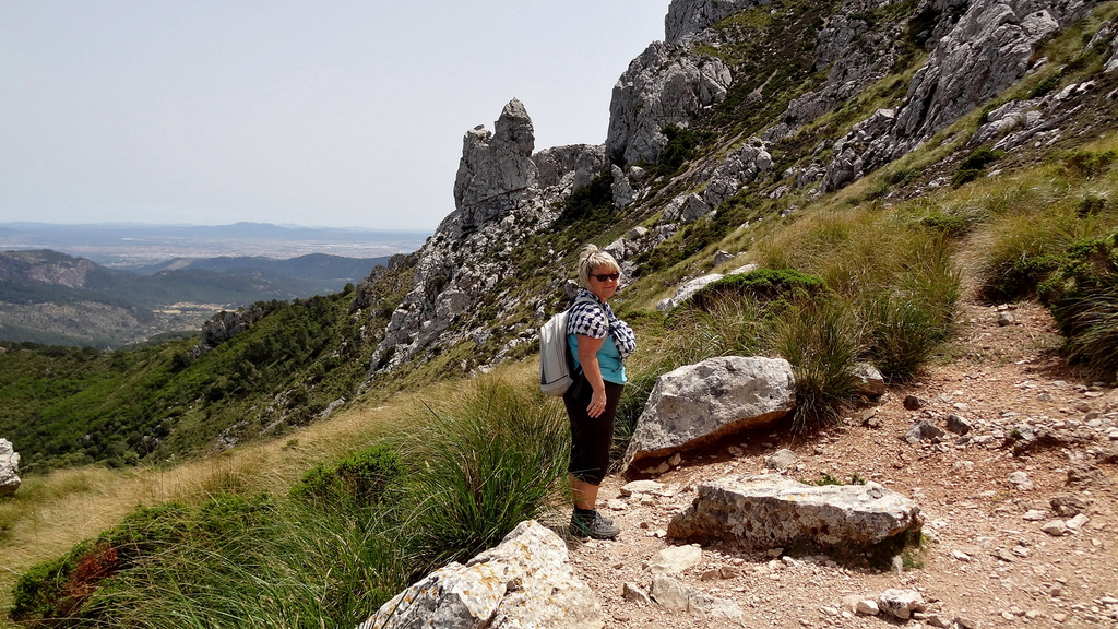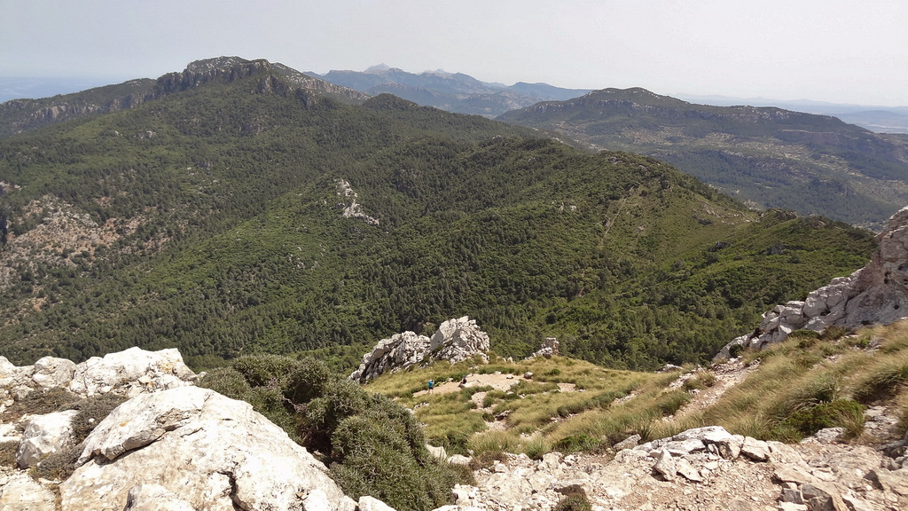 | Auch heute steht wieder ein sehr heißer Tag an. So setze ich unsere Eltern nach dem Frühstück an der Cala Mondrago ab, wo sie einen tollen Badetag verbringen. Wir starten wieder in die Berge, wo wir auch heute Wandern wollen. Hinter Puigpunyent biegen wir in eine enge Straße ab, welche uns zum Fuß des Galatzó, dem markantesten und höchsten Gipfel im Inselsüden, bringt. Nachdem wir die richtige Piste gefunden haben parken wir an einer alten Quelle und starten von hier den Aufstieg. Der erste Teil führt durch Steineichenwald. Etwas später lichtet sich der Wald und wir steigen über Geröllfelder weiter nach oben. Nach einer etwas ebenen Passage geht dann der Weg sehr steil nach oben. Das letzte Stück des Aufstieges wird noch steiler und wir müssen öfters die Hände zu Hilfe nehmen. Nach einer finalen Kletterpartie stehen wir dann auf dem Gipfel des Galatzo (1.026m). Von hier haben wir ein tolles Panorama bis Palma. Am Horizont machen wir Cabrera aus und im Süden sehen wir Port Andratx liegen. Wenn wir den Blick nach Norden lenken, liegt die Sierra de Tramuntana vor uns und wir mach den markanten Gipfel des Puig Mayor aus. Auf gleichem Weg geht es zurück zum Ausgangspunkt. Dann holen wir die Eltern wieder von der Cala Mondrago ab und genießen die goldgelbe Abendsonne am Pool unserer Finca. | |||||