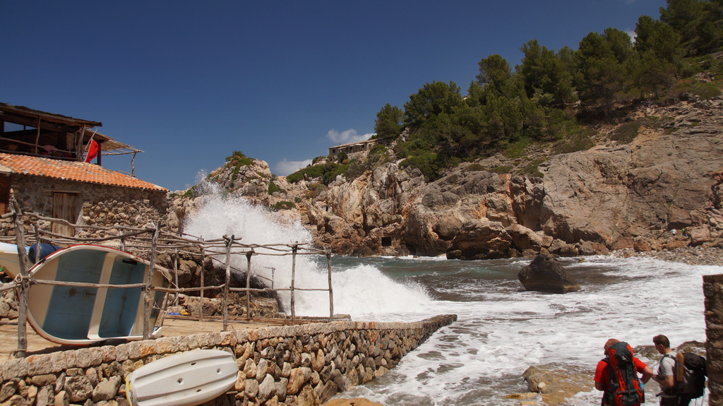 | Nachdem der gestrige Tag extrem heiß war, ist es in der zweiten Nachthälfte deutlich frischer geworden. Was allerdings bedeutet, dass es von den 26°C, welche wir gegen 23:00 Uhr noch auf der Terrasse hatten auf eine Morgentemperatur von 19 °C abgekühlt ist. So zeigen sich am Morgen auch ein paar Wolken am Himmel, was uns aber überhaupt nicht von unserem Außenfrühstück abhalten kann. Gegen 09:15 Uhr brechen wir auf und fahren via C'as Concos und Felanitx nach Manacor, wo wir bei Majorica einen ersten kurzen Zwischenstopp einlegen. Dann fahren wir weiter über Sineu und Inca nach Caimari. Hier beginnt die Serpentinenstraße durch die Tramuntana, welche wir uns heute mit ein paar Bussen, vielen Mietwagen und noch mehr, teilweise militanten, Radfahrern teilen. Wir schrauben uns die Serpentinen hinauf und treffen oben auf die Tramuntanastraße. Das Kloster Lluc lassen wir dieses Mal links liegen (...hier haben wir schon öfters Station gemacht) und fahren über Escorca und dem Abzweig zur Sa Calobra weiter durch die Bergwelt. Vorbei an den beiden Stauseen Gorg Blau und Cuber führt uns die Straße wieder etwas abwärts hinunter in Tal von Sóller. Hier biegen wir direkt hinunter nach Port de Sóller ab. Hier machen wir eine erste Pause und nutzen die Zeit für einen Bummel entlang der Strandpromenade. Hier finden wir auch das Ladengeschäft von Fet a Sóller, unser "Mallorcaversender" aus dem Internet. Inzwischen zeigt sich die Sonne wieder von ihrer besten Seite und wir schlendern bei schönen Sonnenschein am Yachthafen entlang. Die alte Straßenbahn tuckert ebenfalls hier entlang und bringt täglich unzählige Touristen zurück nach Sóller. Auch wenn die Lage des Ortes wirklich toll ist, so haben wir allerdings das Problem, dass Port de Sóller ziemlich touristisch ist, wie leider viel zu viele Stellen auf der Insel ebenso. So brechen wir wieder auf und fahren weiter auf der Tramuntanastraße entlang. Wir passieren Lluc Alcari und biegen kurz bevor wir Deja erreichen hinunter zur Cala Deja ab. Hier an der Westküste ist das Meer deutlich rauer und es treffen teilweise mächtige Wellen auf die felsige Küste. Hier unten an der Cala Deja befinden sich zwei Strandrestaurants, welche beide gut frequentiert sind. Allerdings muss man bei der Tischauswahl heute ein offenes Auge auf die Wellen haben, da bei großen Exemplaren das Wasser bis auf die Restaurantterrasse spritzt. So fahren wir die Serpentinenstraße wieder hinauf und passieren den wieder völlig verstopften Ort Deja. Zu dieser Saisonzeit ist es schon mit viel Glück verbunden, einen Parkplatz zu erwischen. Da wir ja mit zwei Autos unterwegs sind, ist das noch deutlich schwieriger. Nachdem wir den Abzweig nach Valldemossa erreicht haben, biegt kurz danach eine enge Serpentinenstraße hinunter zum Port de Valldemossa ab. In vielen Kurven und auf sehr enger Straße geht die Fahrt nach unten. Diese Abfahrt ist nichts für schwache Nerven und einige überängstliche Mietwagenpiloten sollten besser nicht hier hinunter fahren. Unten angekommen erwischen wir die letzten beiden Parkplätze direkt am kleinen Hafen. Da heute ziemlich unruhige See ist, werden unsere Mietwagen mehrmals von großen Wellen geflutet. So sehen sie aus wie ein Salzkristall. In einem kleinen Strandlokal machen wir eine kurze Pause. Neben dem obligatorischen Cafe con Leche lassen wir uns eine Portion Chipirones (...auf La Gomera nennt man diese Chopitos, Minitintenfische) schmecken. Auf dem gleichen Weg geht es wieder nach oben. Über Valldemossa fahren wir weiter über die Via Cintura nach Campos und weiter zurück in unsere Finca Es Moli de Son Vidal. Nach einem erfrischenden Bad im Pool geht dann (leider) letztmalig der Grill in Aktion. | |||||