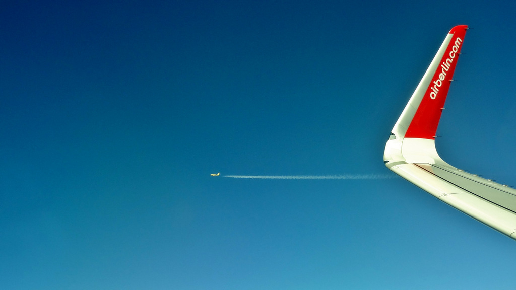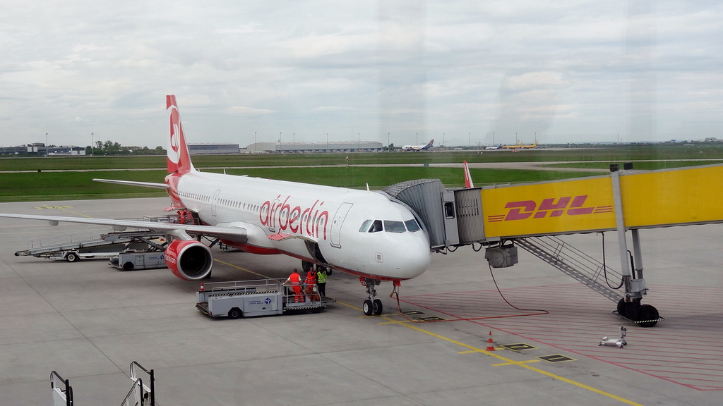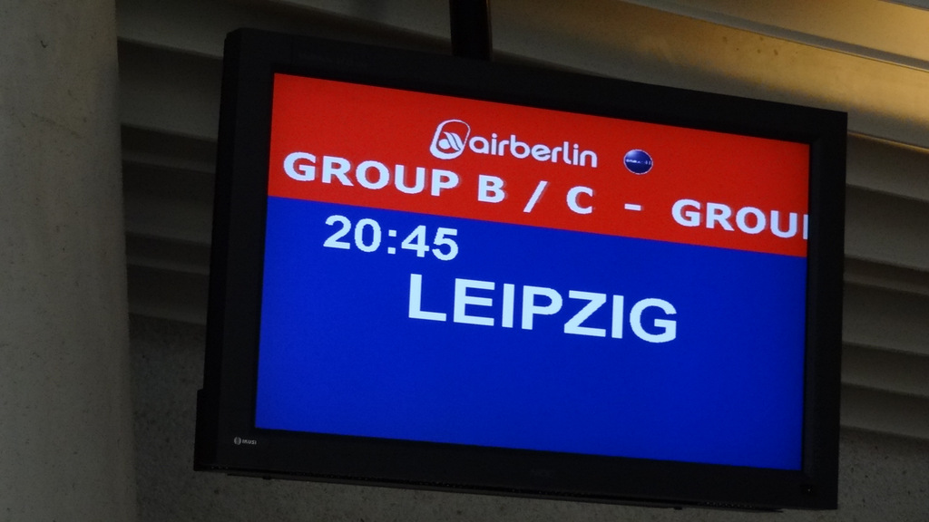 geben wir noch unsere Koffer auf und warten, dass uns die Air Berlin wieder