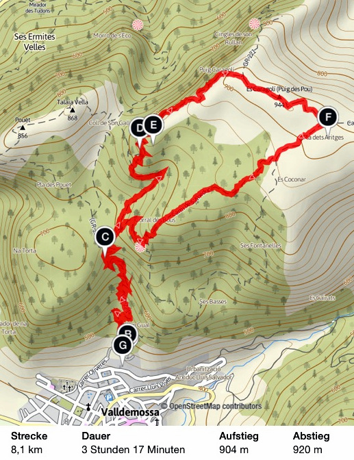 | Wanderung in der Sierra de Tramuntana - von Valldemossa auf dem Reitweg des Erzherzogs Ludwig Salvator auf dem Camí de s'Arxiduc zum Caragolí | |||||