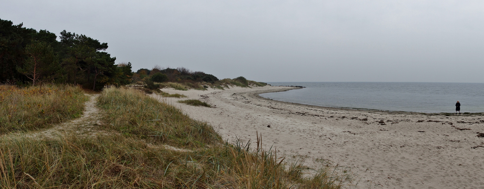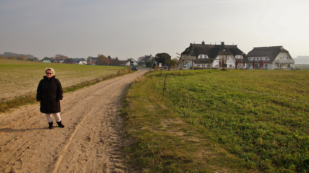 | Gegen 07:00 Uhr starten wir von zu Hause. Via Berlin geht es nach Norden und ohne Stau passieren wir noch vor 12:00 Uhr die große Rügenbrücke. Traditionsgemäß gibt es in der ersten Ortschaft nach der Brücke, in Rambin, immer das erste Fischbrötchen. Bevor wir in Richtung Mönchgut fahren, machen wir noch einen Abstecher nach Binz. Hier bummeln wir entlang der Promenade. Nach diesem Kurzaufenthalt fahren wir weiter und erreichen nach weiteren 25 Minuten Fahrt unser Quartier, direkt am Port Gager. Nach wie immer sehr herzlichem Empfang checken wir schnell ein und machen uns dann wieder auf den Weg. Nachdem die letzten Tage immer herrliches Sonnenwetter gewesen ist, hat sich die Sonne heute hinter vielen Wolken versteckt, so dass alles sehr grau und trüb wirkt. Dafür ist es windstill, was man hier auch nicht jeden Tag hat. Nur wenige Minuten weiter liegt Thiessow. Von hier starten wir zu einer recht kurzen Runde um den sogenannten Thiessower Haken. Nachdem es hier selbst in der Hochsaison meist vergleichsweise moderat zugeht, ist es zur Zeit idyllisch ruhig. So schlendern wir in aller Ruhe durch ein kleines Kiefernwäldchen und dann entlang der Küste. Bevor wir nach Gager zurückkehren biegen wir noch kurz in den Nachbarort Groß-Zicker ab. Am Fuße einer Hügellandschaft, den "Zickerschen Alpen" liegt der kleine Ort am Bodden und auch hier wirkt alles ruhig und gemächlich. Zurück in Gager, welches auf der anderen Seite des Hügels liegt, laufen wir zum kleinen Boddenhafen und haben Glück, dass gerade ein Fischerboot anlandet. Dieses bringt kistenweise Schollen und leckeren Ostseezander mit herein. Dann wechseln wir in die "Alte Bootswerft", ein Restaurant unmittelbar am Hafen. Da uns der Zander so inspiriert hat, findet sich dieser auch auf unseren Teller wieder und schmeckt hervorragend. Zurück im Quartier heizen wir den Kamin ein und lassen den Tag in der Sauna ausklingen. | |