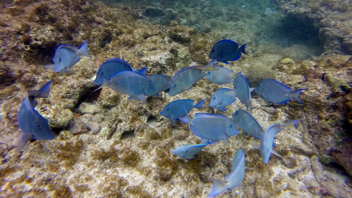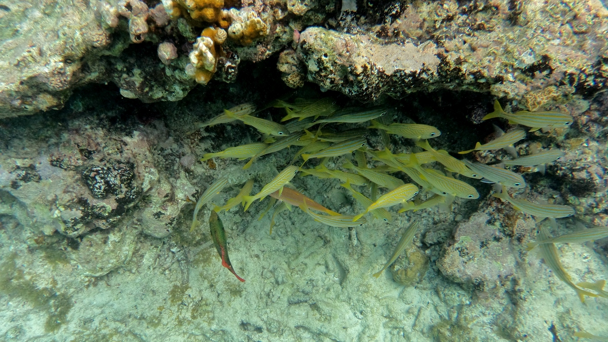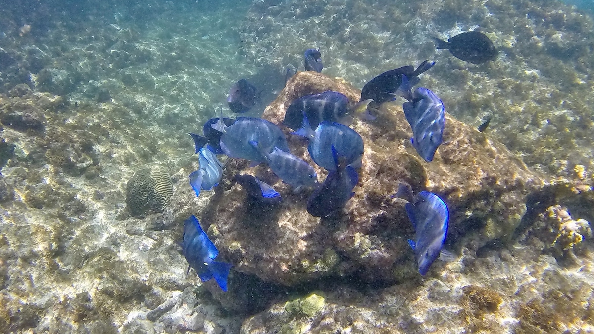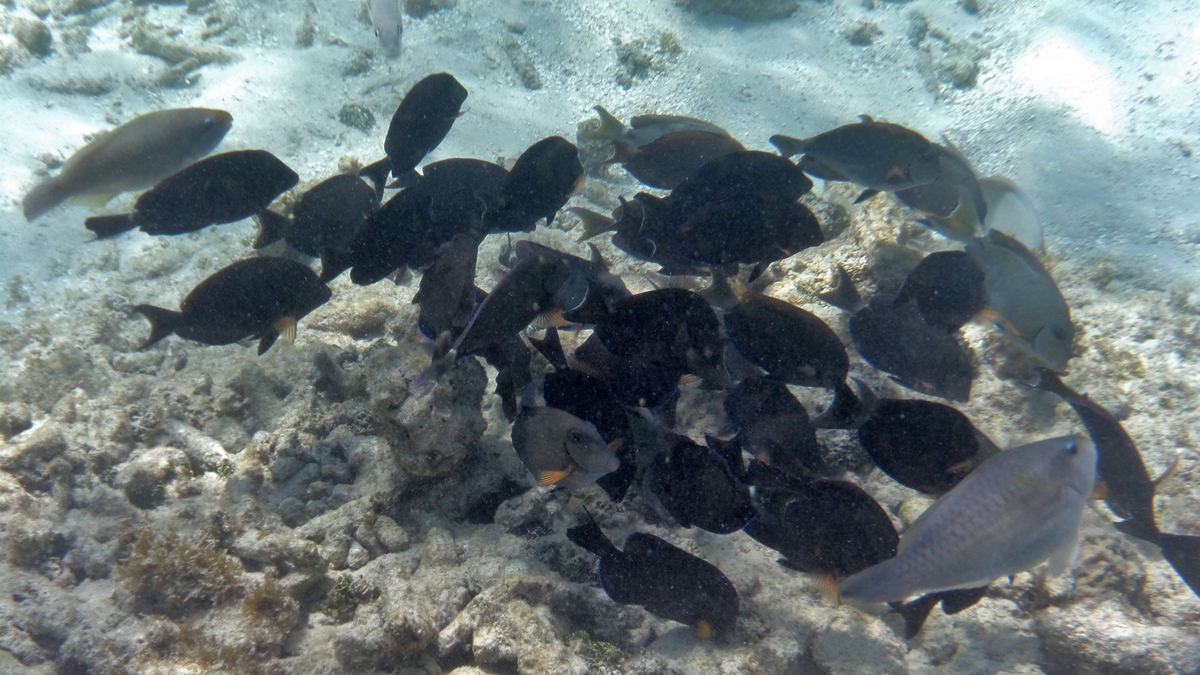| Den Tag beginnen wir mit einer Runde im Pool. Nach dem Terrassenfrühstück fahren wir die wenigen Kilometer an die Westküste und machen an der Playa Jeremi einen ersten kurzen Stopp, um die Bucht in Augenschein zu nehmen. Wie an fast allem Buchten feiern auch hier die Einheimischen das lange Osterwochenende und dem entsprechend voll ist es hier. So fahren wir weiter nach Norden und machen an der Playa Forti den nächsten Stopp. Von hier hat man einen tollen Panoramablick auf die noch weiter nördlich gelegenen Strände. Nach ein paar Fotos fahren wir dann an den nördlichsten Strand - die Playa Kalki, wo wir einen der raren Parkplätze ergattern. Am Ende der kleinen Bucht finden wir einen ruhigen Platz. Hier bietet sich eine gute Gelegenheit zum Schnorcheln und so bleiben wir hier einige Zeit. Am Ufer ist es durch den Sand noch relativ trüb aber nach ein paar Dutzend Metern wird das Wasser klar und an ein paar Korallenfelsen im Wasser tummeln sich viele bunte Fische. Wie schon gestern an der Playa Lagun finden wir hier auch viele große Papageienfische. Gegen Mittag brechen wir dann auf und fahren die wenigen Meter hinüber zur Playa Grandi, was eher ein Fischerstrand als ein Badestrand ist. Leider haben wir hier nicht das Glück, dass gerade Fischer anlanden. Dann kann man hier Schildkröten beobachten, die genau wissen, dass die Fischer ihnen immer etwas übriglassen. Als nächstes Ziel steht die Playa Jeremi auf dem Plan, wo wir heute Morgen bereits die Lage recherchiert haben. Auch hier nehmen einige Großfamilien mit Zelt und Grill den Strand in beschlag, was uns aber nicht vom Schnorcheln abhält. Hier haben wir Glück und sehen das erste Mal mehrere Sepia, welche in relativer Strandnähe unterwegs sind. Bevor wir zurück ins Don Genaro fahren machen wir noch einen letzten Zwischenstopp an der Playa Lagun. Auch hier herrscht Osterbetrieb. Nachdem wir gestern hier sehr gute Schnorchelbedingungen vorgefunden haben, wollen wir hier nochmals eine Runde drehen. Neben den "Klassikern" entdecken wir hier eine Muräne, welche sich aber schnell wieder in einer kleinen Höhle versteckt. Zurück im Don Genaro verbringen wir den Rest vom Nachmittag am Pool, da es hier Schatten gibt, welchen wir an den Stränden kaum finden und wir in Sachen Sonnenbrand vorsichtig sind. Am Abend grillen wir dann wieder in lassen den schönen Tag bei einem Glas Wein auf unserer Terrasse ausklingen. | |