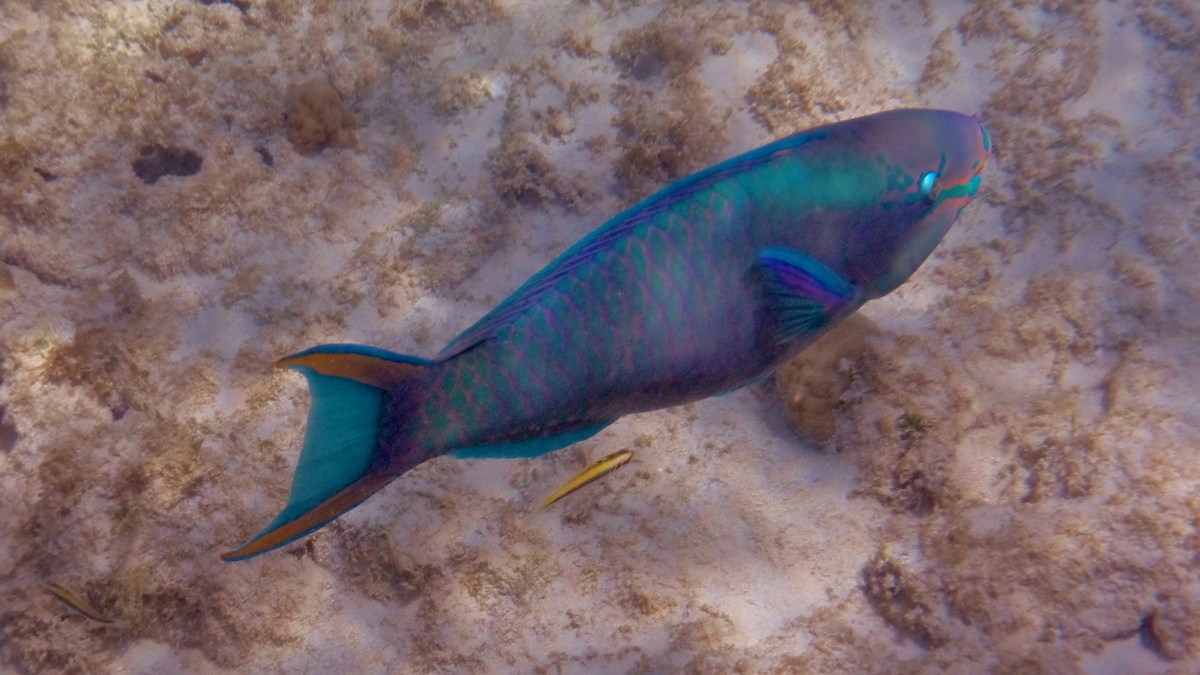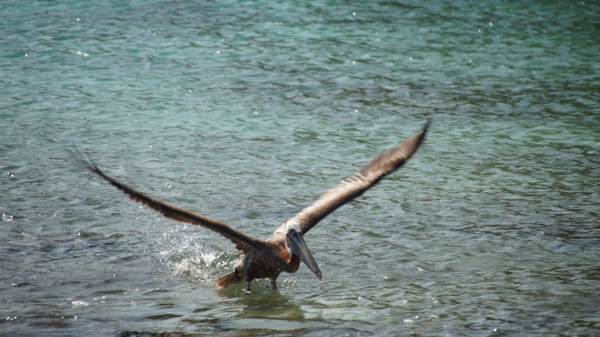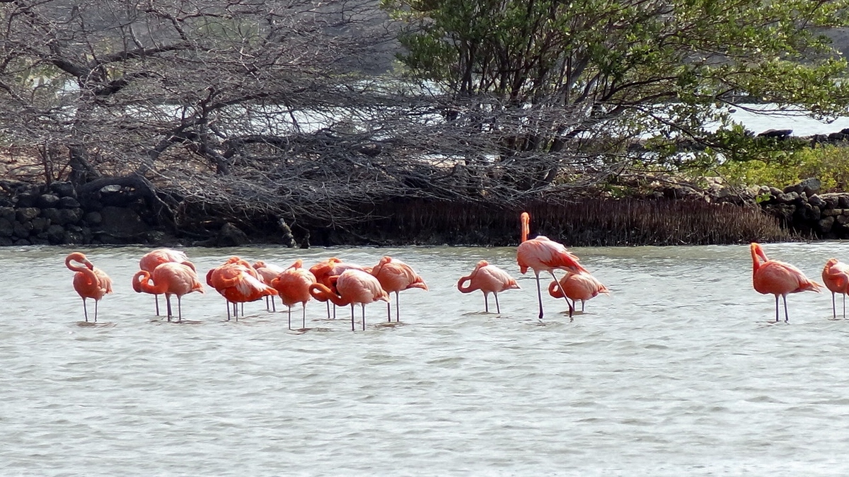 | Auch heute steht wieder Schnorcheln auf dem Programm. Uns begeistert die reiche Unterwasserwelt von Curaçao immer wieder und so fahren wir heute an den Playa Porto Marie. Auch dieser Strand ist wie einige andere bewirtschaftet. Der Eintritt kostet hier moderate 5,- Nafl. Wir suchen uns eine ruhige Ecke am nördlichen Ende des Strandes. Im türkisblauen Wasser wurden hier auf dem sandigen Untergrund viele "Betonglocken" versenkt, welche inzwischen mit Korallen bewachsen sind und als idealer Sammelpunkt für viele bunte Rifffische dienen. Da wir sehr zeitig da sind und fast die ersten Gäste sind habe ich das Glück, gleich beim ersten Schnorchelgang eine Karettschildkröte zu sehen. Porto Marie ist der bisher beste Strand, welchen wir hier auf Curaçao gefunden haben. Trotz der Strandliegen, welche man hier findet, ist der Strand eher ruhig und keine Partyzone und bietet über und vor allem unter Wasser wirklich sehr viel. Sowohl im flachen Wasser in Ufernähe als auch weiter draußen an kleine Koralleninseln tummeln sich viele Fische - einfach "großes Kino". Da wir einfach pausenlos am Schnorcheln sind haben wir trotz intensiver Sonnencremenutzung und unserer speziellen UV-Schutz-Shirts genügend Sonne bekommen. Im späten Nachmittag brechen wir dann wieder auf, doch bevor wir zum Don Genaro zurück fahren, machen wir noch einen kurzen Abstecher zum benachbarten Daaibooi-Beach. Auch hier erwartet uns eine tolle Szenerie mit türkisblauen Wasser. Am Rande der Bucht ist gerade ein Pelikan auf Fischfang, was man auch nicht aller Tage sieht. Nach diesem kurzen Abstecher fahren wir dann via Soto wieder zurück ins Don Genaro. | |