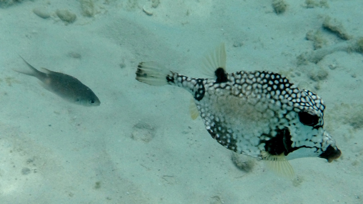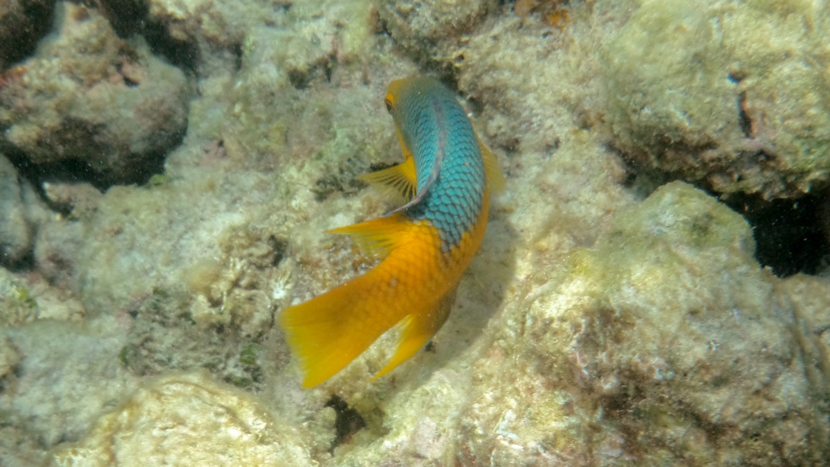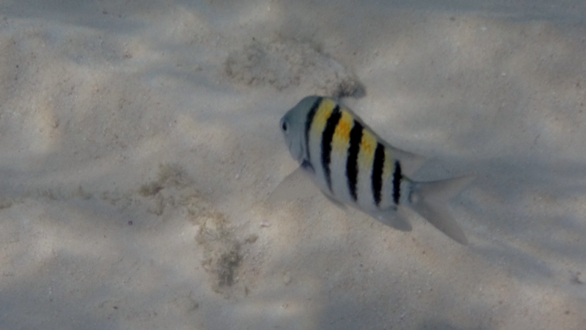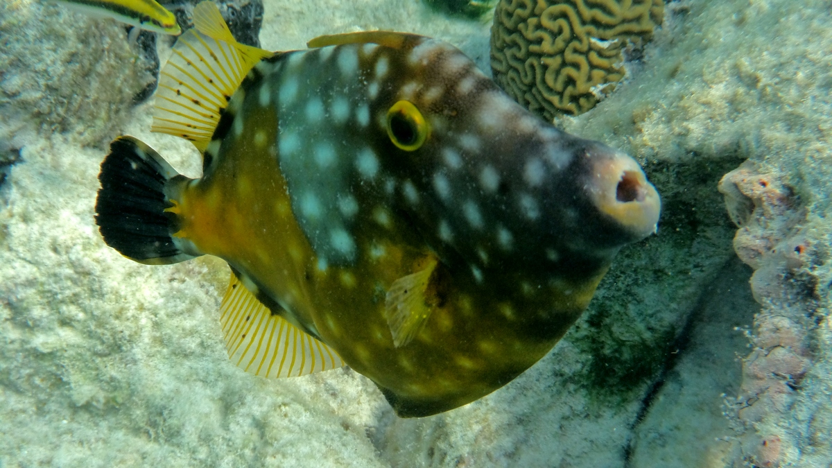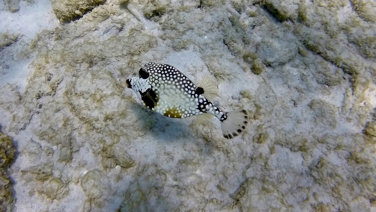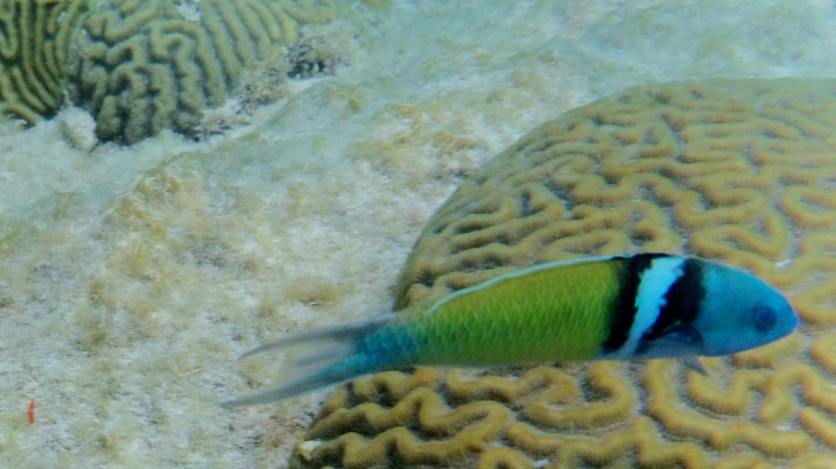 | Heute ist nun der letzten volle Urlaubstag auf Curaçao. Da uns die Unterwasserwelt hier fasziniert wollen wir den heutigen Tag natürlich noch mal zum Schnorcheln nutzen. So starten wir gegen 09:00 Uhr im Don Genaro und fahren in Richtung Strände. Bevor wir wieder zum Playa Porto Marie fahren, machen wir noch zwei kleine Abstecher. Hinter Sint Willibrordus biegen wir in die edle Wohnanlage Coral Estate ab. Am Eingang werden von der Security unsere Daten gecheckt und dann können wir bis hinunter zum Strand gelangen. Hier befindet sich der Strand und das Restaurant "Karakter", welche an exponierter Stelle liegen. Trotz der angenehmen Atmosphäre dieses Ortes fahren wir weiter zur Nachbarbucht Daaibooi-Beach. Hier nutzen wir die Gelegenheit um auch hier die Unterwasserwelt zu erkunden. Während es in Ufernähe recht trüb ist wird es nach ca. 100 Metern klar und das Schnorcheln macht auch hier richtig Spaß. Da jedoch der Strand uns im Vergleich zum Porto Marie nicht so sehr anspricht und hier ohnehin gerade eine Strandhochzeit gefeiert wird, welche ein gutes Stück des Areals einnimmt, entschließen wir uns zur Weiterfahrt zur Playa Porto Marie. Hier verbringen wir dann bei besten Schnorchelbedingungen des Rest des Tages. | |