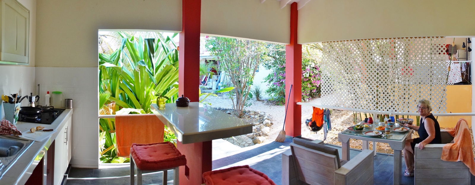 Karibik. Nach dem letzten Frühstück auf unserer Terrasse packen wir