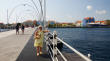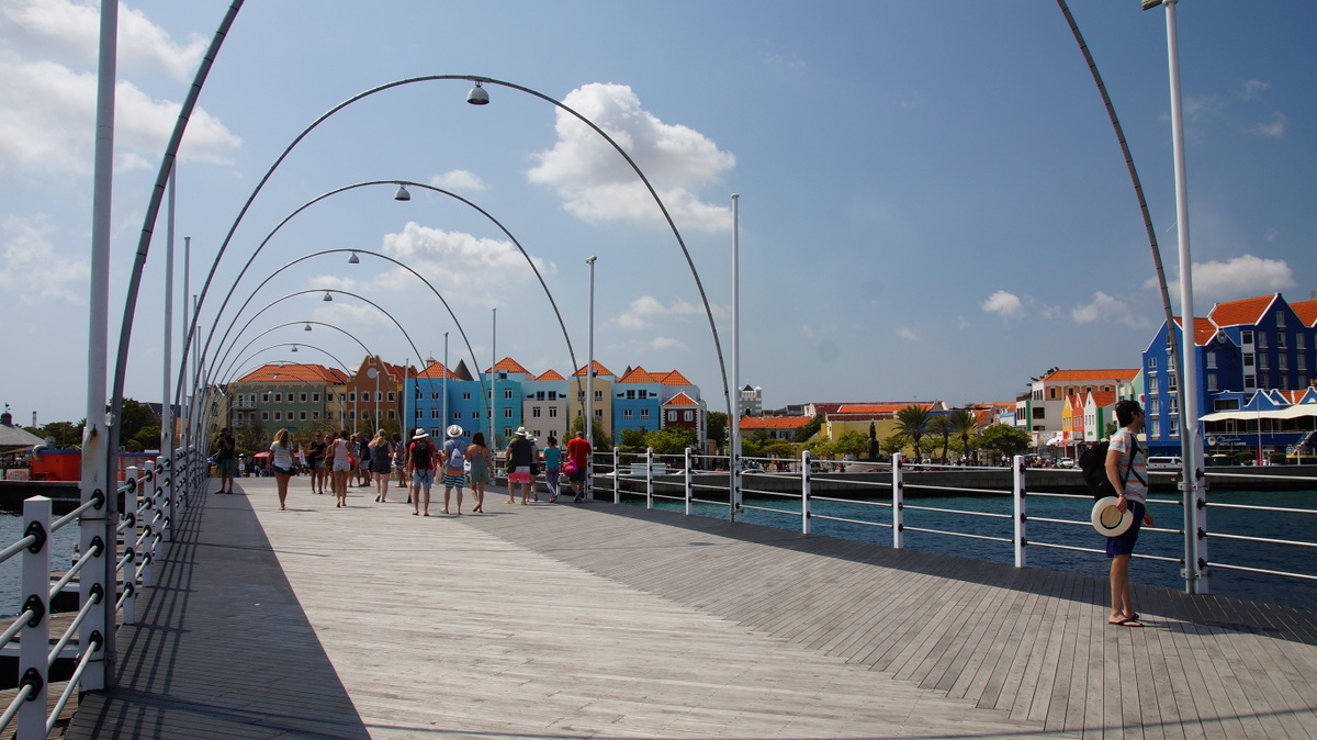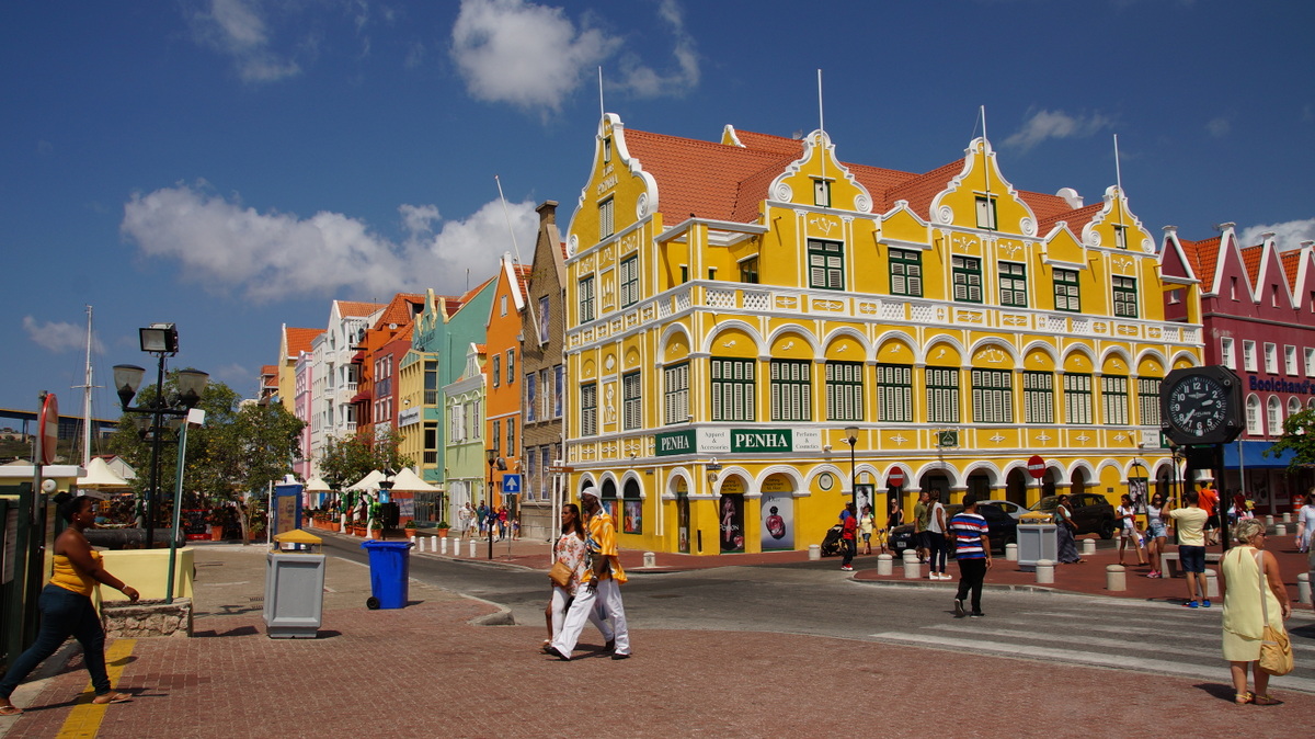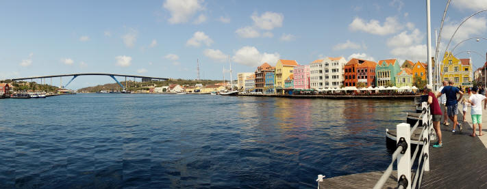 | Am Morgen springen wir gegen 06:45 Uhr in den Pool. Wirklich erfrischend ist dieser nicht aber trotzdem ist es angenehm, in der Morgenstimmung ein paar Runden zu schwimmen. Nach dem Frühstück fahren wir via Soto an die Westküste zum Cas Abou-Beach. Nachdem wir an der Schranke unsere 10,- Nafl Eintritt gelöhnt haben fahren wir noch ca. 2km bis zum Parkplatz. Direkt dahinter liegt der Cas Abou-Beach. Auch wenn es ein bewirtschafteter Strand ist, so liegt er wunderschön zwischen Felsen eingerahmt vor türkisblauen Wasser. Nachdem wir uns in der äußeren Ecke einen Platz gesucht haben, starten wir zum Schnorcheln. Auch hier gibt es viel zu sehen und immer wieder entdeckt man neben "alten Bekannten" auch andere exotische Fische. Da auch heute die Sonne intensiv vom Himmel brennt und wir keinen Sonnenbrand riskieren wollen, machen wir uns zur Mittagszeit wieder auf den Rückweg. Nach einem kurzen Stopp im Quartier fahren wir weiter in Richtung Willemstad. Auf halben Weg machen wir in Tera Cora einen Tankstopp. Hier auf Curaçao tankt man anders als in Deutschland - "pay first", also erst bezahlen und dann Tanken. Dafür ist der Benzin mit ca. 62 Cent/Liter ausgesprochen günstig. Dann erreichen wir Willemstad und parken (das war ein Tipp unserer Vermieter) im Hotel- und Museumskomplex "Kura Hulanda". Hier ist es sehr idyllisch und die Zeit scheint stehen geblieben zu sein. Dann erreichen wir die Waterfront von Otrobanda und überqueren die Königin Emma-Brücke. Gerade als wir mitten auf der Brücke sind ertönt ein Klingelsignal und innerhalb weniger Sekunden wird die Brücke geschlossen, da ein kleiner Schlepper den Hafen verlassen will. Dann dreht sich die Brücke zur Seite und nach der Passage wieder zurück. Auf der anderen Seite sind wir dann im Stadtteil Punda. Da noch Ostern ist haben viele Geschäfte in der Heerenstraat geschlossen. An den schwimmenden Märkten, wo Händler aus dem nahen Venezuela ihre Waren feilbieten, vorbei erreichen wir die Markthalle, welche leider ebenfalls geschlossen ist. So bummeln wir durch die Straßen von Punda und wieder über die Brücke zurück nach Otrobanda. Auf der Rückfahrt erstehen wir dann im Supermarkt noch frische Angussteaks und Red Snapper-Filet, so dass auch heute einem Grillabend nichts im Wege steht. | |