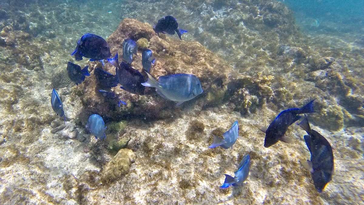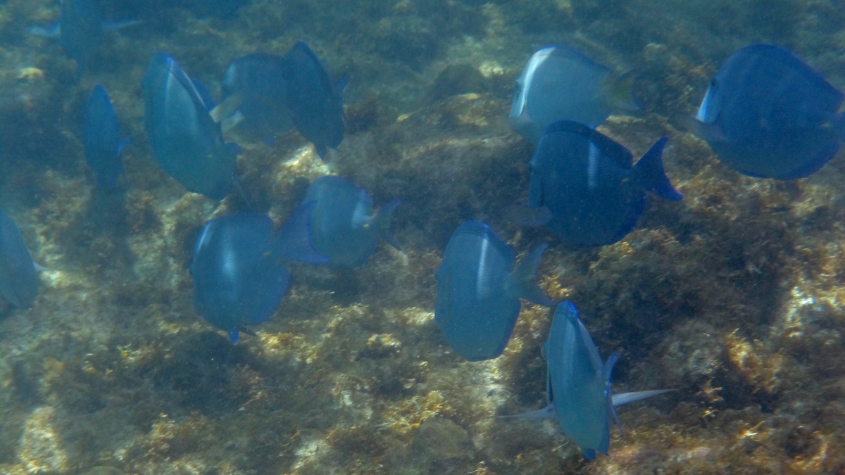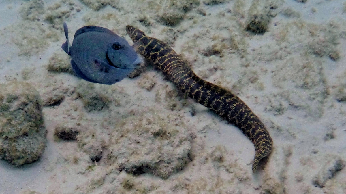 | Nachdem wir gestern nicht am Strand waren und eine "Sonnenpause" eingelegt haben, ist heute wieder Schnorcheln angesagt. Nach der obligatorischen Runde im Pool und dem anschließenden Frühstück auf unserer Außenterrasse fahren wir die wenigen Kilometer hinüber an die Küste zur Playa Porto Marie. Wie schon in den letzten Tagen verbringen wir hier einen abwechslungsreichen Tag am Strand, wo wir unter Wasser immer neue Dinge entdecken. Leider sehen wir nicht noch einmal eine Schildkröte doch dafür eine Vielzahl von Pinzettfischen, Seenadeln und auch Muränen. Im späten Nachmittag fahren wir dann weiter nach Willemstad, um noch ein paar Besorgungen im Centrum Supermarket zu erledigen. Hier erstehen wir u.a. leckeres Thunfischfilet, Angussteaks und auch leckere Pachitas (Maracujas). Zurück im Quartier werfen wir am Abend den Grill an. Am Abend gibt es dann noch einen kleinen Cocktailabend in der Palapa, wo sich die Gäste des Don Genaro und ein paar Residenten treffen. | |