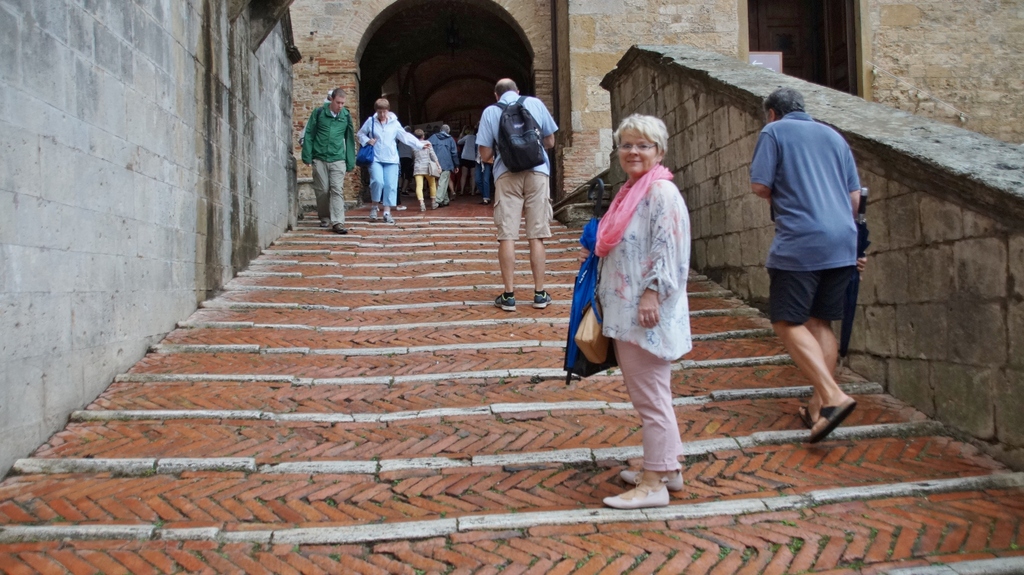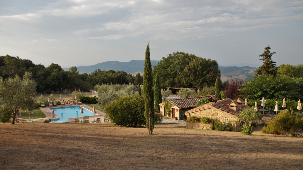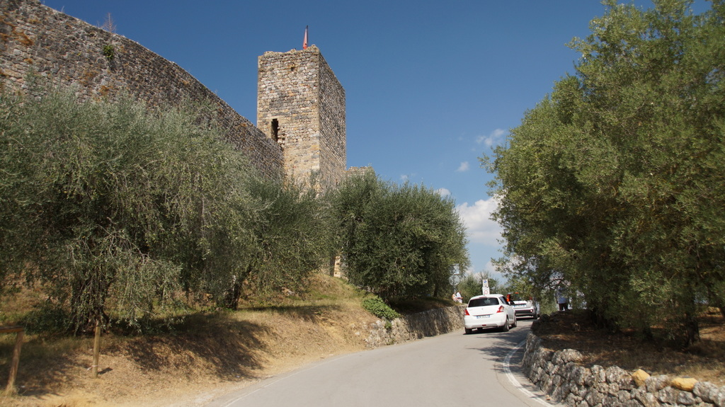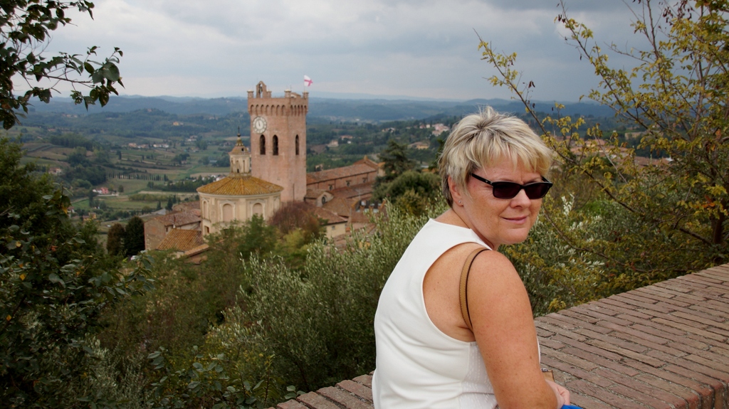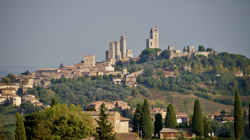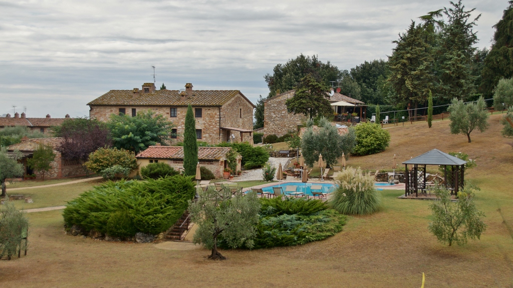 | Den Tag beginnen wir mit einem Bad im Pool. Nachdem wir einige Runden geschwommen sind gibt es Frühstück auf unserer Terrasse. Bei angenehmen Temperaturen genießen wir nicht nur die leckeren Dinge sondern auch den herrlichen Blick hinüber nach Volterra, was gerade von der aufgehenden Sonne goldgelb angestrahlt wird. Dann fahren wir vorbei an San Gimignano nach Poggibonsi, wo wir im PAM-Supermarkt noch einige Dinge einkaufen. Kurze Zeit später erreichen wir dann den etwas nördlich gelegenen Ort Barberino Val D`Elsa. Dieser für die Toskana typische Ort liegt auf einem Bergrücken und von hier oben hat man einen tollen Blick über die geniale Landschaft der Toskana. Wir bummeln durch den Ort und erleben diesen in einer ruhigen Atmosphäre, da hier kaum Touristen unterwegs sind. Nach einer ausgiebigen Runde durch den kleinen Ort fahren wir weiter über kleine Nebenstraßen hinüber nach Certaldo. An der Piazza Boccaccio parken wir den Mini und nehmen von hier die Funicolare - die Zahnradbahn - um hinauf nach Certaldo Alto zu gelangen. Für günstige 3,-EUR für das Returnticket bringt uns die Bahn hinauf in das mittelalterliche Städtchen. Die Altstadt ist bis auf Anlieger autofrei und so bummeln wir geruhsam durch die Gassen. Am Rand der burgartigen Altstadt hat man immer wieder tolle Ausblicke auf die Toskanalandschaft bis hinüber nach San Gimignano, dessen Geschlechtertürme man am Horizont deutlich erkennen kann. Nach einer kurzen Erfrischung in einer der vielen kleinen Enotecas fahren wir wieder hinunter zum Parkplatz. Via Gambassi Terme fahren wir weiter zur Villa Pillo, um dort Wein und Olivenöl zu kaufen. Leider ist sonntags geschlossen und so fahren wir weiter nach Montaione. Hier entschließen wir uns dann, direkt zurück in die Casa Vaiano zu fahren und hier verbringen wir den Rest des Nachmittages am Pool, was nach dem Stress der letzten Tage uns sehr gut tut. | ||
