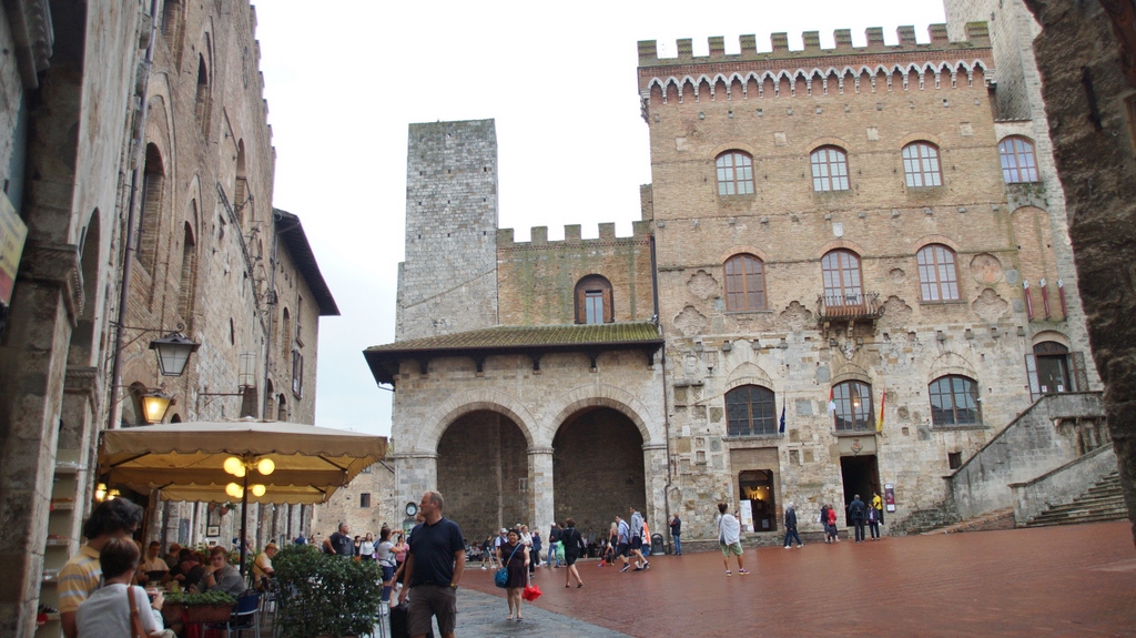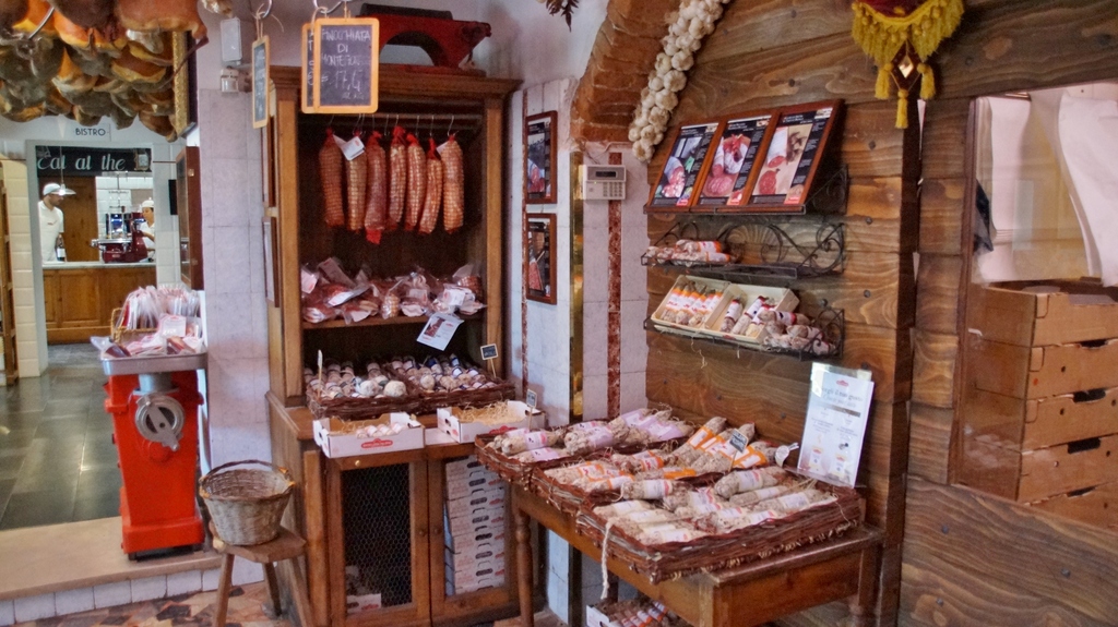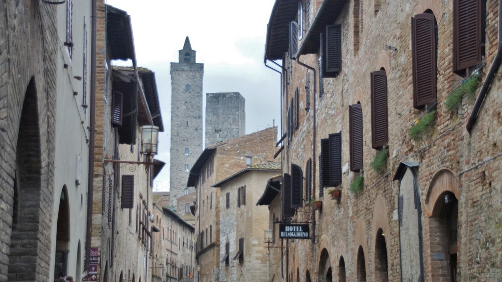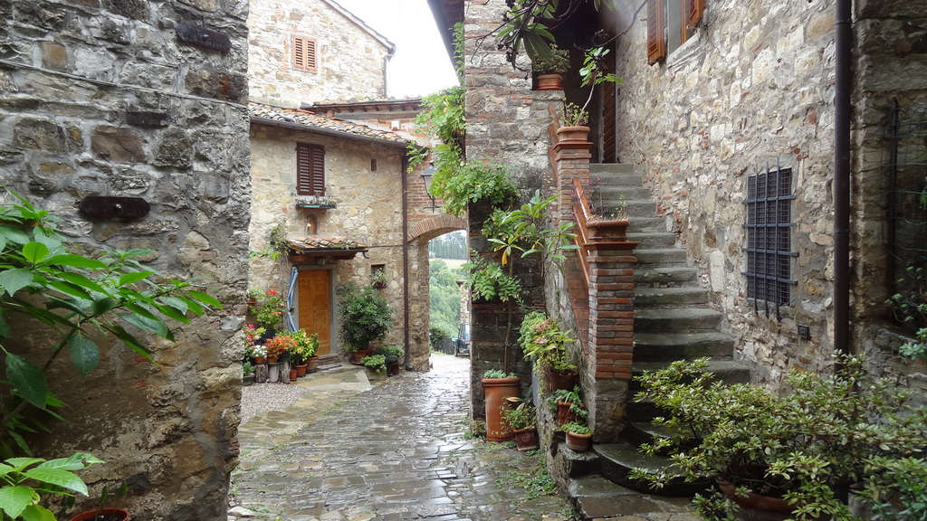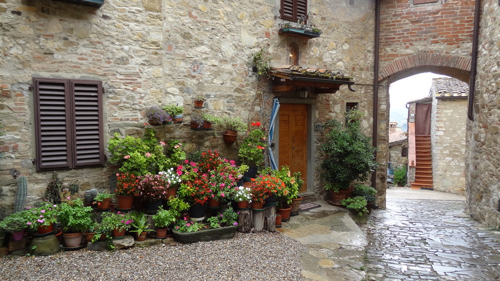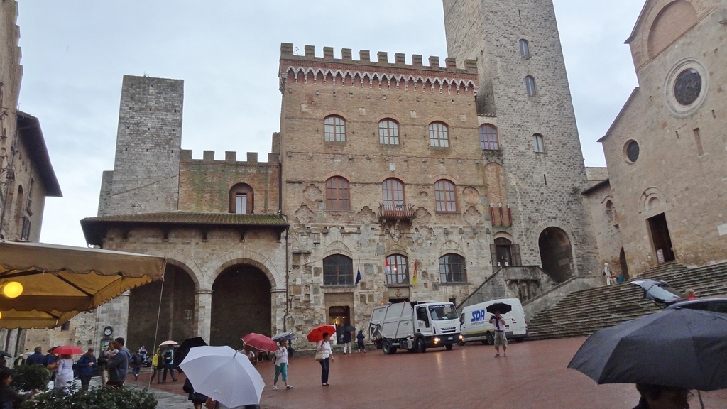 | Schon heute Morgen werden wir vom Regen geweckt. Somit fällt unser Bad im Pool leider aus. Da der Regen eine Pause macht, können wir glücklicherweise draußen frühstücken. Nach 09:00 Uhr starten wir in Richtung San Gimignano, wo wir noch vor der Flut der Tagestouristen aus aller Welt, durch den Ort schlendern. Wir schlendern die Hauptmeile entlang und staunen immer wieder über die genialen Geschlechtertürme des kleinen Ortes. San Gimignano hat schon Flair doch das ist Last und Lust zugleich. Gerade weil der Ort so einzigartig ist, besuchen ihn jährlich 4 Mio. Besucher. Wir hatten das Gefühl, dass alleine heute die Hälfte von Ihnen hier waren. Bevor die "selfiewütigen" Touris aus Fernost das Regiment übernehmen, machen wir uns wieder auf den Weg. Via Poggibonsi und San Donato fahren wir nochmals ins Chantigebiet. Dieses Mal auf einer etwas anderen Route aber wieder auf wunderschönen Nebenstrecken immer quer durch die Hügellandschaft mit seinen unendlichen Weinbergen. Dann machen wir nochmals in Greve einen Stopp, da wir noch ein paar Dinge einkaufen wollen. Endlich hat auch unser Lieblings-Pastageschäft wieder geöffnet, wo wir frische handgemachte Pasta erstehen. Dazu noch bei Falorni eine tolle Sugo (...leider war die Sugo di Chinghiale ausverkauft) und unser Abendessen ist gerettet. Im Keramikgeschäft gleich neben der Macelleria erstehen wir dann für Jenny noch ein paar Dinge. Dann fahren wir nur wenige Kilometer weiter hinauf nach Montefioralle, einem kleinen Weiler oberhalb von Greve. Der Ort wird nur von einer einzelnen Gasse umrundet und man hat von hier oben tolle Aussichten über das Chiantigebiet. Wie schon unten in Greve so fängt es auch hier oben immer mal wieder an zu regnen, was aber mit dem Schirm gut zu handhaben ist. Von Montefioralle aus fahren wir weiter bergan auf engen und kurvenreichen Straßen durch die Weinberge. Via Panzano geht es weiter nach Radda. Inzwischen nimmt der Regen zu und hat jetzt schon unwetterartigen Charakter angenommen. Wir fahren mit voller Wischerstufe und das Wasser steht 10 cm auf der engen Straße. Da man kaum noch etwas sehen, kann entschließen wir uns in Radda am Straßenrand zu parken, bis das Wetter etwas besser wird. Bei nur noch "normalen" Regen fahren wir wieder hinunter nach Poggibonsi, wo wir die letzten Einkäufe im PAM erledigen. Auf unserer "Hausstrecke" via San Gimignano erreichen wir dann wieder die Casa Vaiano. Auch am späten Nachmittag gehen nochmals teilweise kräftige Schauer hernieder, welche am Abend dann langsam nachlassen. Auch solches Wetter gehört (leider) zur Toskana. | ||