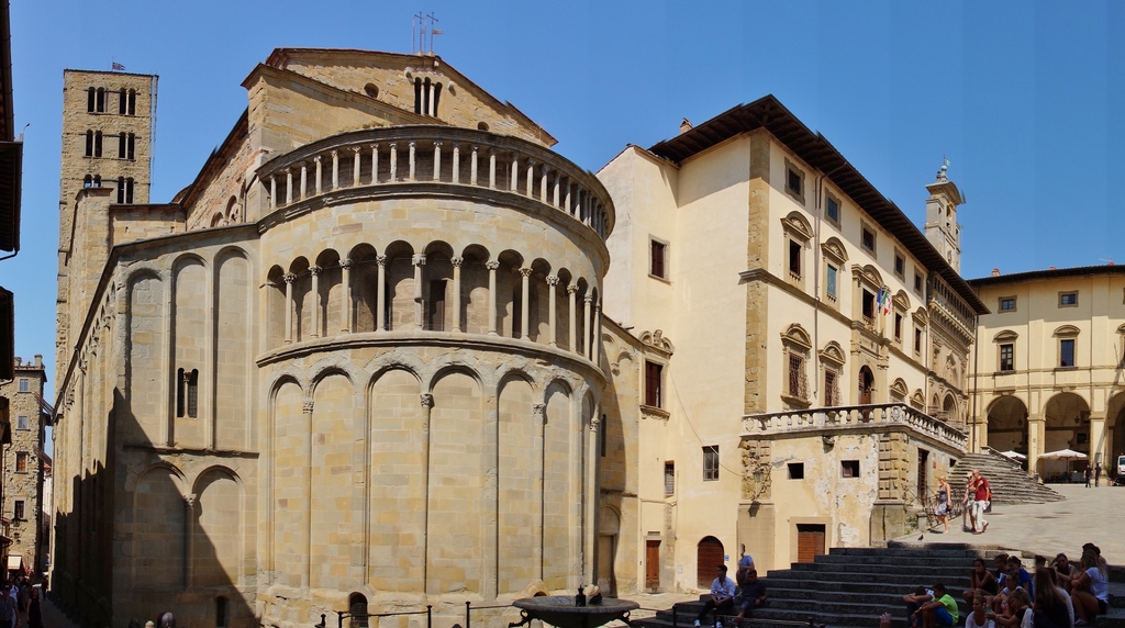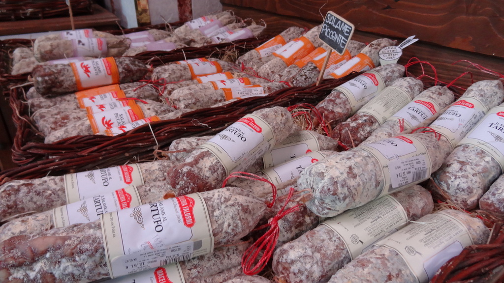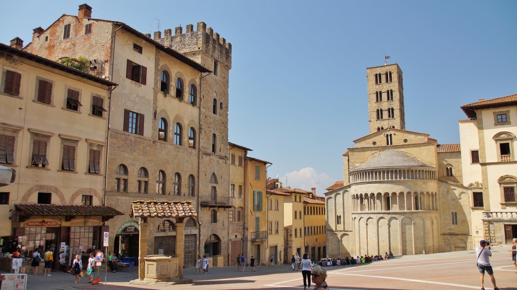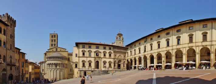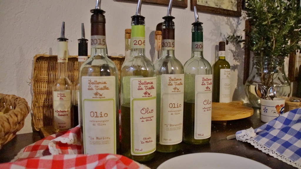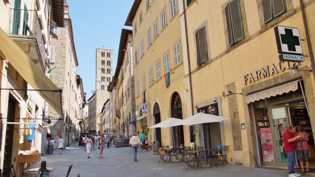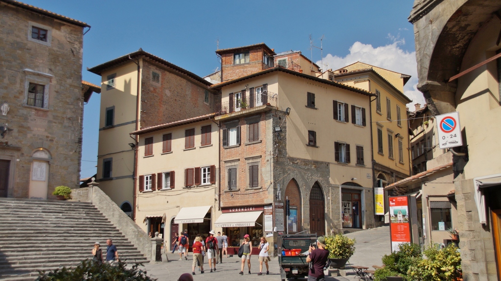 | Heute beginnt der Tag mal wieder mit einem Bad im Pool. Nach dem Frühstück starten wir um 09:00 Uhr via San Gimignano in Richtung Süden. Wir wollen heute mal der Fattoria La Vialla einen Besuch abstatten. Hier bestellen wir von Deutschland aus immer viele leckere Dinge und so liegt es auf der Hand, dass wir uns die Fattoria mal selbst vor Ort anschauen. Vorbei an Siena fahren wir in Richtung Arezzo und erreichen nach fast 2 Stunden Fahrt die an einem Berghang gelegene Fattoria La Vialla. Hier besichtigen wir kurz die Produktion (...hier wird noch sehr viel von Hand gemacht) und verkosten anschließend diverse Sorten Olivenöl und auch die lokale Fenchelsalami. Einige leckere Sachen im Gepäck (...der Kühlbox im MINI sei Dank) machen wir uns dann an die Weiterfahrt nach Arezzo. Nach kurzer Suche finden wir dann einen zentrumsnahen Parkplatz und bummeln durchs Centro Storico. Entlang des Corso Italia, der Hauptmeile von Arezzo, gelangen wir zur Piazza Grande mit seinen mittelalterlichen Gebäuden. Hier ist es mindestens so sehenswert wie in Siena, während es hier deutlich ruhiger ist und weniger Touristen vor Ort sind. Weiter geht es dann in Richtung Süden und nach ca. 30 Minuten Fahrt erreichen wir den am Berghang gelegenen Ort Cortona. Schon bei der Auffahrt sehen wir die geniale Silhouette des Ortes. Schnell finden wir einen der raren Parkplätze und besichtigen den Ort. Viele enge Gassen ziehen sich den Hang entlang, während wir ins Zentrum zur Piazza de Repubblica laufen. Überall zeigt sich der Charme des Ortes und das trotz der hier auch zahlreichen Touristen. Nach unserer Runde durch den Ort an der Grenze zur Region Umbrien fahren wir dann auf der Autostrada via Siena, Poggibonsi und San Gimignano zurück zur Casa Vaiano. Dort angekommen springen wir erst einmal in den Pool und erfrischen uns von der langen Fahrt. Den Tag beschließen wir mit einem Cingalino (Rotwein aus der Villa Pillo) und Pici fresco con Sugo di Cinghiale (frische toskanische Nudeln mit Wildschweinsoße). | ||