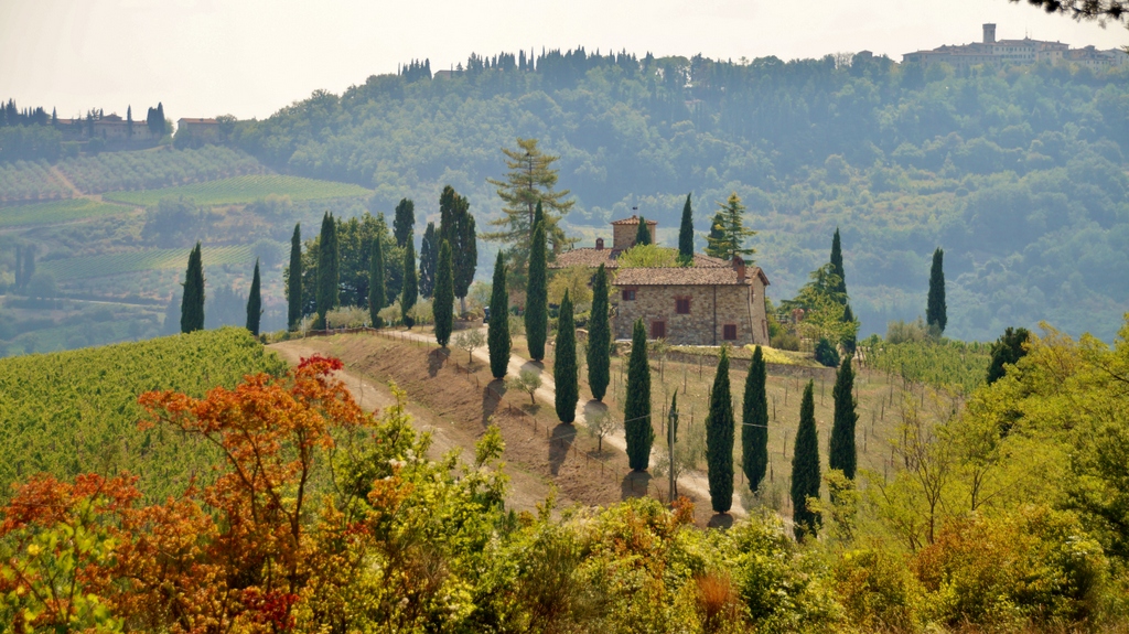 | Ins Chanti-Classico-Gebiet - Castello di Gabbiano - Greve - Vignamaggio - Panzano - Volpaia - Radda - Castellina - Fonterutoli - Poggibonsi | ||