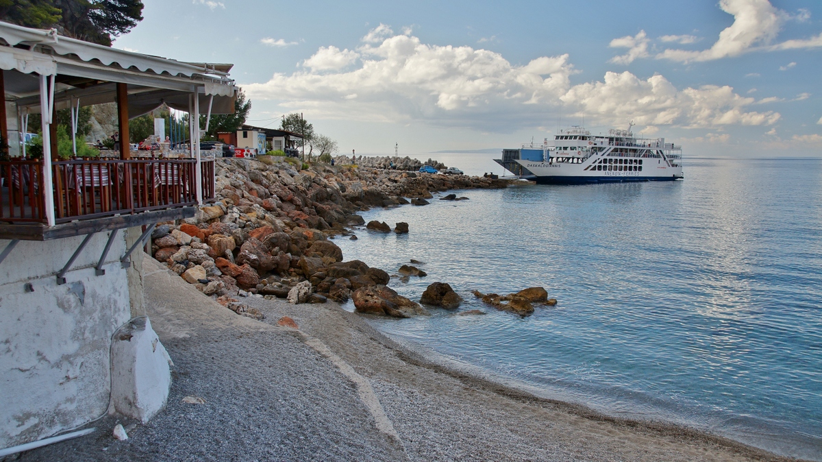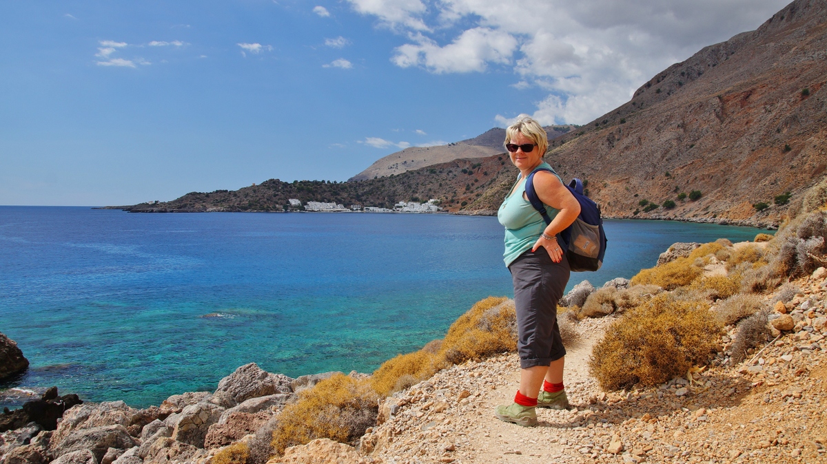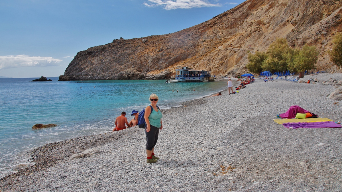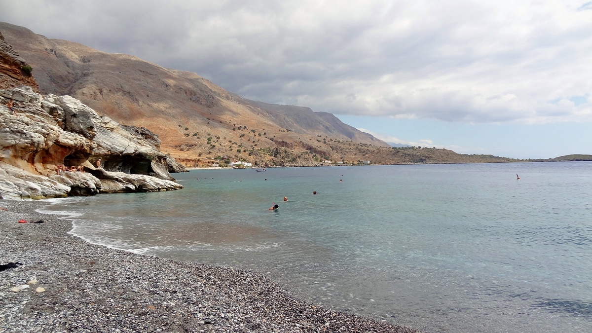 | Nach dem Frühstück starten wir in Richtung Westen. Zuerst führt uns eine stellenweise enge Serpentinenstraße hinauf nach Sellia. Von hier geht es über eine kurvenreiche Strecke bis nach Chora Sfakion, wo wir nach einer reichlichen Stunde Fahrt ankommen und unser Auto parken. Hier ist auch der Startpunkt unserer heutigen Wanderung entlang der Südküste nach Loutro. Das erste Stück des Weges führt entlang der Straße , welche hinauf nach Arádena führt. In einer markanten Kurve biegt nach ca. 25 Minuten der Weg von der Straße ab und führt auf einer Schotterstrecke hinunter zum Sweet Water Beach. Der Weg führt spektakulär hinunter zur Küste, ist aber immer relativ gut ausgebaut, so dass wir bald unten am Meer stehen. Wir suchen uns für unsere erste Badepause einen kleinen Ministrand kurz vor dem Sweet Water Beach heraus. Als wir ins Wasser springen, hört man es förmlich zischen, da die Temperaturen inzwischen gut zugelegt haben. Nach ca. einer Stunde gehen wir dann weiter in Richtung Loutro. Nachdem wir den Sweet Water Beach* mit seinen namensgebenden Süßwasserquellen passiert haben, steigt der Weg wieder nach oben auf. Von hier oben genießen wir nochmal einen tollen Panoramablick auf den Strand. Nach einem kurzen Abstecher zur kleinen Kapelle Agios Stavros, welche an unserem Weg liegt, führt der Weg vorbei an mehreren tollen Kiesstränden. Da es inzwischen ordentlich arm ist, machen wir noch eine weitere Badepause und erfrischen uns im angenehm warmen Mittelmeer. Am Horizont taucht auch schon unser Tagesziel Loutro auf. Der Weg steigt nochmals an und führt in luftiger Höhe weiter nach Loutro. Während wir hier einen kurzen Fotostopp einlegen werden wir hier von äußerst aggressiven Erdwespen attackiert und mich erwischt es auch mit einem Stich, welcher sich als ziemlich schmerzhaft erweist und nicht mit einem normalen Wespenstich vergleichbar ist. Dann erreichen wir auch schon Loutro. Der Ort ist nur per Pedes oder mit dem Boot erreichbar und so gibt es hier keine Straßen und keine Autos. Bevor wir mit der Fähre (6,-€ p.P.) wieder nach Chora Sfakion zurück fahren, nutzen wir die verbleibende Zeit für einen Eiscafe und ein kühles Bier. Entlang der Südküste fahren wir dann mit dem kleinen Boot der Anendyk-Fähre wieder zurück nach Chora Sfakion. Von hier fahren wir dann wieder auf der gleichen Strecke zurück nach Plakias, wo auch heute wieder ein sehr, sehr leckeres Abendessen auf uns wartet. | |
