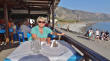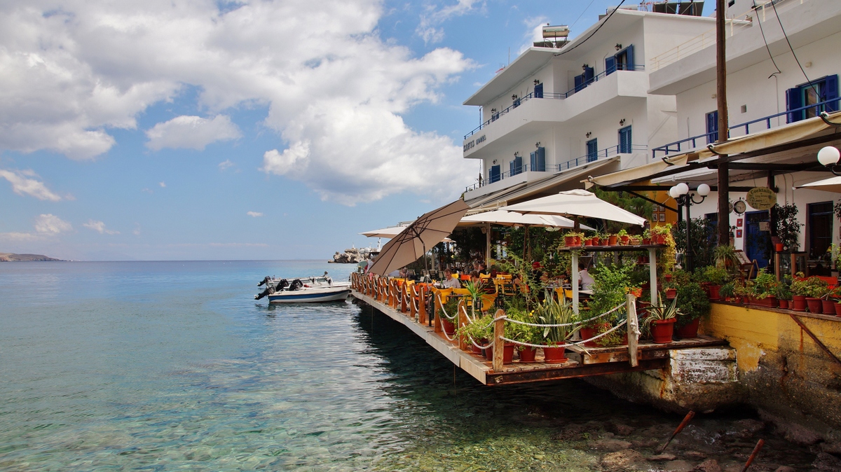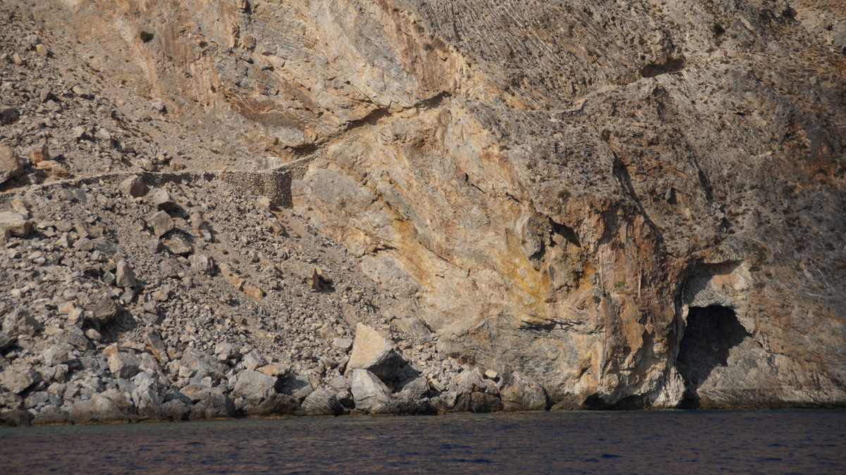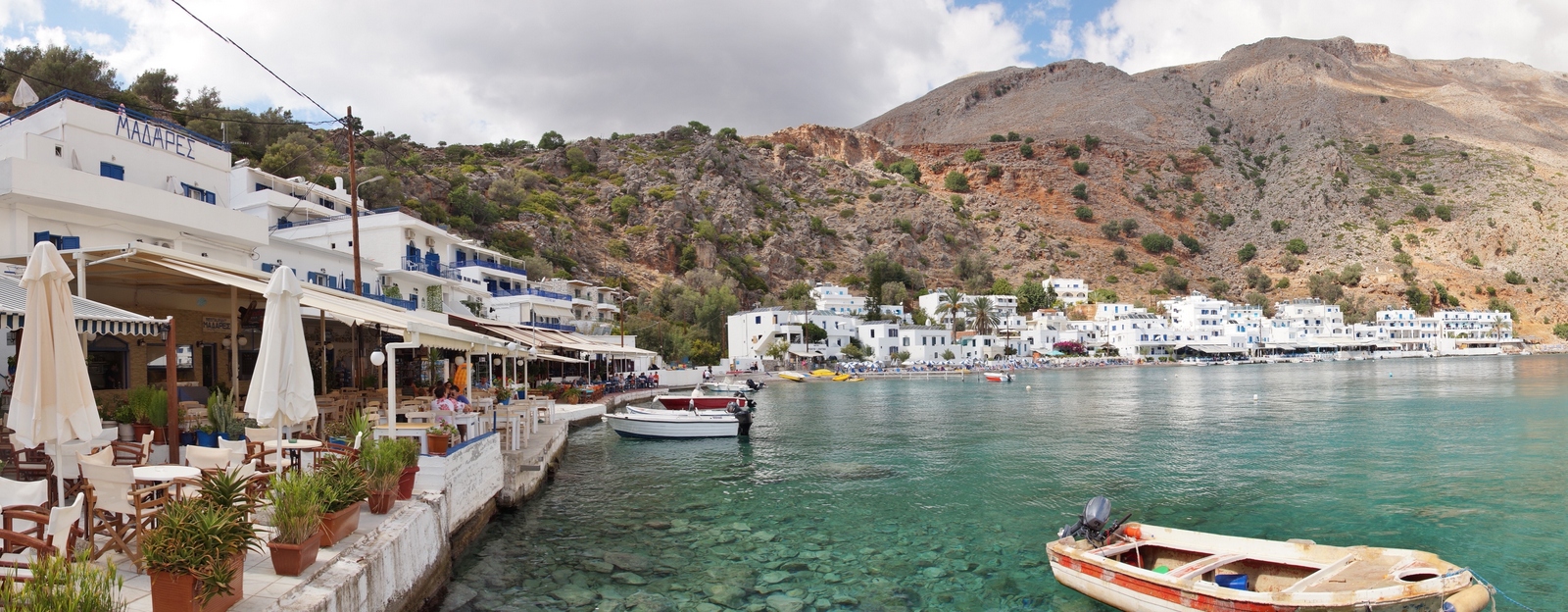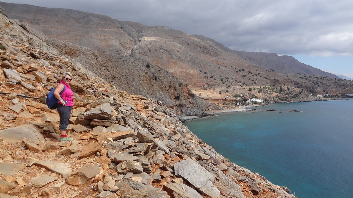 | Nach dem Frühstück starten wir in Richtung Westen. Zuerst führt uns eine stellenweise enge Serpentinenstraße hinauf nach Sellia. Von hier geht es über eine kurvenreiche Strecke bis nach Chora Sfakion, wo wir nach einer reichlichen Stunde Fahrt ankommen und unser Auto parken. Hier ist auch der Startpunkt unserer heutigen Wanderung entlang der Südküste nach Loutro. Das erste Stück des Weges führt entlang der Straße , welche hinauf nach Arádena führt. In einer markanten Kurve biegt nach ca. 25 Minuten der Weg von der Straße ab und führt auf einer Schotterstrecke hinunter zum Sweet Water Beach. Der Weg führt spektakulär hinunter zur Küste, ist aber immer relativ gut ausgebaut, so dass wir bald unten am Meer stehen. Wir suchen uns für unsere erste Badepause einen kleinen Ministrand kurz vor dem Sweet Water Beach heraus. Als wir ins Wasser springen, hört man es förmlich zischen, da die Temperaturen inzwischen gut zugelegt haben. Nach ca. einer Stunde gehen wir dann weiter in Richtung Loutro. Nachdem wir den Sweet Water Beach* mit seinen namensgebenden Süßwasserquellen passiert haben, steigt der Weg wieder nach oben auf. Von hier oben genießen wir nochmal einen tollen Panoramablick auf den Strand. Nach einem kurzen Abstecher zur kleinen Kapelle Agios Stavros, welche an unserem Weg liegt, führt der Weg vorbei an mehreren tollen Kiesstränden. Da es inzwischen ordentlich arm ist, machen wir noch eine weitere Badepause und erfrischen uns im angenehm warmen Mittelmeer. Am Horizont taucht auch schon unser Tagesziel Loutro auf. Der Weg steigt nochmals an und führt in luftiger Höhe weiter nach Loutro. Während wir hier einen kurzen Fotostopp einlegen werden wir hier von äußerst aggressiven Erdwespen attackiert und mich erwischt es auch mit einem Stich, welcher sich als ziemlich schmerzhaft erweist und nicht mit einem normalen Wespenstich vergleichbar ist. Dann erreichen wir auch schon Loutro. Der Ort ist nur per Pedes oder mit dem Boot erreichbar und so gibt es hier keine Straßen und keine Autos. Bevor wir mit der Fähre (6,-€ p.P.) wieder nach Chora Sfakion zurück fahren, nutzen wir die verbleibende Zeit für einen Eiscafe und ein kühles Bier. Entlang der Südküste fahren wir dann mit dem kleinen Boot der Anendyk-Fähre wieder zurück nach Chora Sfakion. Von hier fahren wir dann wieder auf der gleichen Strecke zurück nach Plakias, wo auch heute wieder ein sehr, sehr leckeres Abendessen auf uns wartet. | |