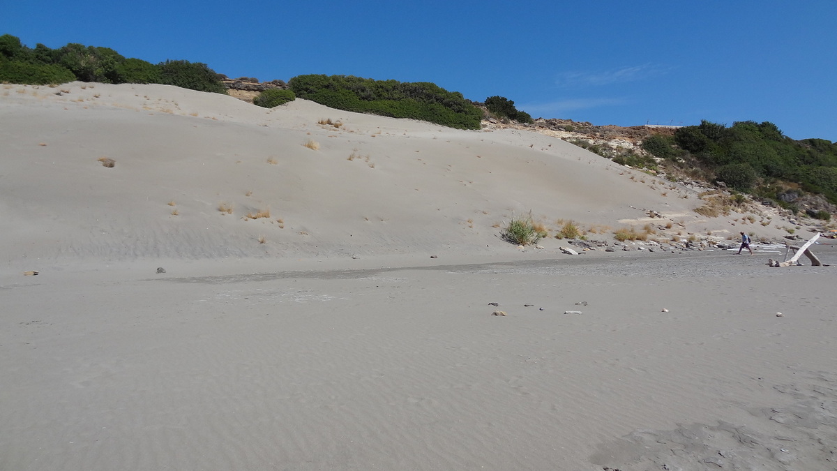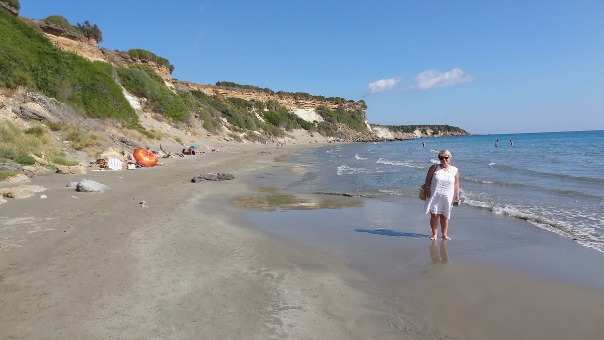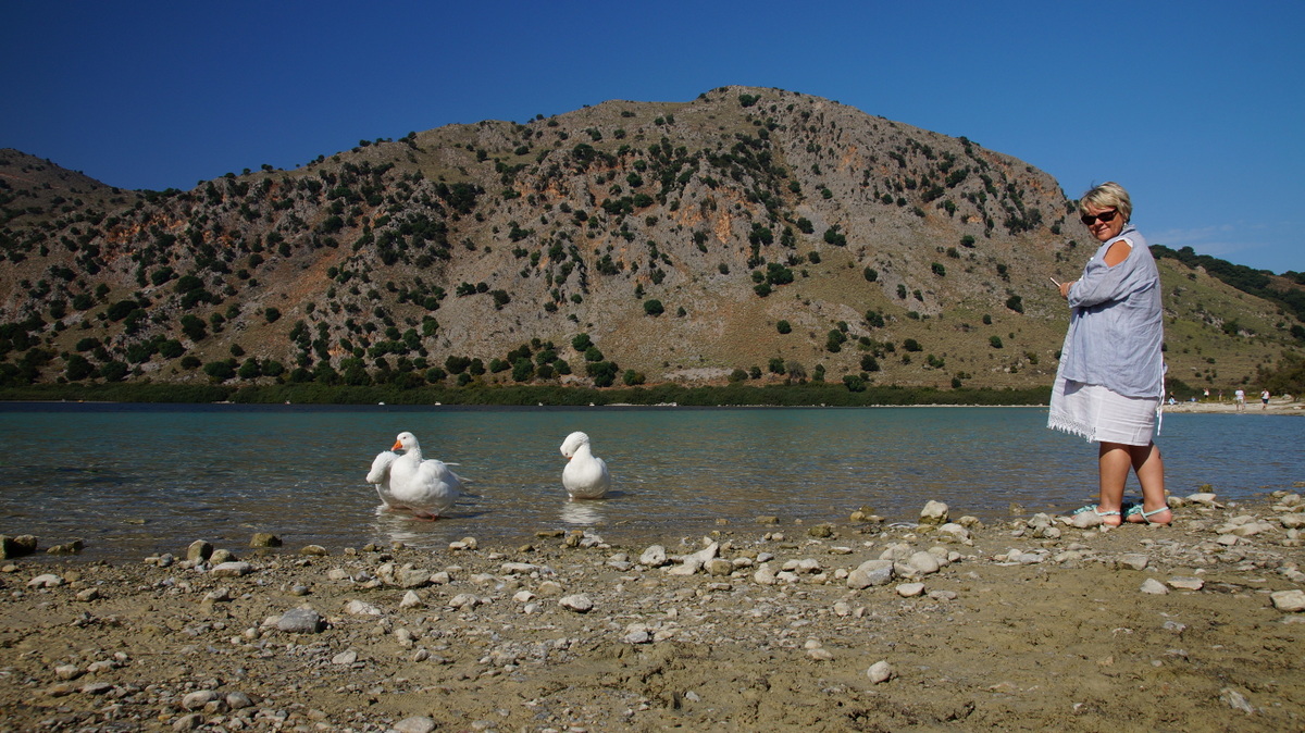 | Heute Morgen fahren wir zuerst die Straße nach Myrthios, welches oberhalb von Plakias liegt, hinauf und biegen hier in die kleine Kotsifou-Schlucht ein. Noch vor Rethymno biegen wir in kleine Nebenstraßen ein und fahren durch das Hinterland zum Limno-See. Das ist der größte See von Kreta und liegt recht nett oberhalb der Nordküste bei Georgioupoli. Allerdings merkt man hier die Nähe zu den Touristenorten von Nord-Kreta (die Scharen von AI-Touris werden mit dem Minitrain hierauf geshuttelt) und so kann uns trotz der idyllischen Lage der See nicht so recht begeistern. Schnell fahren wir weiter um hinter Georgioupoli in eine Straße abzubiegen, welche uns durch die Imbros-Schlucht wieder auf die Südseite der Insel bringt. Kurz nach dem Ort Imbros machen wir noch einen kurzen Fotostopp und können von hier oben bis zum Grund der Imbros-Schlucht schauen. Nachdem wir die vielen Serpentinen nach unten gefahren sind, biegen wir bei Komitades in Richtung unseres nächsten Zieles Frangokastello ab. In Frangokastello angekommen machen wir noch einen kurzen Fototstopp am alten venezianischen Kastell und fahren dann eine Piste oberhalb der Klippen entlang. Bei der Taverne "Fata Morgana" führt uns ein Treppenweg hinunter zum Strand von Orthi Ammos (bedeutet soviel wie steiler Sand). Die Klippen und die Sanddünen erinnern etwas an die Algarve und sind hier in dieser Ecke schon außergewöhnlich. Hier am Sandstrand von Orthi Ammos* verbringen wir bei bestem Badewetter den Nachmittag. Dann fahren wir wie meist die letzten Tage, via Rodakino und Sellia zurück. Bevor wir nach Plakias zurückkehren, machen wir noch einen kleinen Abstecher nach Spili. Hier bummeln wir durch den idyllischen Ort und besichtigen den markanten Löwenbrunnen. Hier gibt es auch einen tollen Kräuterladen, wo wir neben vielerlei Kräutern auch handgemachte Seife und einen lokalen Raki mit Honig erstehen. Dann geht es zurück über die Kourtaliotis-Schlucht nach Plakias. | |