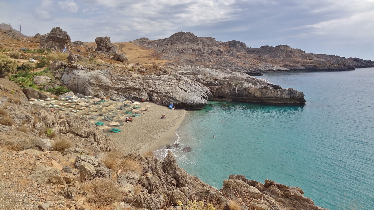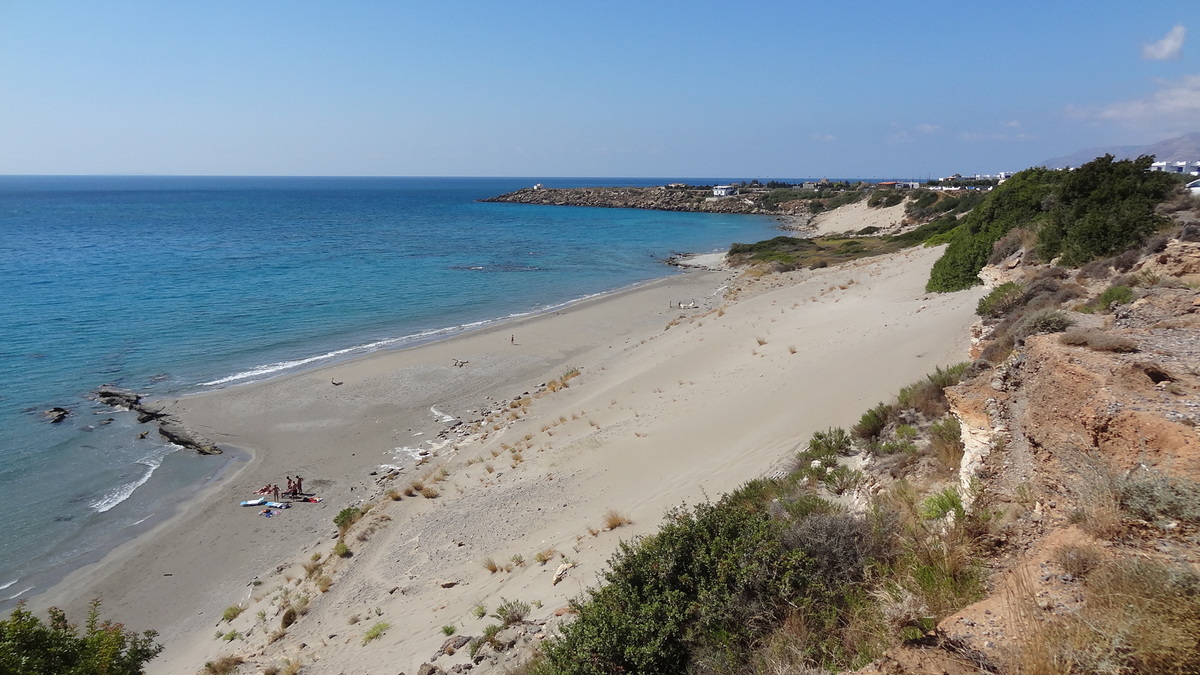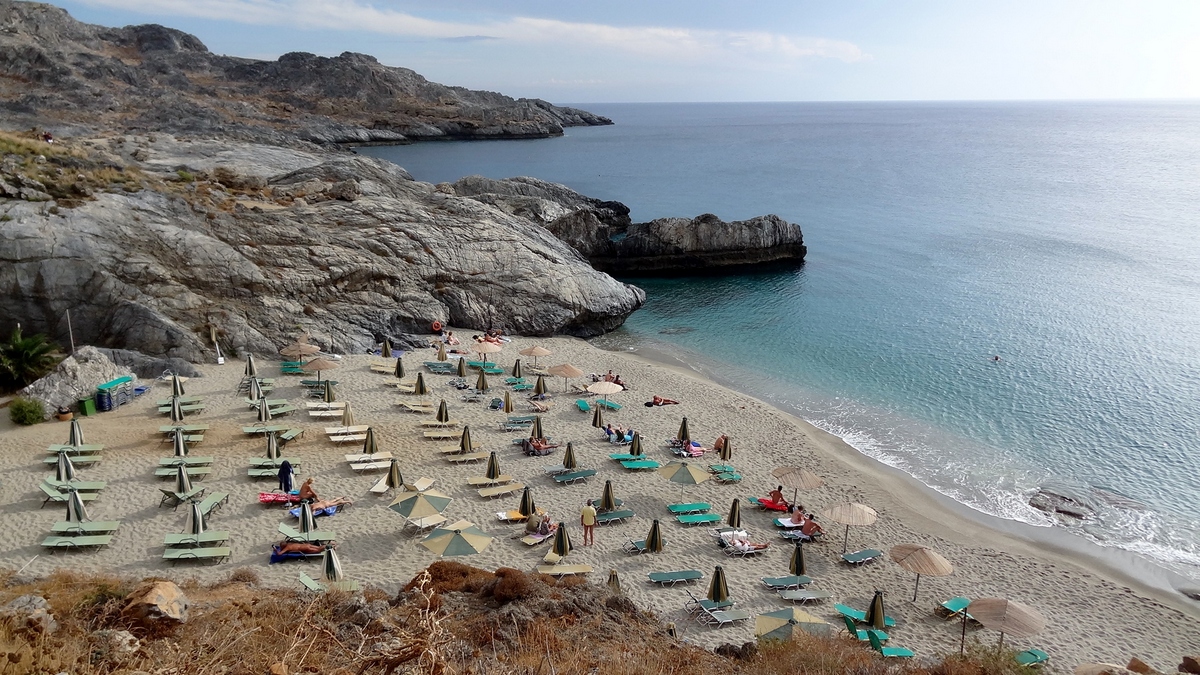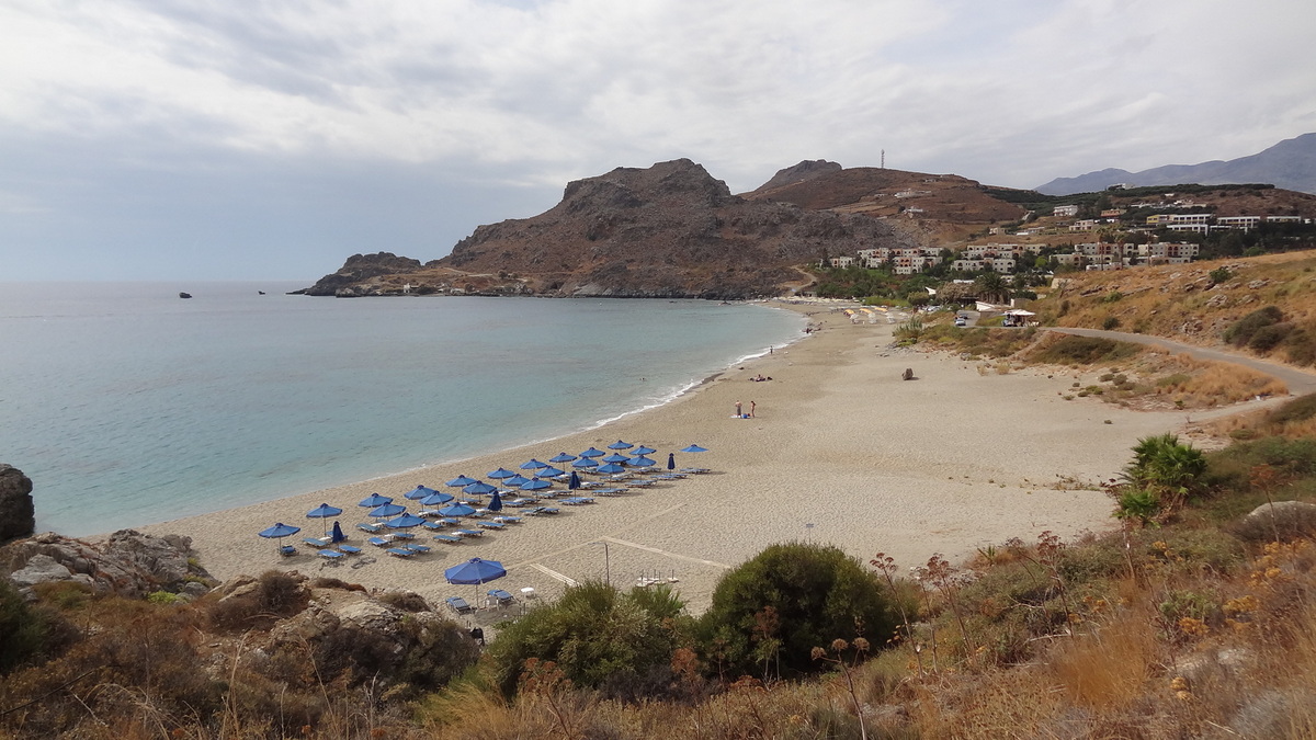 | Nach unser langen Tour von gestern, lassen wir es an unserem letzten Tag nochmals etwas ruhiger angehen. Leider ist auch das Wetter heute nicht sehr gnädig mit uns, so dass am Morgen der Himmel voller Wolken ist. Nach dem Frühstück bummeln wir erst einmal eine Runde durch Plakias. Da es inzwischen etwas sonniger geworden ist, fahren wir ein paar Kilometer hinüber zum Kloster Kato Moni Preveli. Das Kloster liegt oberhalb des bekannten Palmenstrandes von Preveli und von hier oben hat mein einen weiten Blick übers Meer. Natürlich besichtigen wir auch das Kloster und das dortige Museum. Leider kann man wie in vielen Kirchen in Griechenland im Innenraum von Kirchen oder Klöstern nicht fotografieren, so dass es leider keine Bilder von der Pracht und den Ikonen des Klosters Preveli gibt. Nach dem Besuch des Klosters fahren wir weiter zum Bergdorf Myrthios, wo wir die tolle Aussicht hinunter nach Plakias genießen. Über enge Straßen und gefühlt hunderte Kurven fahren wir dann wieder hinunter an die Küste von Plakias. Wir fahren dann noch bis zum Osten der Bucht, wo sich ein schöner Sandstrand* vor toller Felskulisse befindet. Leider fängt es dann an zu regnen, so dass wir kurz in unser Quartier zurückfahren, um die Regenpause schon zum Kofferpacken nutzen. Glücklicherweise hört es dann auf zu regnen und die Sonnen zeigt sich wieder. Wir starten dann gleich wieder hinüber in Richtung Damnoni zum Ammoudaki-Beach, wo wir bei wechselhaften Wetter den Nachmittag verbringen. Zurück im Hotel steht dann leider schon das letzte Abendessen auf dem Programm. Obwohl wir sonst fast ausschließlich Selbstversorger sind, so haben wir das leckere Essen hier in unserem Quartier sehr genossen. | |