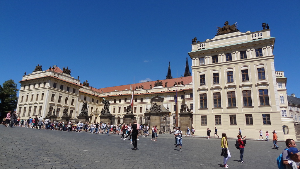 | Nach einem ausgiebigen Frühstück fahren wir mit der Straßenbahn von Anděl in Richtung Zentrum. An der Station Újezd wechseln wir in die Standseilbahn, welche uns in kurzer Fahrt hinauf auf den Petřín bringt. Hier oben gibt es die Miniausgabe des Pariser Eiffelturms, doch auch ohne Turmbesteigung hat man einen tollen Blick über Prag. Hier führen mehrere Wege hinüber in Richtung Hradschin auf welchen wir zuerst zum Strahov-Kloster (Strahovský klášter) schlendern. Nach einer kurzen Besichtugung des Klosterhofes gehen wir dann hinüber zur Prager Burg und laufen die engen Gassen der Altstadt wieder hinunter in Richtung Karlsbrücke. Ab Malostranské náměstí geht es dann mit der Tram wieder zurück zum Hotel. Dort angekommen geht es dann zurück zum Auto und wir treten die Heimfahrt an. Das Wochenende in Prag war wie immer toll und kurzweilig und aufgrund der Tatsache, dass wir schnell und unkompliziert dort sind, wird es sicher auch im kommenden Jahr unser Ziel sein. | |