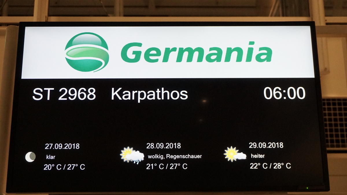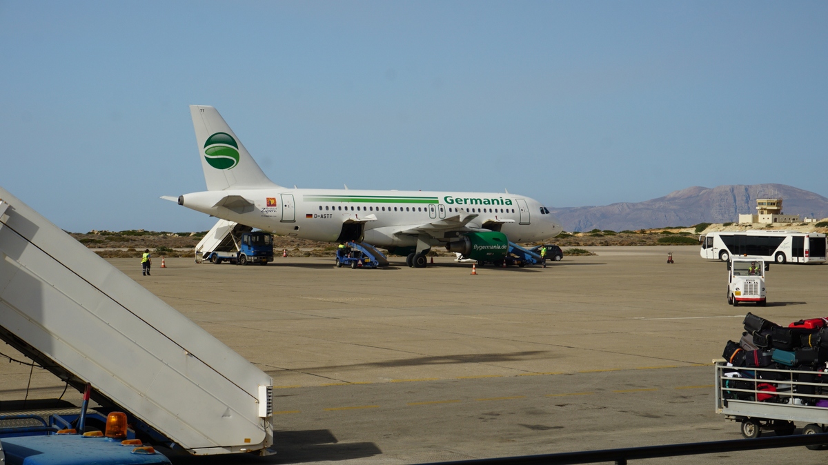 und schreibe vier Flieger am Airport abgefertigt werden. Damit stößt man