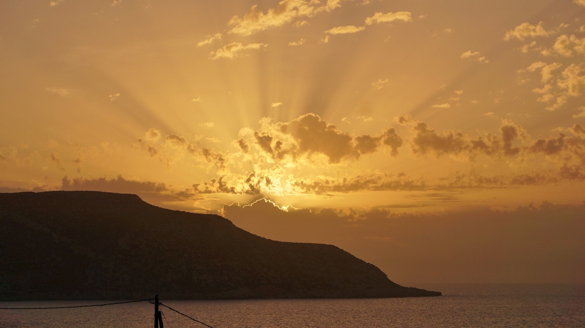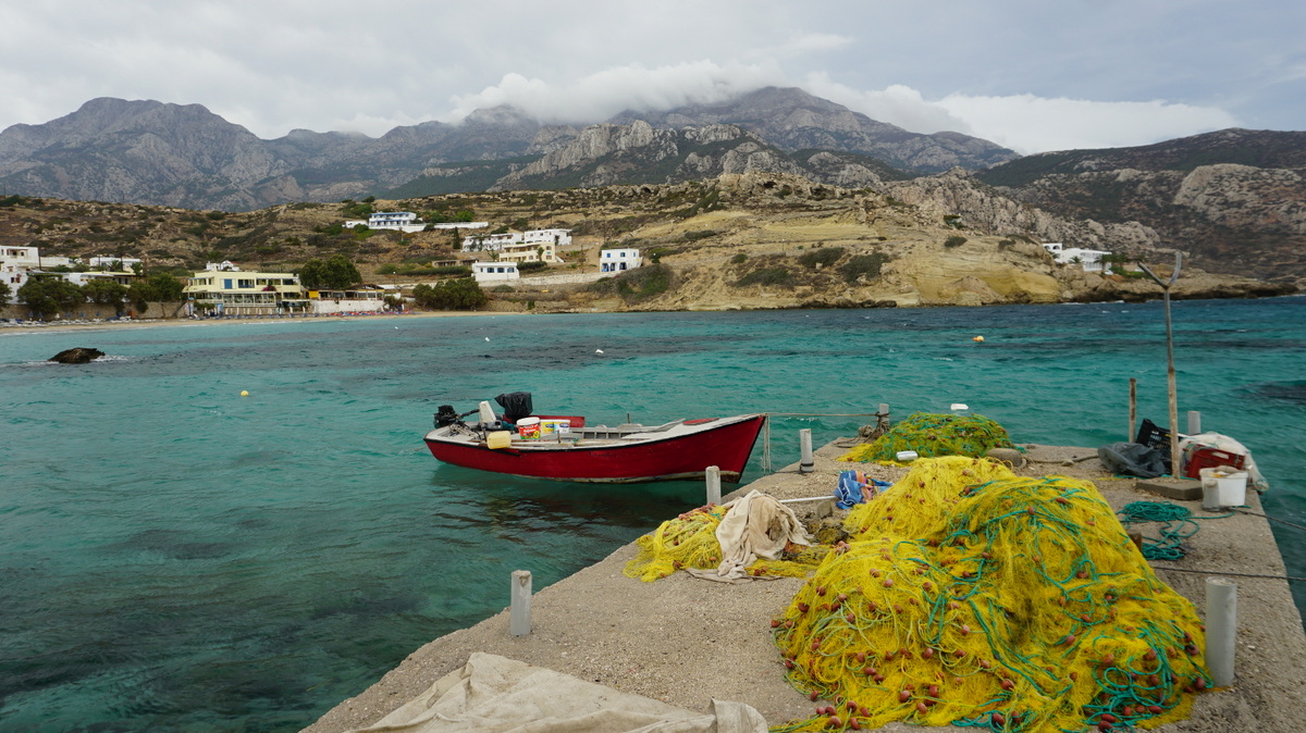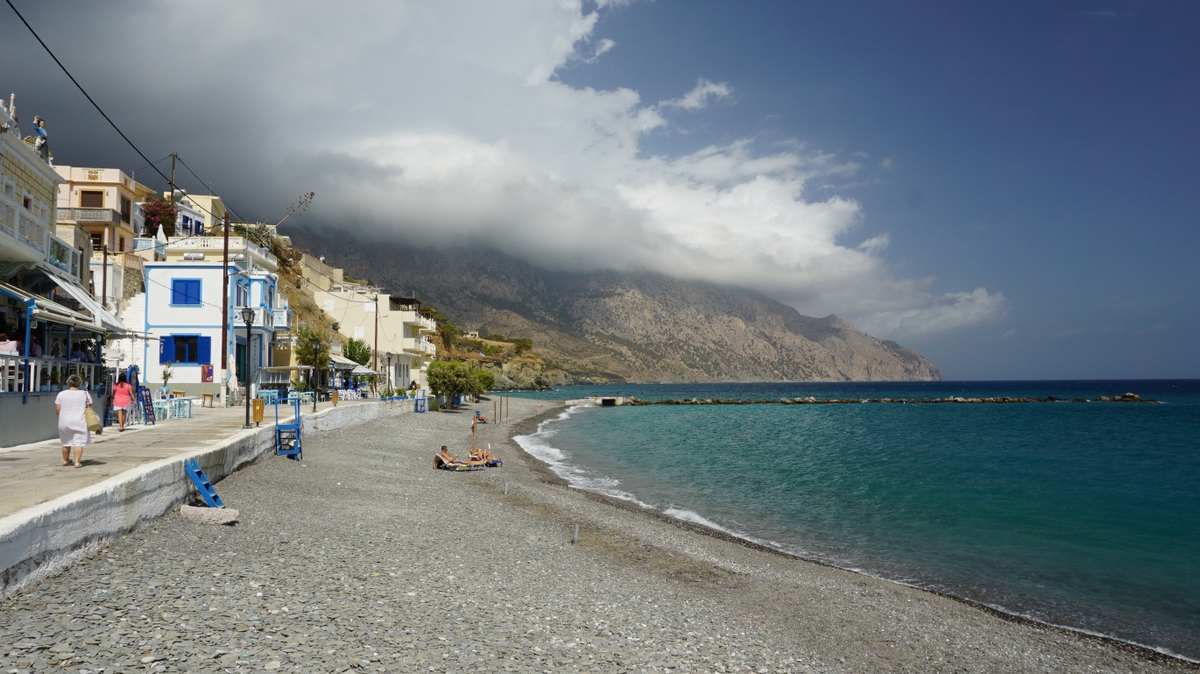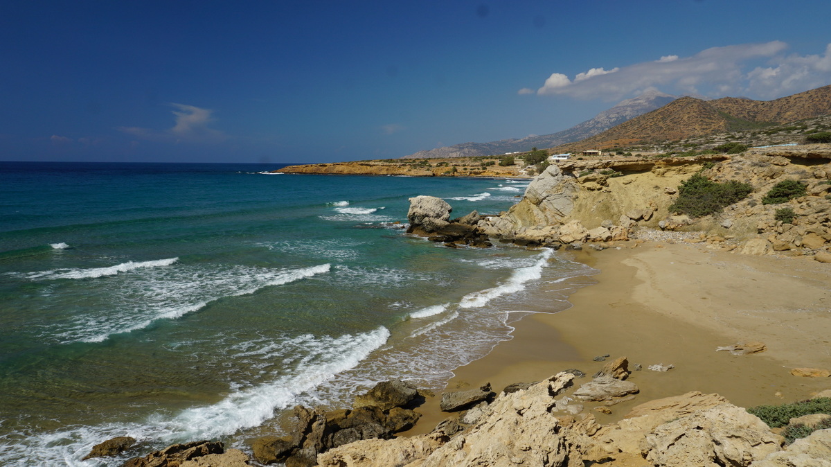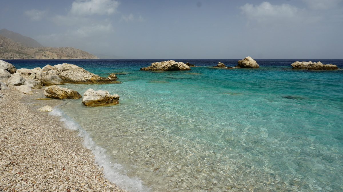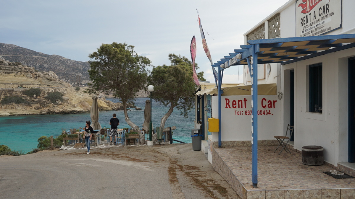 | Heute erleben wir die ganze Bandbreite des Wetters. Doch später dazu mehr. Gegen 07:00 Uhr geht die Sonne auf und taucht die Bucht von Amoopi in ein goldgelbes Licht. Kurze Zeit später sitzen wir dann auf unserer Terrasse und frühstücken bei milden Temperaturen und genießen so die Stille am Morgen. Dann brechen wir auf und erkunden zuerst die Umgebung von Amoopi. Erster Stopp ist der Pera Ammos-Beach und die kleine Kapelle Agii Apostoli. Nachdem wir über eine enge Straße weiter zur nächsten Bucht fahren, stehen wir dann am Fokia-Beach. Hier ist es recht rustikal und es gibt nur wenige Strandschirme. Dafür liegen hier ein paar bunte Fischerboote am Strand und die Felsen bieten eine hübsche Szenerie. Dann fahren wir weiter die Serpentinenstraße hinauf ins nahe gelegene Bergdorf Menetes. Kaum erreichen wir den Ort, fängt es heftig an zu regnen. So müssen wir leider weiterfahren und können den Ort leider nicht besichtigen, was wir sicher nachholen werden. In Arkasa, dem nächsten Ort, biegen wir dann zum Agios Nikolaos-Beach ab. Glücklicherweise hat der Regen eine kurze Pause eingelegt, so dass wir aussteigen können und eine Runde an diesem Sandstrand gehen können. Als der Regen wieder einsetzt, fahren wir weiter zum Kap Agios Theodoros. Die Vis a vis gelegene Insel Kasos, welche wir gerade noch nah vor uns gesehen haben, scheint gerade verschwunden zu sein, da der Regen und die Wolken immer dichter werden. Auf dem Smartphone kommt auch soeben eine Unwetterwarnung an und so können wir nicht aussteigen und versuchen uns vorzustellen, wie es hier bei Sonnenschein aussehen könnte. Zurück in Arkasa fahren wir weiter entlang der Westküste bis Finiki. Der kleine Ort mit pittoreskem Fischerhafen liegt vor einer tollen Felskulisse. Hier schießt das Wasser sturmflutartig in die kleine Bucht, so dass sich das Wasser teilweise braun färbt. Trotzdem begeistert uns der kleine Ort - auch hierher müssen wir bei besseren Wetter unbedingt nochmal kommen. Die weitere Fahrt geht entlang der Westküste, wo wir bei Adia nochmals zu einem Strand abbiegen. Inzwischen hat der Regen nachgelassen und so können wir auf der weiteren Fahrt in Richtung Lefkos an der Potali Bay Station machen. Dank des frischen warmen Windes haben sich die meisten Wolken inzwischen verzogen und die Sonne zeigt sich immer öfterer. Dann erreichen wir die Buchten unterhalb von Lefkos, wo wir die Gelegenheit nutzen, um einige der Strände in Augenschein zu nehmen. Hier gibt es mehrere Tavernen direkt am Strand und die Bucht strahlt trotz des immer noch heftigen Windes eine geniale Ruhe aus. Dann fahren wir ein Stück zurück, um kurz vor Finiki, in die Berge hinauf abzubiegen. Während die Westseite inzwischen im Sonnenschein liegt, wird es auf unserer Fahrt über Pyles, Othos und Volada wieder wolkig und die Nebelschwaden hängen in den Bergen. Nachdem wir Aperi passiert haben, wird es wieder sonniger. Wir umfahren auf Nebenstraßen Pigadia und erreichen dann bei Sonnenschein die Ostküste, wo wir unweit von Amoopi zum Kastelia Beach fahren. Auch, wenn inzwischen die Sonne von einem fast wolkenlosen Himmel scheint, so ist es immer noch recht windig, so dass wir unseren ursprünglichen Plan hier zu schnorcheln, schnell aufgeben müssen. Nur ein kurzes Stück weiter kommen wir dann wieder zum Votsalákia Beach, wo wir die Nachmittagssonne genießen und uns im Meer erfrischen. Im späten Nachmittag essen wir dann noch lecker in der Taverna "Helios" und lassen den Tag auf unserer Terrasse ausklingen. Wir hoffen, dass der Sturm über Griechenland (...man spricht hier von einem "Medicane" - dem Hurrikan des Mittelmeeres) einen Bogen um uns macht. Der Wetterbericht für morgen sieht Gott sei Dank positiv aus und wir hoffen auf sonniges Wetter. | |