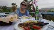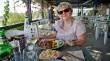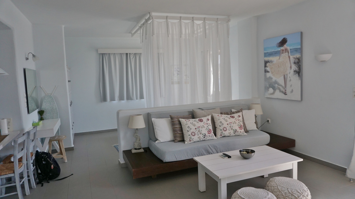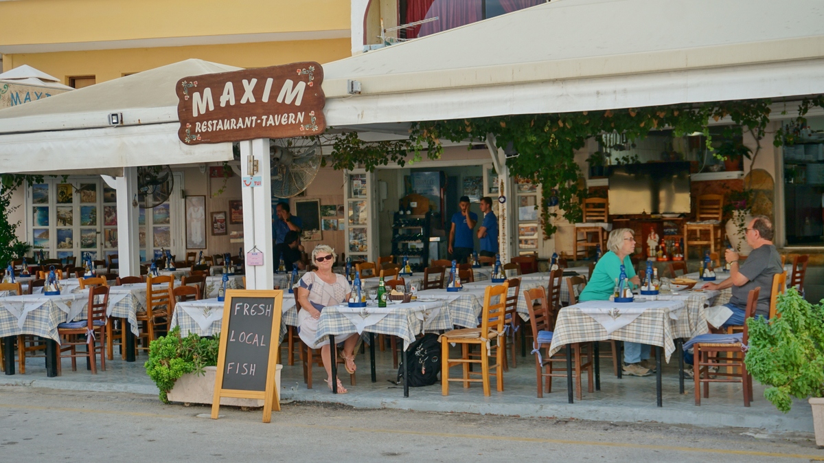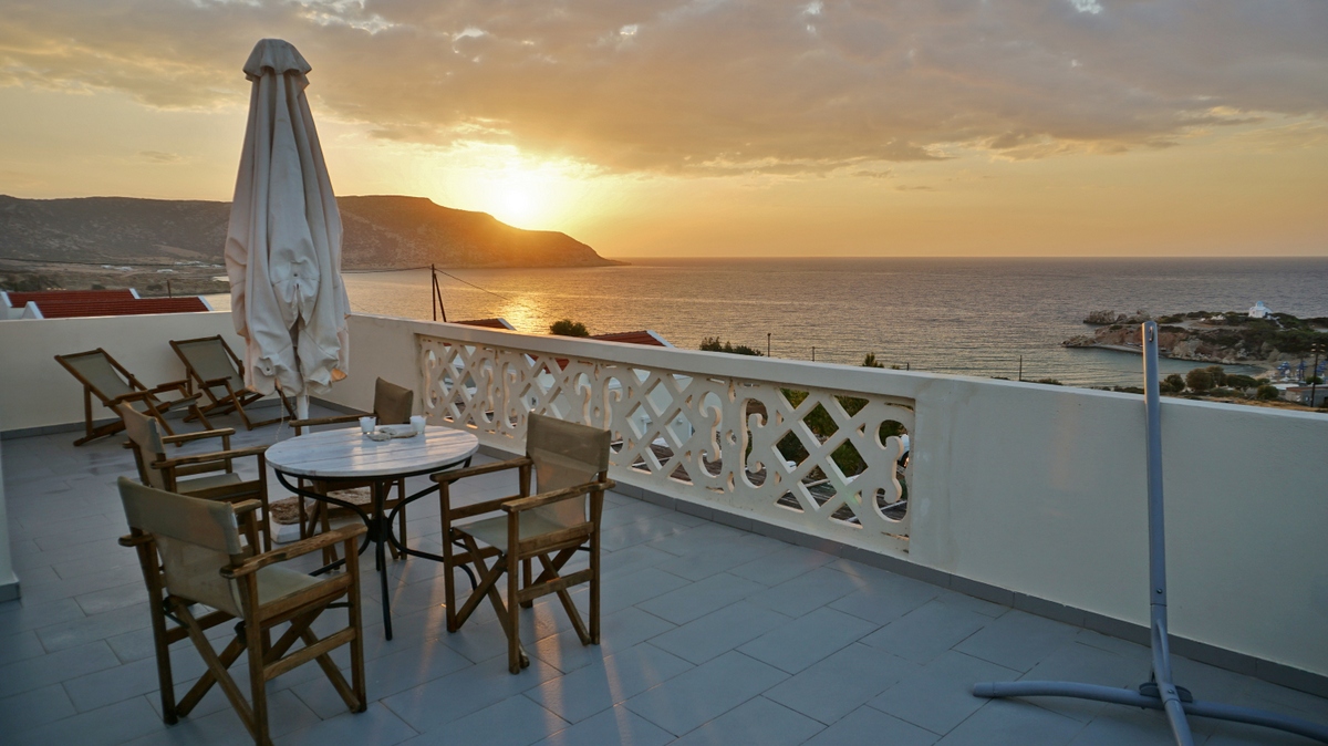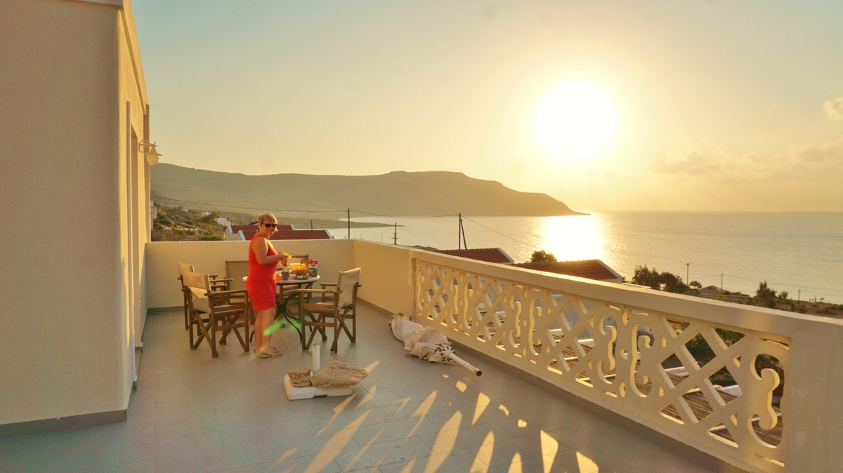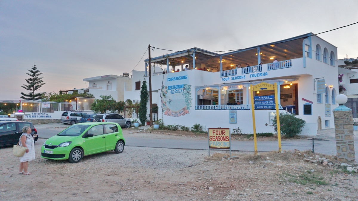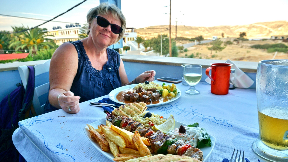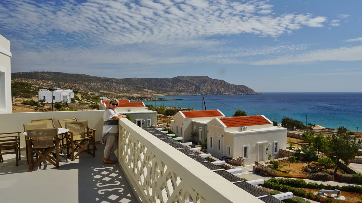 | Zu sehr unchristlichen Zeiten klingelt der Wecker noch vor Mitternacht. Nach etwas mehr als drei Stunden Fahrt kommen wir am Parkplatz P41 am Flughafen in München an und kurze Zeit später bringt uns der Bus zum Terminal. Nachdem wir sonst den Flughafen München immer positiv gesehen haben, gibt es heute recht viel zu kritisieren. Die Koffer werden wir noch recht schnell los aber dann stehen wir eine kleine Ewigkeit an der Security. Nach ca. einer Stunde haben wir es dann endlich bis ans Gate geschafft, wo es dann kurze Zeit später auch zum Flieger geht. Der kann allerdings nicht starten, da kein Personal zum Verladen der Koffer da ist - ohne Worte. Nachdem endlich die Koffer im Flugzeug sind, starten wir mit einer Stunde Verspätung in Richtung Griechenland. Via Salzburg geht es nach Südosten und nachdem wir Thessaloniki und die Insel Thassos passiert haben, landen wir auf dem kleinen Flughafen der Dodekanes-Insel. Schnell ist der Mietwagen übernommen und wir fahren ca. 15 Minuten bis Amoopi, wo wir von Maria im Althea-Boutiquehotel bereits erwartet werden. Einige Zeit später machen wir uns dann auf zu einer ersten Erkundung zum Einkaufen, da wir ja Selbstverpfleger sind. Nachdem wir im Quartier die Einkäufe im Kühlschrank verstaut haben, geht es an den Strand. Davon hat Amoopi mehrere zu bieten. Bevor wir es uns am Votsalákia-Strand gemütlich machen, zieht es uns in die unmittelbar oberhalb gelegene Taverna "Calypso", wo es den ersten Gyros-Pita mit Tzaziki gibt. Den Abend verbringen wir dann bei lauen Temperaturen auf unserer großen Panoramaterrasse, von der aus uns der ganze Ort Amoopi zu Füßen liegt. | |