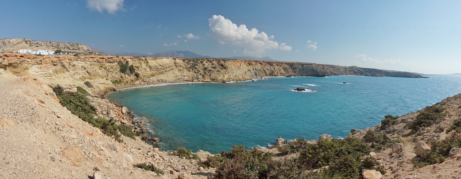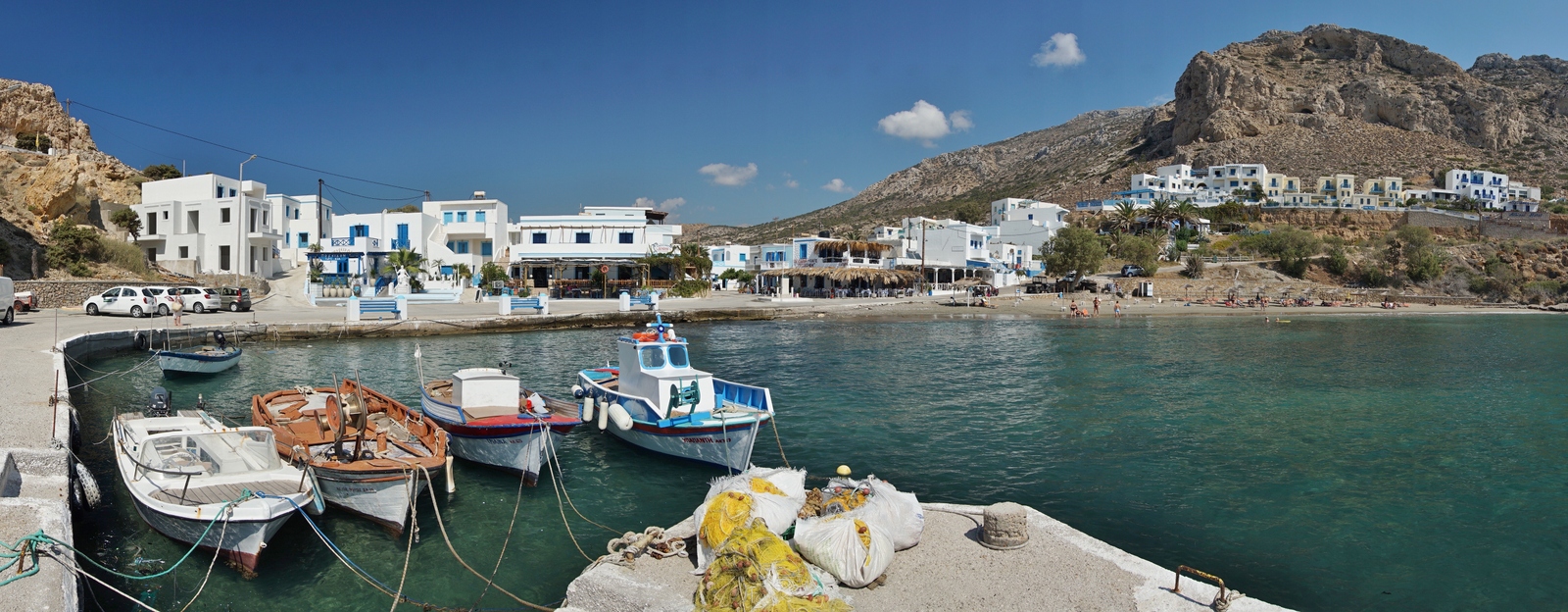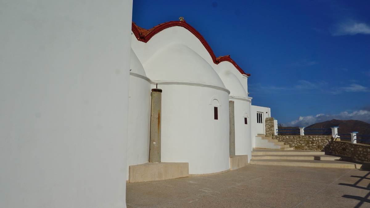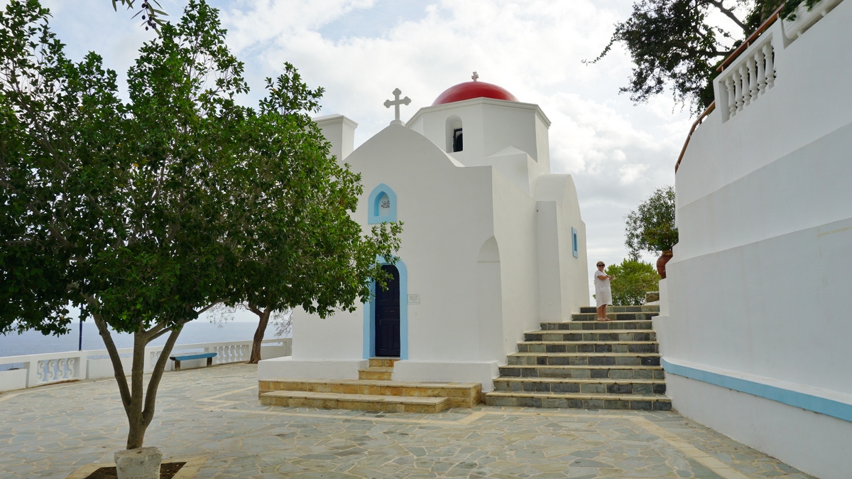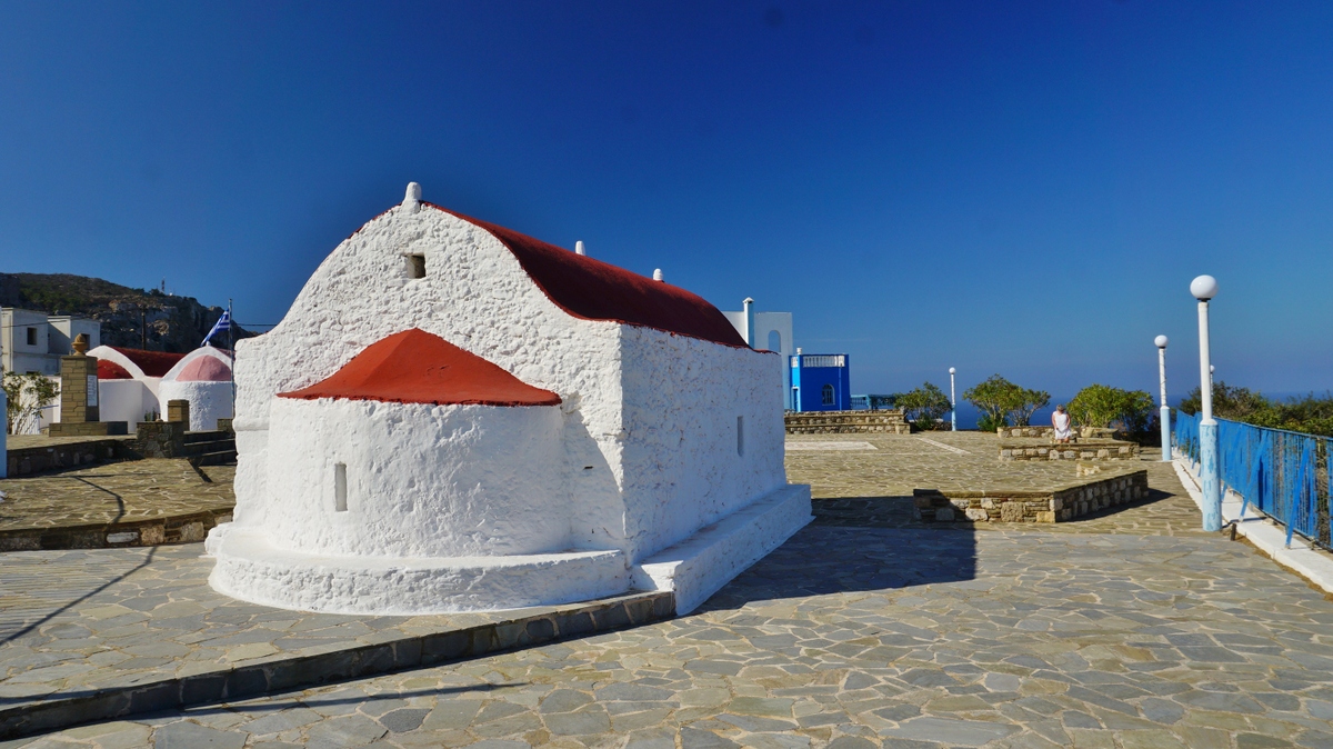 | Natürlich beginnt der Tag mit dem von uns so geliebten Frühstück auf der Panoramaterrasse. Die Morgensonne taucht die Bucht von Amoopi in ein goldgelbes Licht und eine solche Kulisse ist einfach nur wunderbar. Dann brechen wir auf und fahren mit dem Mietwagen via Pigadia, Aperi, Volada, Othos und Pyles hinüber zur Westküste. Als wir von den Bergdörfern kommend wieder zur Küste hinunterfahren, sehen wir am Horizont die kleinere Nachbarinsel Kasos deutlich und klar vor uns liegen. Bevor wir Lefkos passieren, machen wir nochmals einen Abstecher und einen unberührten Strand bei Adia, welchen wir am Freitag bei Regen schon einmal kurz besuchtet hatten. Heute schaut bei Sonnenschein die Szenerie ungleich schöner aus und wir bummeln kurz am Strand entlang. Nach kurzer Weiterfahrt erreichen wir dann das Bergdorf Mesochori, wo wir einen längeren Stopp einlegen. Das Auto muss man oberhalb des Dorfes parken, da im Ort ausschließlich enge Treppenwege zu finden sind, wo man nur per Pedes vorankommt. Im Gewirr der engen Gassen kann man sich kaum orientieren, doch dann stehen wir vor einem Aussichtspunkt, von dem man einen tollen Blick auf die wilde Westküste von Karpathos hat. Nun sehen wir von hier auch die markante Kirche, welche wir als nächstes ansteuern. Die Kirche besteht neben dem Hauptgebäude noch aus einem typischen Glockenturm und als Besonderheit befindet sich unterhalb des Kirchengebäudes noch ein Brunnenhaus mit drei sprudelnden Quellen. Entlang der verwinkelten Gassen laufen wir zum Auto zurück und fahren weiter am Fuße des Kali Limni, des mit 1.215m höchsten Berg der Insel Karpathos. Damit hat er exakt die gleiche Höhe wie der Fichtelberg im heimatlichen Erzgebirge, doch mit Sicherheit liegt hier deutlich weniger Schnee ;-). Wir passieren Spoa und fahren eine enge aber gut ausgebaute Serpentinenstraße hinunter zur Ostküste nach Agios Nikolaos. Dieser kleine Weiler mit dem Minihafen strahlt eine wunderbare Ruhe aus und wir lassen uns von der relaxten Stimmung treiben. Nachdem wir auch hier eine Runde gedreht haben, fahren wir wieder hinauf nach Spoa und biegen in Richtung Olympos nach Norden ab. Nach ca. 12 Kilometern biegt eine Schotterpiste hinunter zum Agios Minas Beach mit der gleichnamigen kleinen Kapelle ab. Nach einem knappen Kilometer müssen wir das Abenteuer leider abbrechen, da unser normaler Pkw leider für das Gelände nicht geeignet ist. Nachdem wir mühevoll auf der engen Piste gewendet hatten, bleiben wir auf einem besonders steilen Teilstück hängen und nur durch Schieben und besonders gefühlvoller Kupplungsarbeit gelingt es uns, diese Stelle zu überwinden und wieder zur Hauptstraße nach oben zu gelangen. So entschließen wir uns, nochmals zum Apella-Strand zu fahren. Dort verbringen wir dann den Nachmittag am dortigen Strand mit Schnorcheln und Sonnenbaden. Dann geht es zurück nach Amoopi, doch bevor wir zum Abendessen fahren, nutzen wir die Abendstimmung zu einem Abstecher zum Kastelia Beach, wo wir noch eine Runde schnorcheln. Dann fahren wir nur wenige Meter weiter, um im "Four Seasons" zu Abend zu essen. Dann erreichen wir unser Quartier, wo wir den Tag auf der Terrasse ausklingen lassen. | |