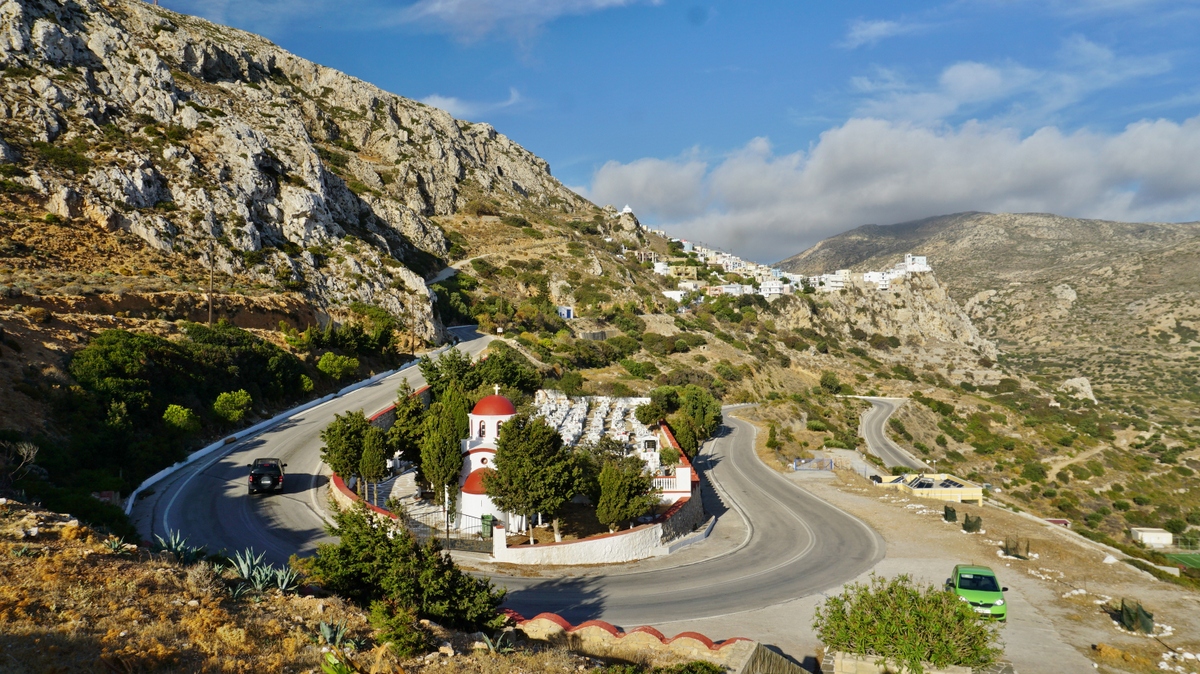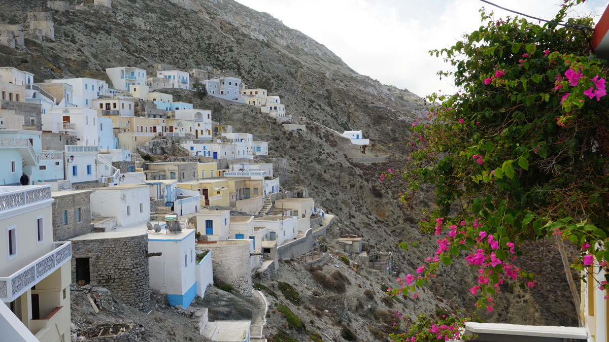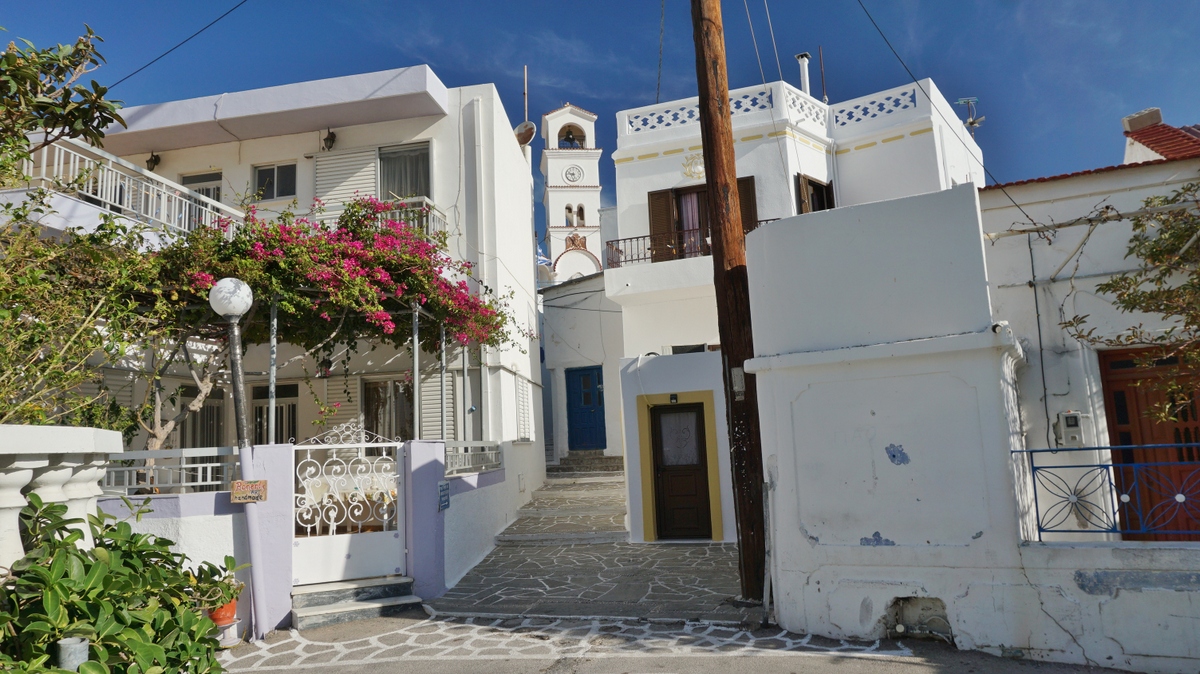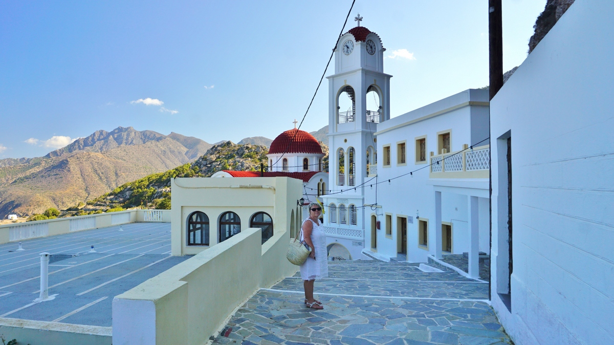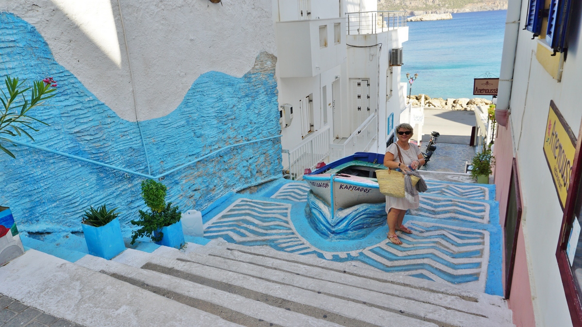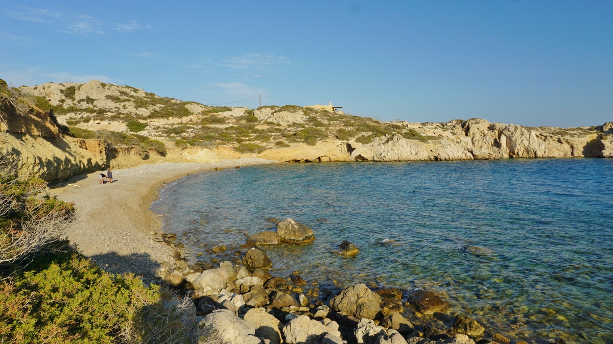 | Natürlich beginnt der Tag mit dem von uns so geliebten Frühstück auf der Panoramaterrasse. Die Morgensonne taucht die Bucht von Amoopi in ein goldgelbes Licht und eine solche Kulisse ist einfach nur wunderbar. Dann brechen wir auf und fahren mit dem Mietwagen via Pigadia, Aperi, Volada, Othos und Pyles hinüber zur Westküste. Als wir von den Bergdörfern kommend wieder zur Küste hinunterfahren, sehen wir am Horizont die kleinere Nachbarinsel Kasos deutlich und klar vor uns liegen. Bevor wir Lefkos passieren, machen wir nochmals einen Abstecher und einen unberührten Strand bei Adia, welchen wir am Freitag bei Regen schon einmal kurz besuchtet hatten. Heute schaut bei Sonnenschein die Szenerie ungleich schöner aus und wir bummeln kurz am Strand entlang. Nach kurzer Weiterfahrt erreichen wir dann das Bergdorf Mesochori, wo wir einen längeren Stopp einlegen. Das Auto muss man oberhalb des Dorfes parken, da im Ort ausschließlich enge Treppenwege zu finden sind, wo man nur per Pedes vorankommt. Im Gewirr der engen Gassen kann man sich kaum orientieren, doch dann stehen wir vor einem Aussichtspunkt, von dem man einen tollen Blick auf die wilde Westküste von Karpathos hat. Nun sehen wir von hier auch die markante Kirche, welche wir als nächstes ansteuern. Die Kirche besteht neben dem Hauptgebäude noch aus einem typischen Glockenturm und als Besonderheit befindet sich unterhalb des Kirchengebäudes noch ein Brunnenhaus mit drei sprudelnden Quellen. Entlang der verwinkelten Gassen laufen wir zum Auto zurück und fahren weiter am Fuße des Kali Limni, des mit 1.215m höchsten Berg der Insel Karpathos. Damit hat er exakt die gleiche Höhe wie der Fichtelberg im heimatlichen Erzgebirge, doch mit Sicherheit liegt hier deutlich weniger Schnee ;-). Wir passieren Spoa und fahren eine enge aber gut ausgebaute Serpentinenstraße hinunter zur Ostküste nach Agios Nikolaos. Dieser kleine Weiler mit dem Minihafen strahlt eine wunderbare Ruhe aus und wir lassen uns von der relaxten Stimmung treiben. Nachdem wir auch hier eine Runde gedreht haben, fahren wir wieder hinauf nach Spoa und biegen in Richtung Olympos nach Norden ab. Nach ca. 12 Kilometern biegt eine Schotterpiste hinunter zum Agios Minas Beach mit der gleichnamigen kleinen Kapelle ab. Nach einem knappen Kilometer müssen wir das Abenteuer leider abbrechen, da unser normaler Pkw leider für das Gelände nicht geeignet ist. Nachdem wir mühevoll auf der engen Piste gewendet hatten, bleiben wir auf einem besonders steilen Teilstück hängen und nur durch Schieben und besonders gefühlvoller Kupplungsarbeit gelingt es uns, diese Stelle zu überwinden und wieder zur Hauptstraße nach oben zu gelangen. So entschließen wir uns, nochmals zum Apella-Strand zu fahren. Dort verbringen wir dann den Nachmittag am dortigen Strand mit Schnorcheln und Sonnenbaden. Dann geht es zurück nach Amoopi, doch bevor wir zum Abendessen fahren, nutzen wir die Abendstimmung zu einem Abstecher zum Kastelia Beach, wo wir noch eine Runde schnorcheln. Dann fahren wir nur wenige Meter weiter, um im "Four Seasons" zu Abend zu essen. Dann erreichen wir unser Quartier, wo wir den Tag auf der Terrasse ausklingen lassen. | |