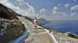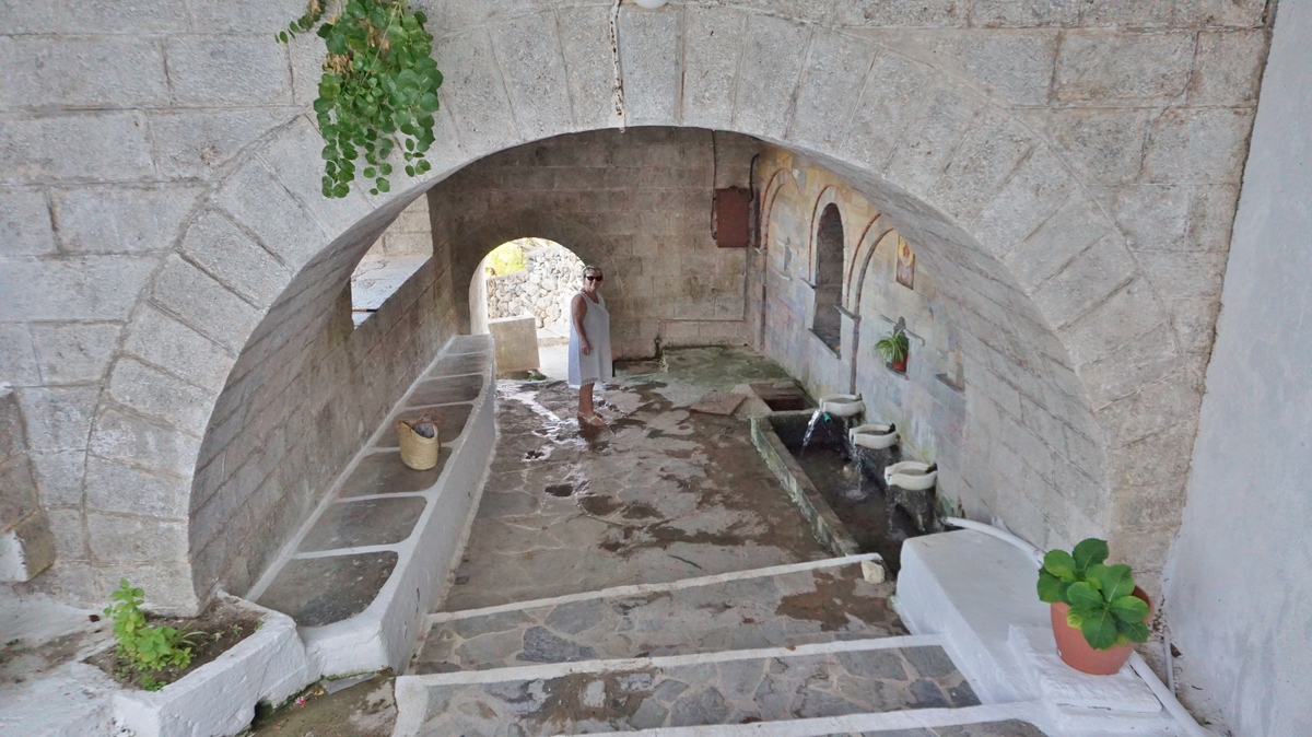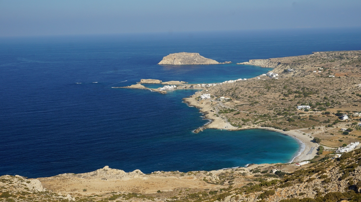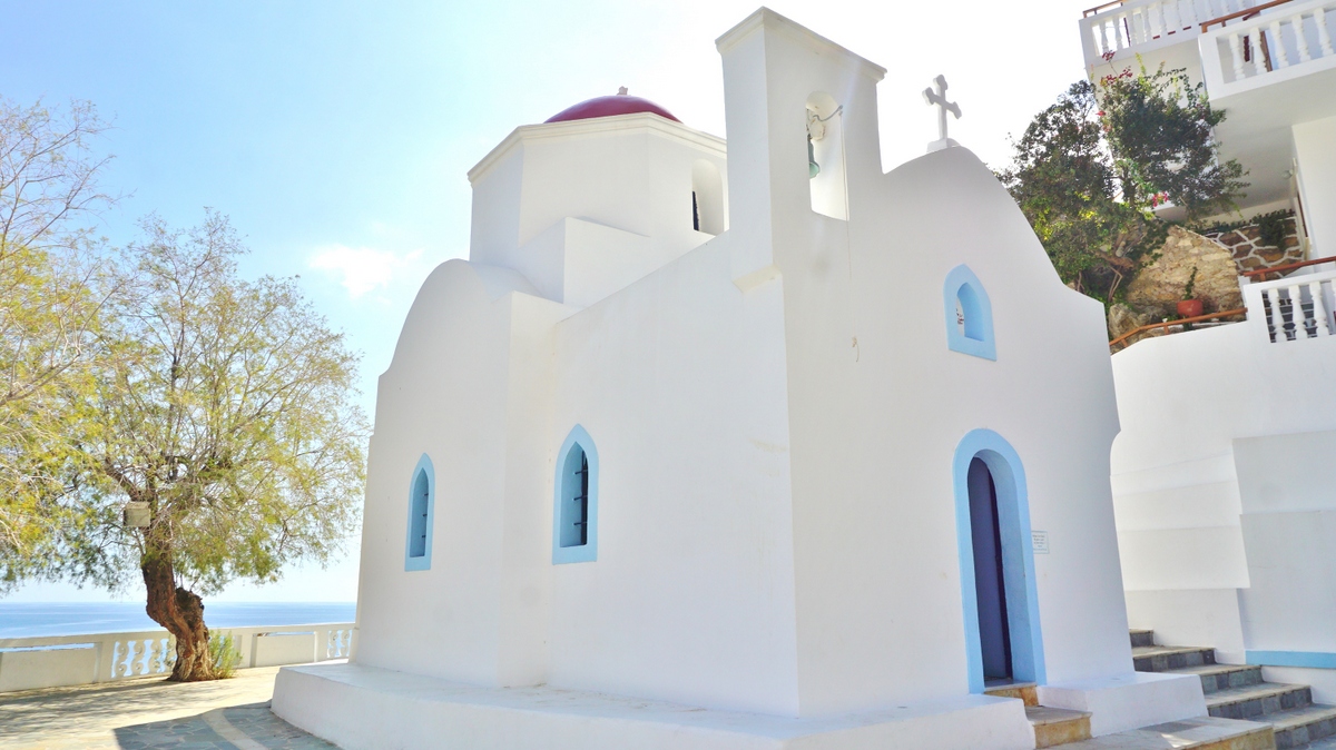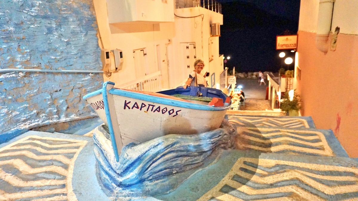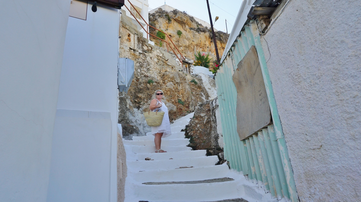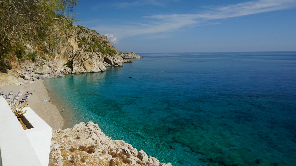 | Natürlich beginnt der Tag mit dem von uns so geliebten Frühstück auf der Panoramaterrasse. Die Morgensonne taucht die Bucht von Amoopi in ein goldgelbes Licht und eine solche Kulisse ist einfach nur wunderbar. Dann brechen wir auf und fahren mit dem Mietwagen via Pigadia, Aperi, Volada, Othos und Pyles hinüber zur Westküste. Als wir von den Bergdörfern kommend wieder zur Küste hinunterfahren, sehen wir am Horizont die kleinere Nachbarinsel Kasos deutlich und klar vor uns liegen. Bevor wir Lefkos passieren, machen wir nochmals einen Abstecher und einen unberührten Strand bei Adia, welchen wir am Freitag bei Regen schon einmal kurz besuchtet hatten. Heute schaut bei Sonnenschein die Szenerie ungleich schöner aus und wir bummeln kurz am Strand entlang. Nach kurzer Weiterfahrt erreichen wir dann das Bergdorf Mesochori, wo wir einen längeren Stopp einlegen. Das Auto muss man oberhalb des Dorfes parken, da im Ort ausschließlich enge Treppenwege zu finden sind, wo man nur per Pedes vorankommt. Im Gewirr der engen Gassen kann man sich kaum orientieren, doch dann stehen wir vor einem Aussichtspunkt, von dem man einen tollen Blick auf die wilde Westküste von Karpathos hat. Nun sehen wir von hier auch die markante Kirche, welche wir als nächstes ansteuern. Die Kirche besteht neben dem Hauptgebäude noch aus einem typischen Glockenturm und als Besonderheit befindet sich unterhalb des Kirchengebäudes noch ein Brunnenhaus mit drei sprudelnden Quellen. Entlang der verwinkelten Gassen laufen wir zum Auto zurück und fahren weiter am Fuße des Kali Limni, des mit 1.215m höchsten Berg der Insel Karpathos. Damit hat er exakt die gleiche Höhe wie der Fichtelberg im heimatlichen Erzgebirge, doch mit Sicherheit liegt hier deutlich weniger Schnee ;-). Wir passieren Spoa und fahren eine enge aber gut ausgebaute Serpentinenstraße hinunter zur Ostküste nach Agios Nikolaos. Dieser kleine Weiler mit dem Minihafen strahlt eine wunderbare Ruhe aus und wir lassen uns von der relaxten Stimmung treiben. Nachdem wir auch hier eine Runde gedreht haben, fahren wir wieder hinauf nach Spoa und biegen in Richtung Olympos nach Norden ab. Nach ca. 12 Kilometern biegt eine Schotterpiste hinunter zum Agios Minas Beach mit der gleichnamigen kleinen Kapelle ab. Nach einem knappen Kilometer müssen wir das Abenteuer leider abbrechen, da unser normaler Pkw leider für das Gelände nicht geeignet ist. Nachdem wir mühevoll auf der engen Piste gewendet hatten, bleiben wir auf einem besonders steilen Teilstück hängen und nur durch Schieben und besonders gefühlvoller Kupplungsarbeit gelingt es uns, diese Stelle zu überwinden und wieder zur Hauptstraße nach oben zu gelangen. So entschließen wir uns, nochmals zum Apella-Strand zu fahren. Dort verbringen wir dann den Nachmittag am dortigen Strand mit Schnorcheln und Sonnenbaden. Dann geht es zurück nach Amoopi, doch bevor wir zum Abendessen fahren, nutzen wir die Abendstimmung zu einem Abstecher zum Kastelia Beach, wo wir noch eine Runde schnorcheln. Dann fahren wir nur wenige Meter weiter, um im "Four Seasons" zu Abend zu essen. Dann erreichen wir unser Quartier, wo wir den Tag auf der Terrasse ausklingen lassen. | |