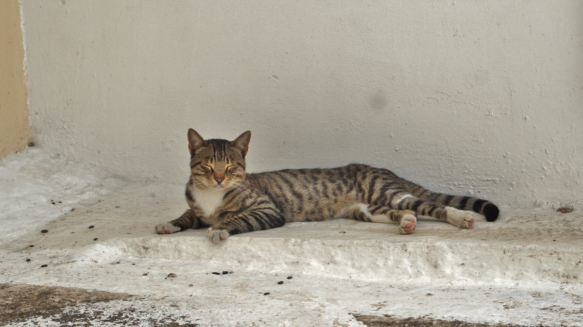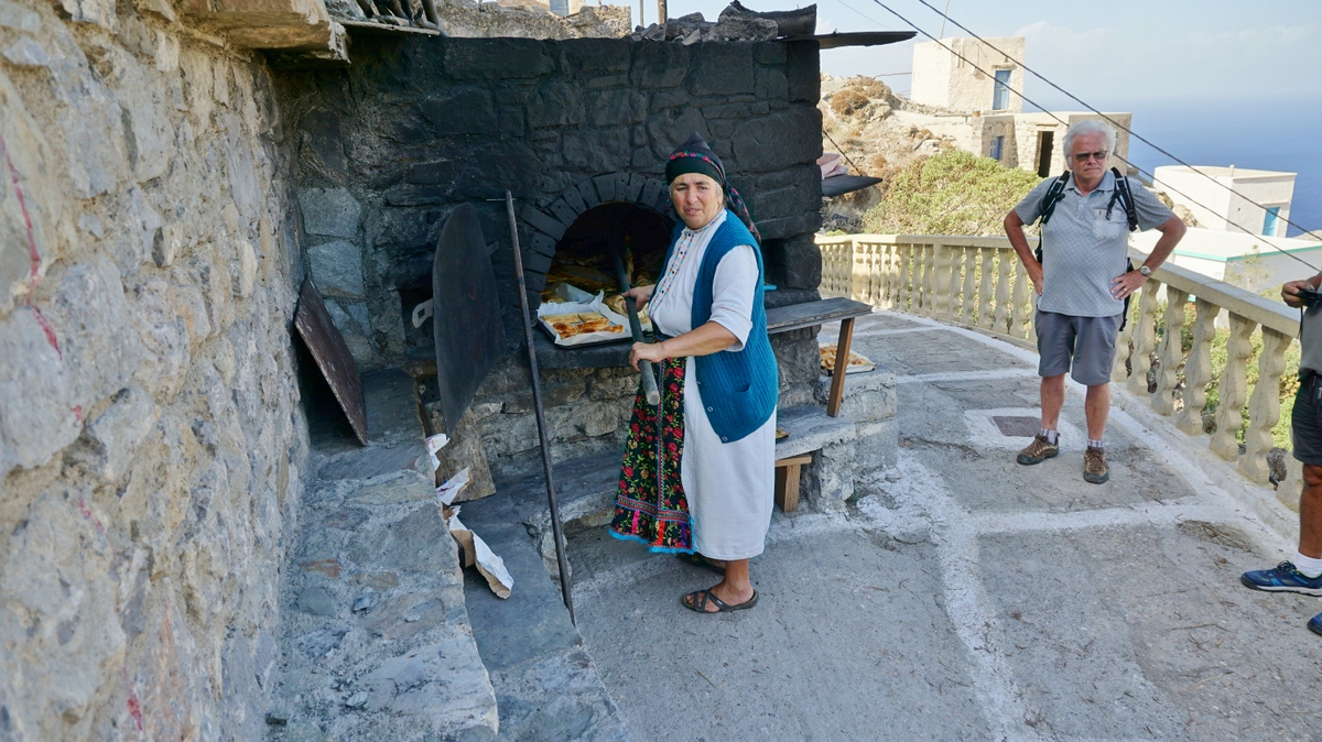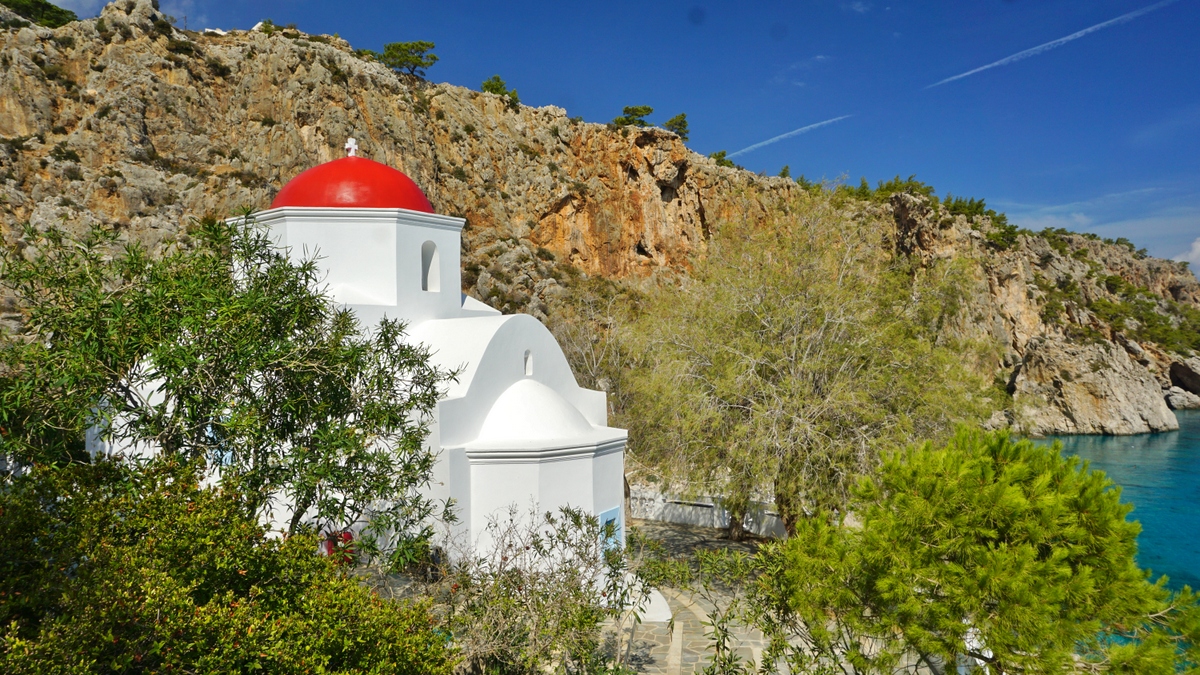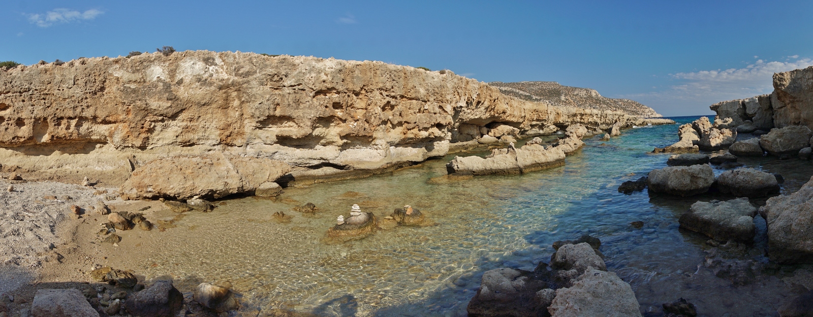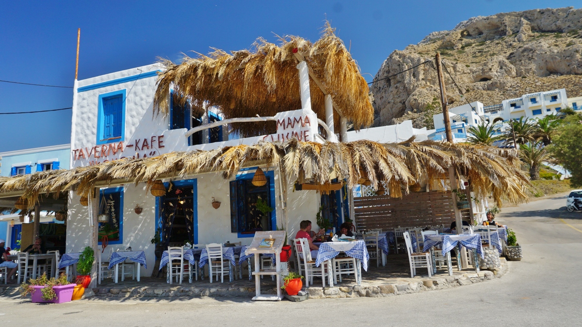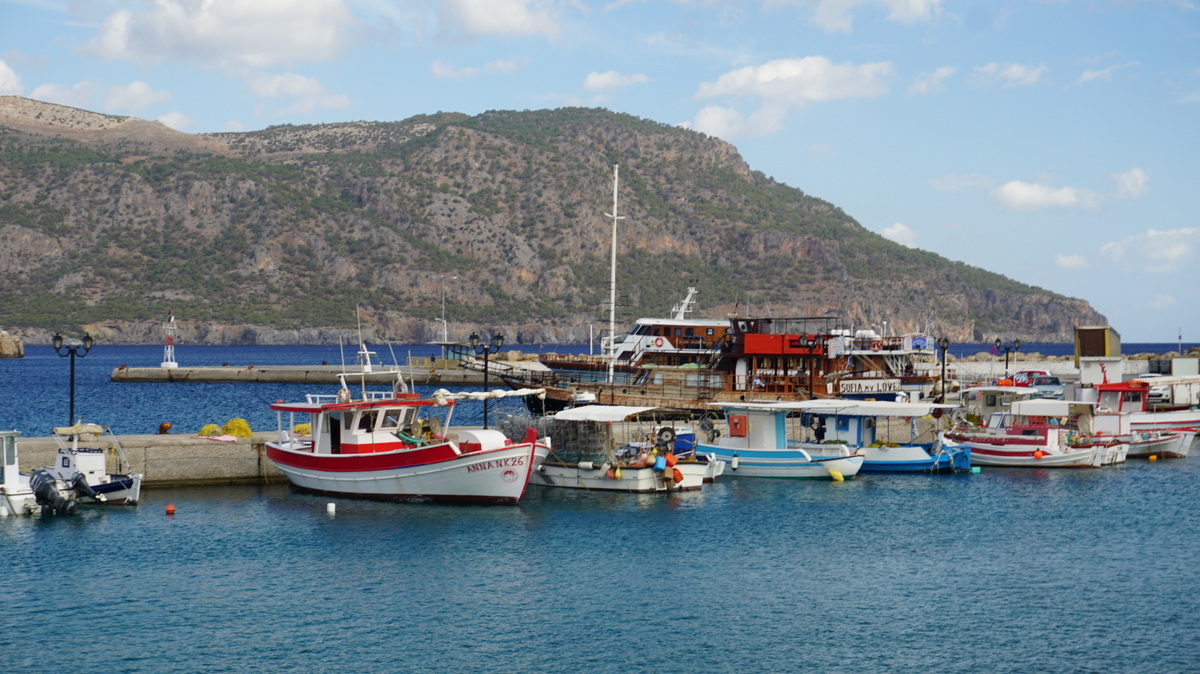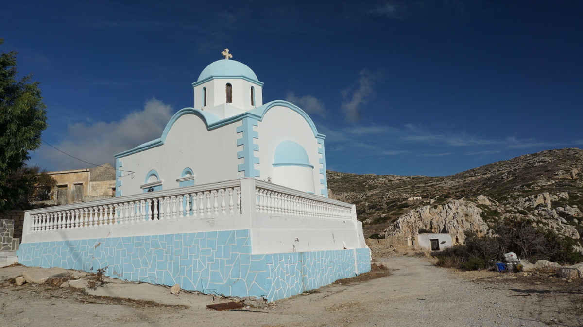 | Mit dem Sonnenaufgang kurz nach 07:15 Uhr sitzen wir auf unserer Terrasse zum Frühstück und erleben auch heute eine himmlische Ruhe. Nach einem ausgedehnten Frühstück starten wir dann via Pigadia, dem Hauptort der Insel, entlang der Ostküste in Richtung Inselnorden. Vorbei an Apéri fahren wir auf engen Straßen in Richtung Spoa. Ein paar Kilometer hinter Apéri zweigt eine asphaltierte Piste hinunter zu einem der Postkartenmotive der Insel - der Kyra Panagia - ab. Nach vielen Serpentinen erreichen wir den Strand mit der kleinen Kapelle. Hier sind wir die ersten Tagesbesucher und so können wir in aller Ruhe die schneeweiße Kapelle mit der markanten roten Kuppel besichtigen. Die Kyra Panagia liegt auf einem kleinen Felsvorsprung oberhalb der Bucht, so dass wir von hier oben einen tollen Blick hinunter zum Strand mit dem türkisblauen Wasser haben. Ein paar Fotos später geht es dann wieder hinauf zum Inselhighway, auf dem wir einige Zeit später Spoa erreichen. Hier endete noch vor wenigen Jahren die Asphaltstraße. Auch unser Navi hat diese noch als unbefestigte Piste und wollte uns daher per Fährschiff von Pigadia nach Diafani schicken. Wir fahren weiter in den nördlichsten Zipfel von Karpathos und sehen bald die Häuser von Olympos an dem steilen Berghang "kleben". Am Ortseingang finden wir auf Anhieb einen Parkplatz und schlendern dann durch die engen Gassen des Bergdorfes. Hier ist man schon sehr auf die Tagestouristen eingestellt und so finden sich entlang der Hauptgasse unzählige Souvenirshops und Tavernen. Wir sind aber positiv überrascht, dass hier kaum Leute unterwegs sind und wir selbst hier in aller Ruhe durch die Gassen bummeln können - der Nachsaison sei Dank. In der traditionellen Bäckerei, deren Holzofen sich mitten auf dem Weg befindet, erstehen wir u.a. leckere Feta-Taschen, welche gerade aus dem Ofen genommen werden und noch ordentlich heiß sind. Vorbei an alten Windmühlen geht es dann zurück zum Auto. Nächstes Etappenziel ist dann Diafani, ein Küstenort mit Hafen, wo auch die großen Fähren aus Rhodos anlegen. Während in den Bergen ein paar wenige Wolken ziehen, ist es hier direkt an der Küste sehr warm. Nach einem Bummel durch den kleinen Ort fahren wir dann wieder hinauf nach Olympos und weiter retour in Richtung Inselhauptstadt. Ein Paar Kilometer vor Apéri biegen wir dann in eine Stichstraße ab, welche uns in vielen engen Serpentinen hinunter zu einem der Traumstrände der Insel - dem Àpella-Strand - bringt. Das Wasser ist hier glockenklar und türkisblau, so dass wir unsere Schnorchelausrüstung auspacken. Leider gibt es hier nur wenige Fische zu bestaunen, doch das blaue Wasser und die Felsenwelt unter der Oberfläche begeistern uns schon sehr. Auch die Szenerie über Wasser ist wirklich toll. Diese tolle Natur müssen wir uns nur mit wenigen Tagestouristen teilen, was sicher in der Hauptsaison anders ist. Den Nachmittag verbringen wir hier bei bestem Wetter und fahren dann wieder hinauf zur Hauptstraße. Via Pigadia geht es dann zurück nach Amoopi, wo wir in der Taverna "Calypso" zu Abend essen. | |