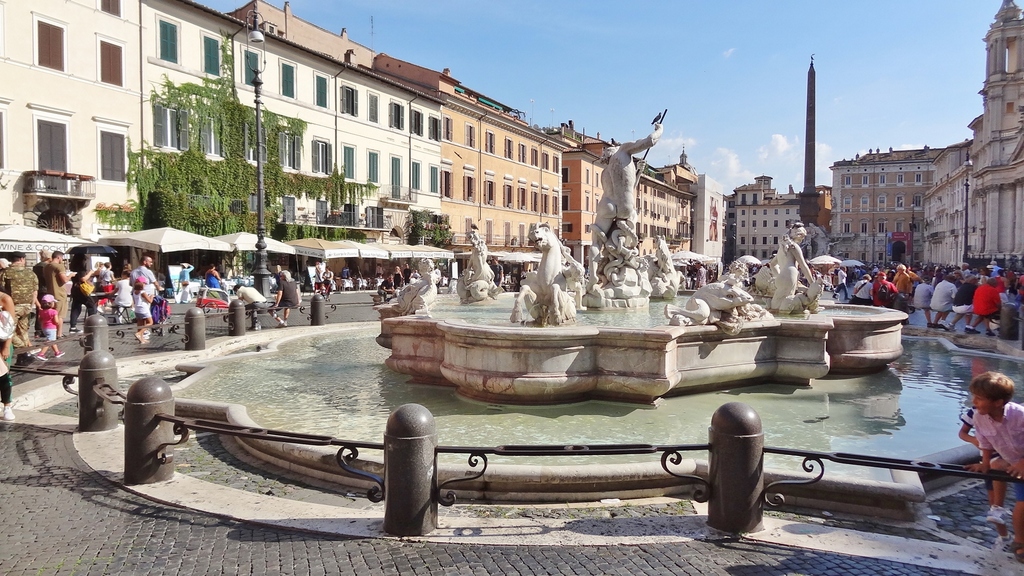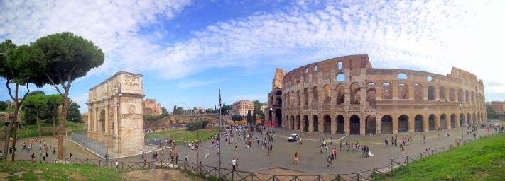 welche direkt zwischen Vatikan und Engelsburg liegen, erreichen. In Rom stehen dann die Standardattraktionen auf unserem Programm. Während wir am Ankunftstag noch durchs Centro Storico schlendern (Castel Sant' Angelo (Engelsburg), Pantheon, Fontana di Trevi, Piazza Navona, Spagna), zieht es uns am Sonntag zum Colosseum und weiter über das Forum Romanum zum Kapitol. Vorbei am Marcellus-Theater geht es auf die andere Seite des Tiber nach Trastévere. Nach dem Bummel durch das "andere" Rom wechseln wir wieder auf die andere Flussseite hinüber. Über die Piazza Farnese und den Campo de Fiori geht es dann zurück ins Quartier. Am Abend machen wir noch einen kurzen Abstecher zum Petersplatz, welcher in der abendlichen blauen Stunde mit der Illumination besonders reizvoll ist. Bevor wir am Montag zurück fliegen, zieht es uns in den Vatikan, um den Peterdom zu besichtigen. An unserem letzten Morgen unternehmen wir noch einen Bummel durch die Villa Borghese, genießen die Aussicht vom Pincio und schlendern über die Piazza del Popolo. Bevor es zurück zum Flughafen geht, entspannen wir dann noch kurz auf unserer Dachterrasse, von der wir einen tollen Blick auf die imposante Kuppel von San Pietro haben. |