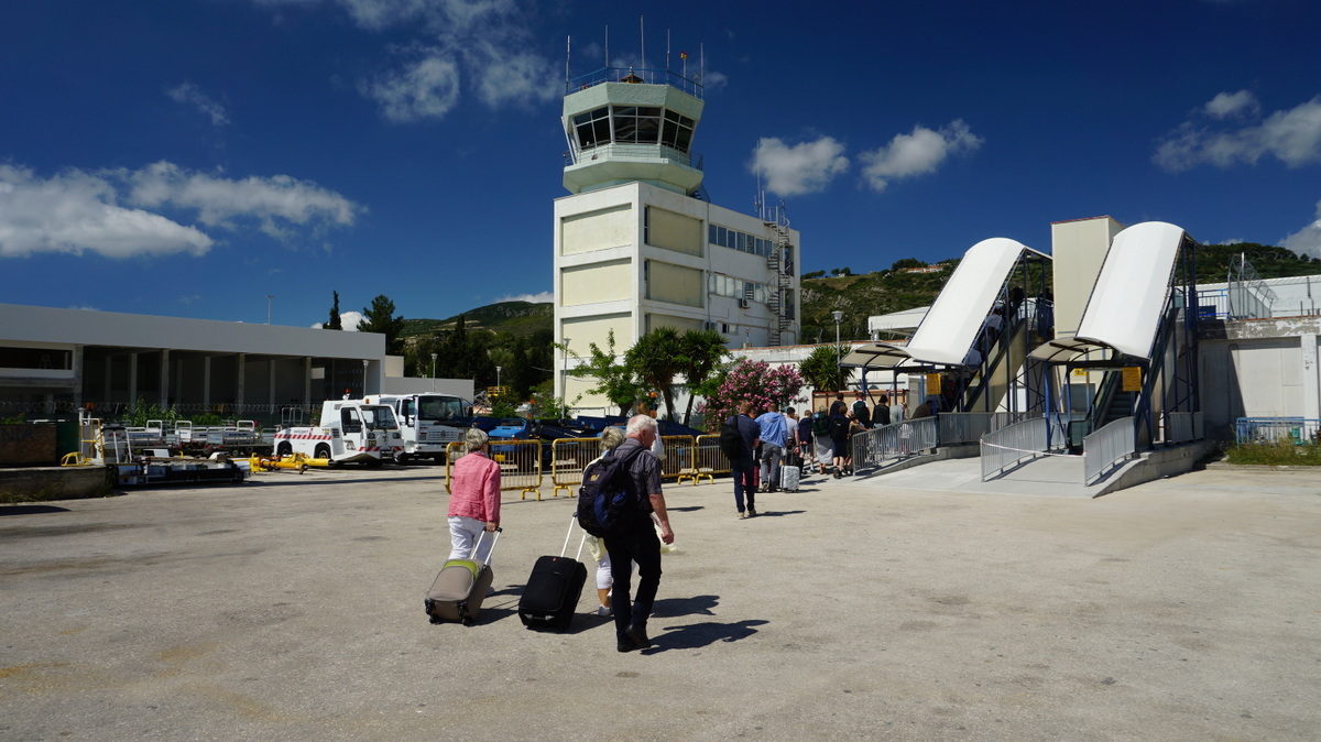| Zu früher Stunde klingelt der Wecker und wir machen uns auf den Weg nach Berlin. Bei Mc Parking parken wir unser Auto und werden die wenigen Meter hinüber zum Airport "geshuttelt". Am Terminal C herrscht wie immer das Chaos und so heißt es wie immer Schlange stehen, um die Koffer loszuwerden. Das gleiche Procedere erleben wir dann nochmals an der Sicherheitskontrolle. Die easyJet bringt uns dann pünktlich auf die Insel. Nachdem wir die italienische Stiefelspitze überquert haben, landen wir überpünktlich auf dem kleinen Flughafen von Kefalonia. Schnell ist der Mietwagen übernommen und wir fahren in ca. 20 Minuten zu unserem Quartier, dem Ideales Resort. Nach einer kurzen Runde durch das Areal machen wir uns wieder auf den Weg, um ein paar erste Einkäufe zu erledigen. Auf dem Rückweg fahren wir dann hinunter zum Trapezaki Beach und der dortigen Taverna Denis. Gegenüber sehen wir bereits eines unserer nächsten Ziele - die Insel Zakynthos. Im Licht der untergehenden Sonne essen wir dort sehr lecker zu Abend. Dann fahren wir die paar Kilometer zurück hinauf zu unserer Unterkunft. Da es ein langer Tag war, lassen wir diesen bei einem kühlen Mythos-Bier und einem Glas Rotwein ausklingen. | |