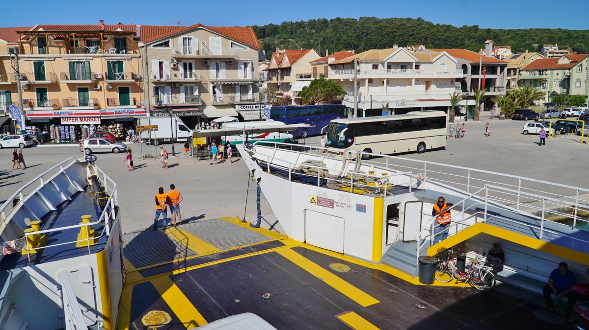 | Natürlich zieht es uns auch heute zum Morgenschwimmen in unseren Pool. Nach dem Frühstück fahren wir nach Argostóli, wo wir uns an der Waterfront in die kurze Warteschlange der Autos einreihen, welche mit der Fähre hinüber zur Paliki-Halbinsel zum zweitgrößten Ort der Insel - Lixouri - fahren wollen. Gegenüber liegt ein großes Kreuzfahrtschiff am Terminal. Unsere Fähre ist deutlich kleiner und bringt uns in ca. 30 Minuten Fahrt hinüber nach Lixouri. Bei der Ausfahrt aus der Bucht von Argostóli, sehen wir zwei Karett-Schildkröten, welche sich allerdings der fotografischen Ablichtung schnell entzogen haben. Nachdem wir Lixouri erreicht haben, fahren wir von Bord und parken erst einmal an der Mole und nutzen die Zeit, für einen kurzen Spaziergang durch den ruhigen Ort. Dann fahren wir weiter in südlicher Richtung zu einem der meistbesuchten Strände der Insel - dem Xi Beach. Hier finden wir dunkelgelben Sand vor toller Felskulisse. Trotz der landschaftlich sehenswerten Erscheinung ist es nicht wirklich unser Strand, da hier schon viele Liegen und Sonnenschirme den Strand "zieren". So fahren wir weiter zum Lagadakia Beach. Den erreichen wir erst nach mehreren Versuchen. Hier sind wir fast allein und wir nutzen die Gelegenheit, um uns im klaren, türkisblauen Wasser zu erfrischen. Nach dem Badestopp fahren wir weiter auf engen Straßen durch die einsame Paliki Halbinsel. An der Westküste sehen wir unter uns das Kloster Moni Iperagias Theotokou Kipoureon. Als wir dieses kurze Zeit später erreichen müssen wir leider sehen, dass es verschlossen und aktuell nicht zugänglich ist. So fahren wir weiter auf engen Pisten zu unserem Top Strand auf Kefalonia, wo wir schon einige male in den letzten Tagen gebadet haben - dem Petani Beach. Unten angekommen finden wir wir immer eine ruhige Ecke und verbringen den Rest des Nachmittages in unserem kleinen Paradies. Dann brechen wir auf und fahren zurück via Argostóli und weiter zum Trapezaki Beach, wo wir, wie bereits am ersten Tag, in der Taverna "Denis" lecker zu Abend essen. Auf der Fahrt zur Taverne haben wir zuvor noch einen kurzen Fotostopp am Nachbarstrand Agios Thomas gemacht. | |