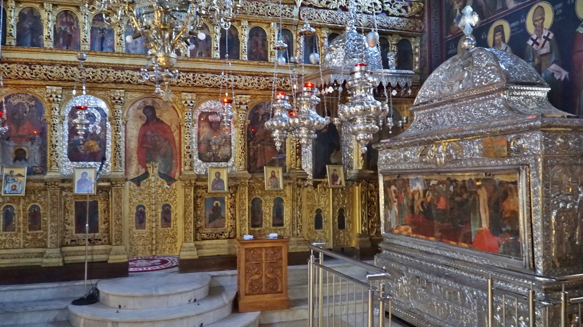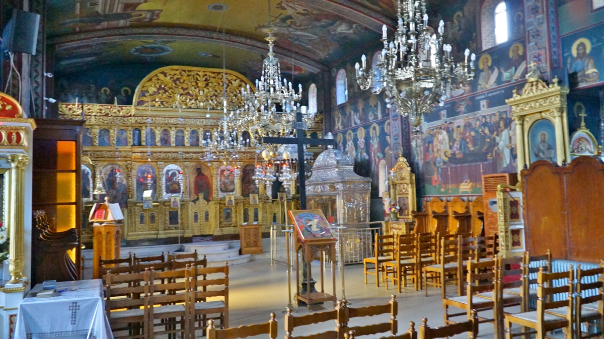 | Am Morgen werden wir durch ergiebigen Regen und strammen Wind geweckt. Das ist nicht wirklich das Urlaubswetter, welches wir uns vorgestellt haben. So findet das Frühstück heute zwangsläufig im Haus statt. Glücklicherweise hört der Regen auf und so entschließen wir uns zu einem Besuch des größten Klosters der Insel Agiou Gerasimou. Die Fahrt führt uns am Rand der Inselhauptstadt Argostóli vorbei in Richtung Sámi. Dann biegen wir von der Hauptstraße ab und erreichen nach wenigen Kilometern das in einem Hochtal gelegene Kloster. Am markantesten ist die große, leider verschlossene Kirche des Klosters, welche nach dem großen Erdbeben von 1953 komplett neu errichtet wurde. Wir besuchen hingegen den kleineren alten Teil. Durch ein altes Glockenportal erreichen wir den Innenhof und besichtigen das reichlich mit Gold verzierte Kloster. Nach unserer Besichtigungsrunde fahren wir nur ein kurzes Stück weiter zur Wein Cooperative, wo der bekannteste Inselwein, der Robola, gekeltert wird. Auch hier können wir die Winery besichtigen und die Kessel und die Abfüllanlage und am Ende die kleine Bodega besichtigen. Nachdem wir ein paar Flaschen lokalen Wein erstanden haben, fahren wir wieder hinunter nach Argostóli. An der Hafenmole suchen wir lange nach einem der raren Parkplätze, welchen wir dann im Zentrum am Valianou-Platz finden. Dann bummeln wir durch die Hauptstadt, zuerst entlang der Hafenmeile und später wechseln wir in die Fußgängerzone, wo es unzählige Geschäfte gibt. Nach unserem Bummel fahren wir weiter zu den Stränden des Südens. Am Paralia Ammos machen wir nur einen kurzen Fotostopp, da es hier sehr windig ist. So fahren wir weiter zum unweit gelegenen Paralia Avithos. Hier verbringen wir den Nachmittag bei angenehmen Sonnenschein. Dann wechseln wir in die Taverna Enetiko, wo wir lecker essen. Den Rest des Tages chillen wir in unserem Quartier Ideales Resort. | |