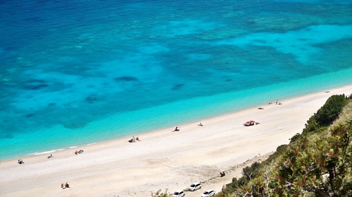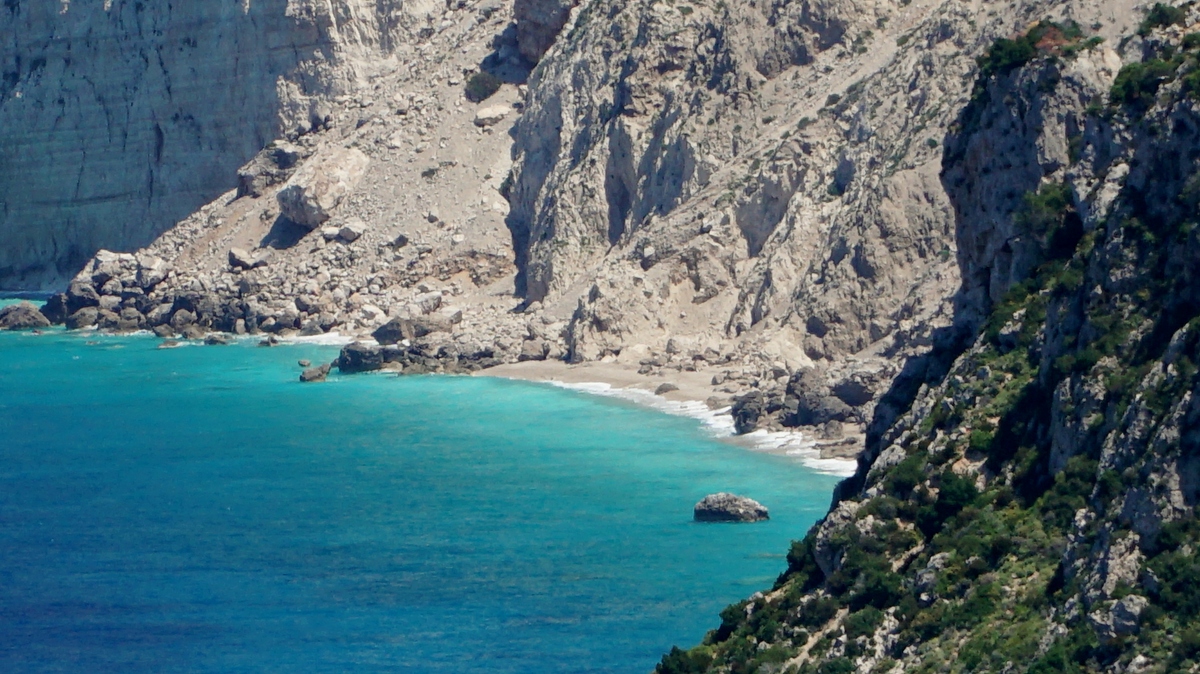 wir zum Kanali Beach ein, welcher tief unten liegt. Dahin führt
