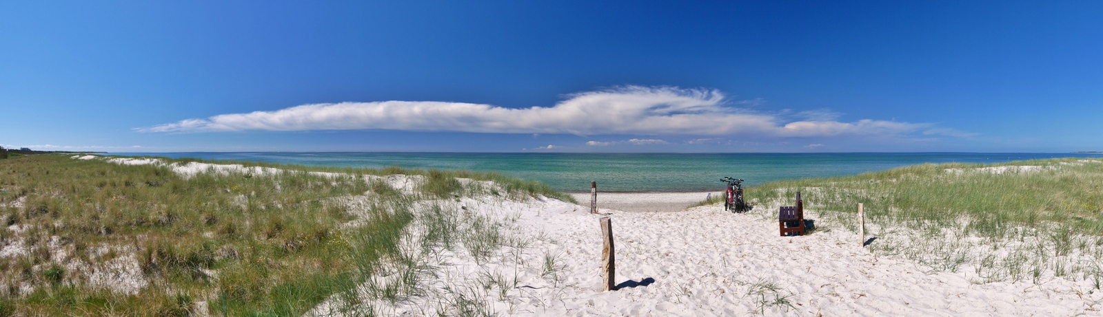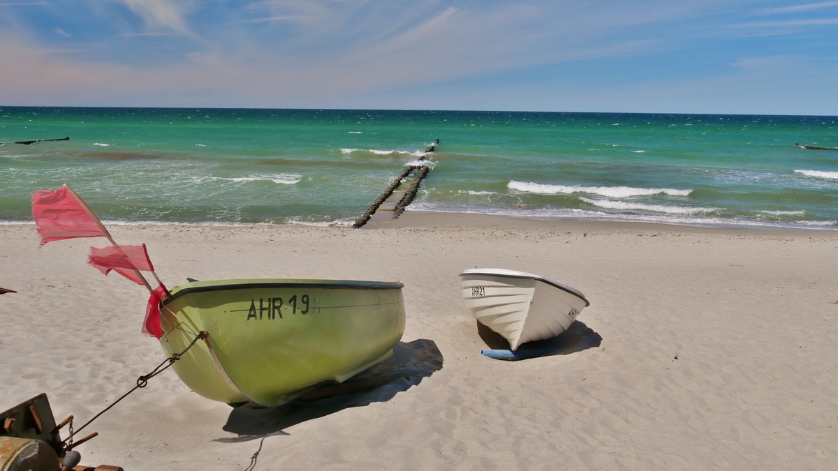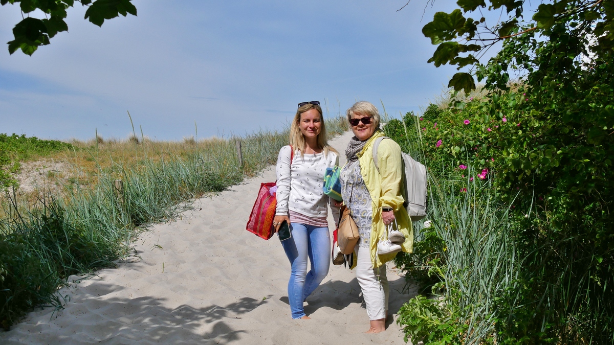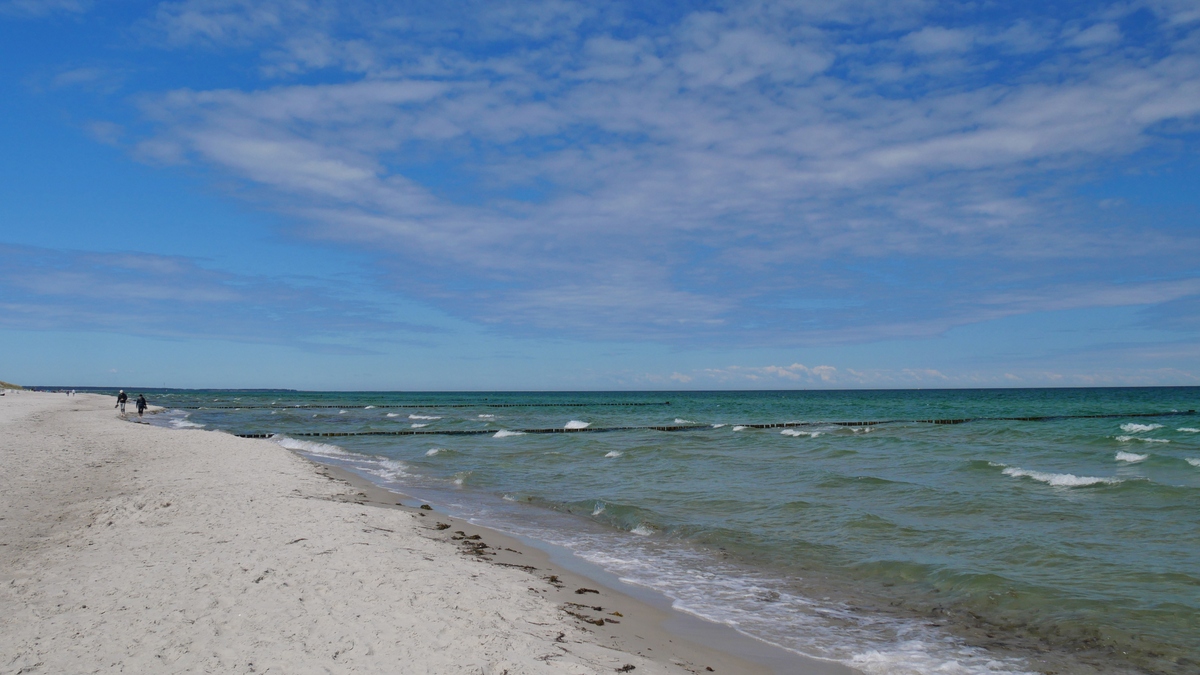 | Glücklicherweise hat der heftige Wind heute nachgelassen und schon am Morgen lacht die Sonne. Nachdem ich nach ewigen Anstehen beim lokalen Bäcker die Frühstücksbrötchen erstanden habe, genießen wir das Frühstück heute wieder outdoor auf der Terrasse. Dann starten Jenny und Rafa wieder zurück nach Berlin und wir machen uns auf den Weg an den Strand bei Dierhagen, wo wir den Tag bei herrlichem Wetter verbringen. Mehrmals springen wir in die mit 14°C Wassertemperatur noch recht frische Ostsee. Am Nachmittag bummeln wir dann noch ein kurzes Stück am Strand entlang und vorbei am Strandhotel Fischland geht es durch den Dünenwald zurück zu Auto und dann weiter retour in unser Ferienhaus nach Born. | |