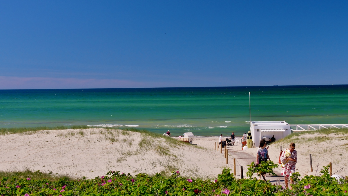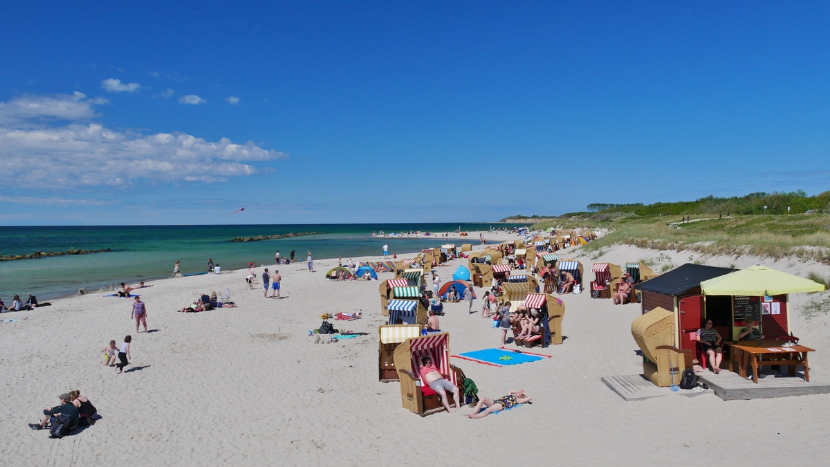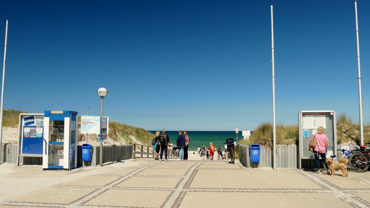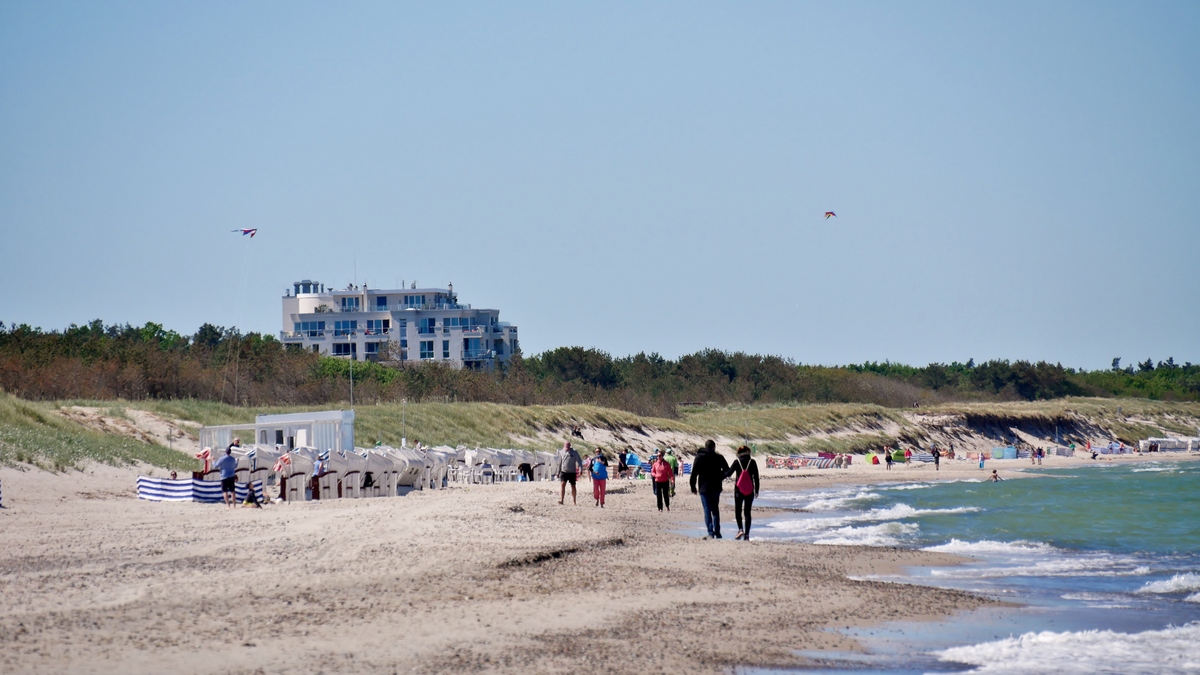 | Glücklicherweise hat der heftige Wind heute nachgelassen und schon am Morgen lacht die Sonne. Nachdem ich nach ewigen Anstehen beim lokalen Bäcker die Frühstücksbrötchen erstanden habe, genießen wir das Frühstück heute wieder outdoor auf der Terrasse. Dann starten Jenny und Rafa wieder zurück nach Berlin und wir machen uns auf den Weg an den Strand bei Dierhagen, wo wir den Tag bei herrlichem Wetter verbringen. Mehrmals springen wir in die mit 14°C Wassertemperatur noch recht frische Ostsee. Am Nachmittag bummeln wir dann noch ein kurzes Stück am Strand entlang und vorbei am Strandhotel Fischland geht es durch den Dünenwald zurück zu Auto und dann weiter retour in unser Ferienhaus nach Born. | |