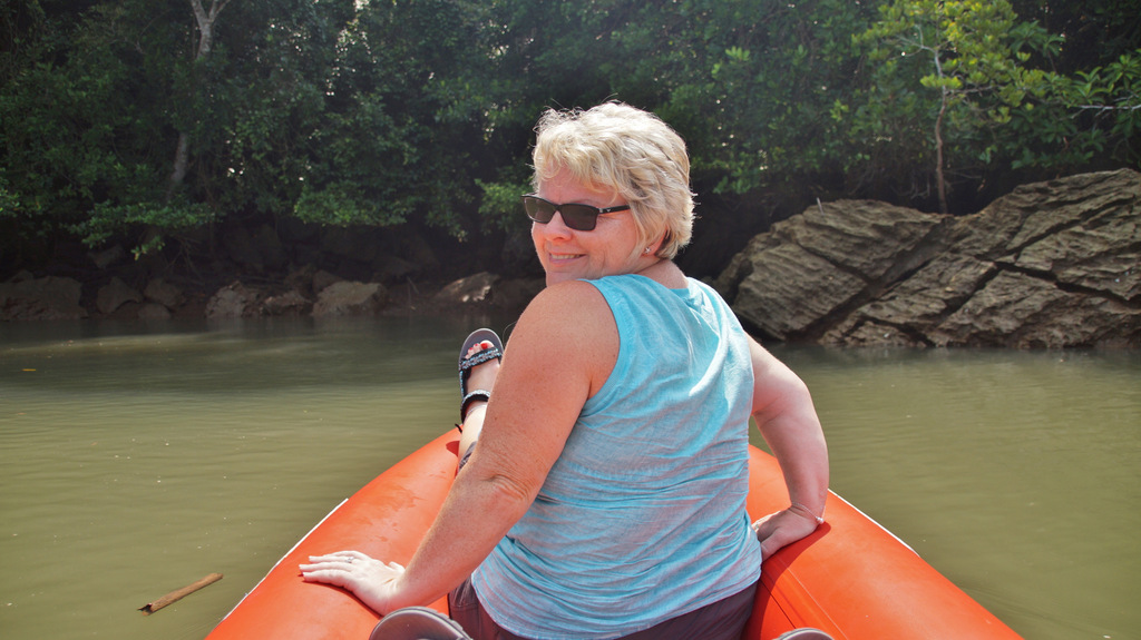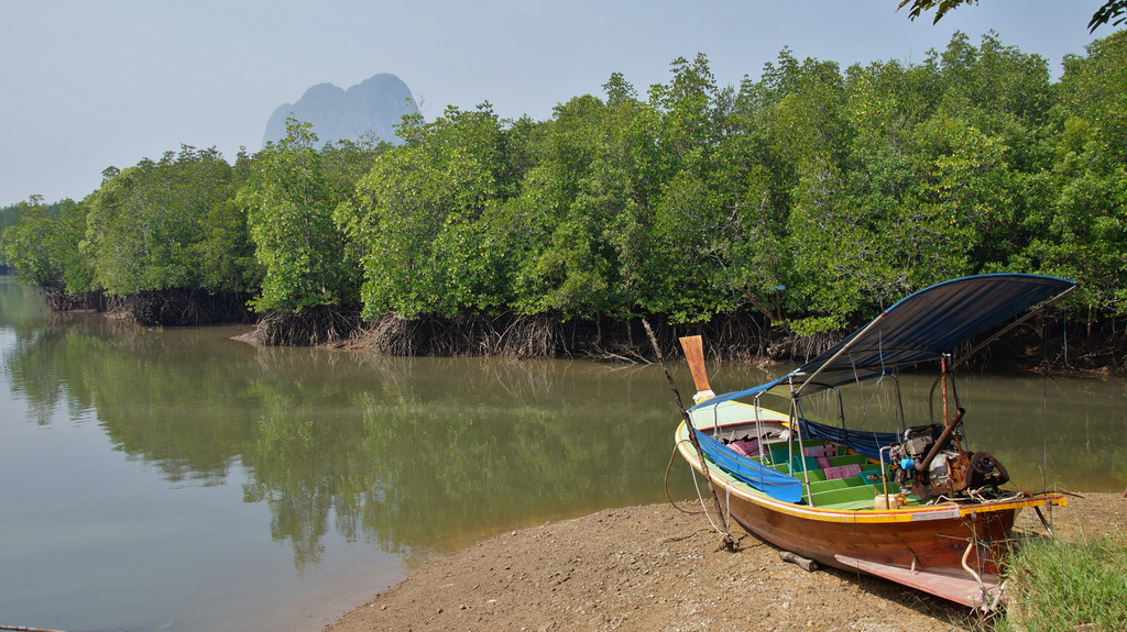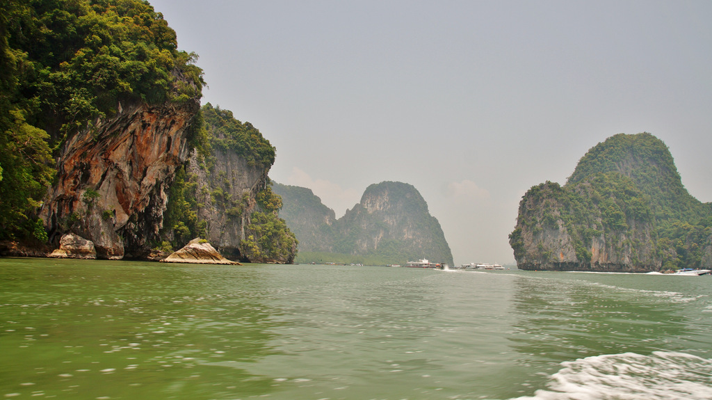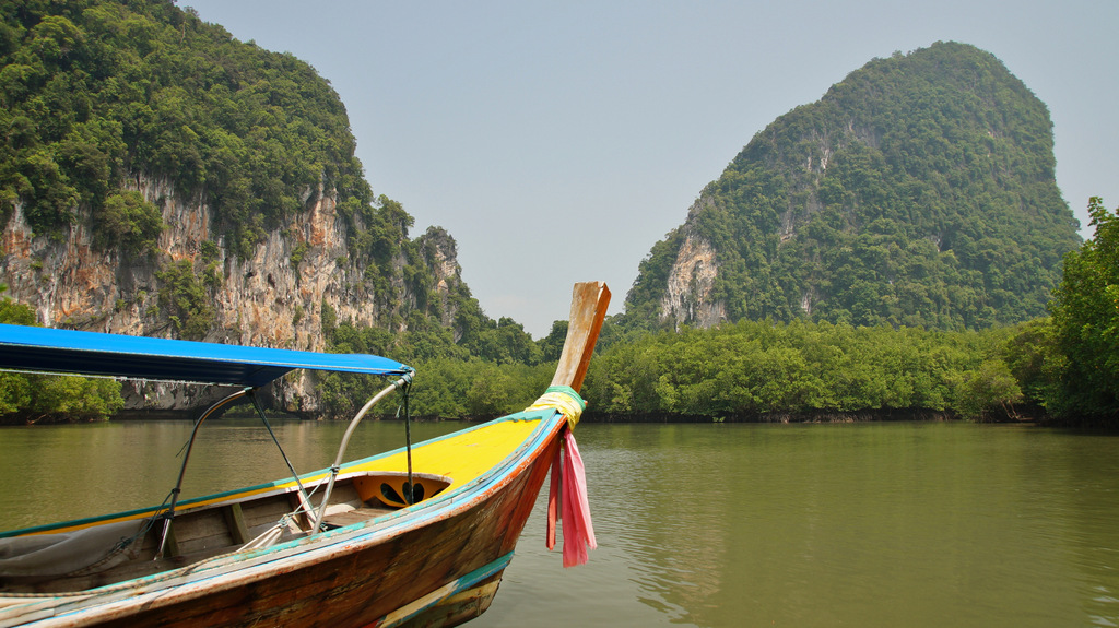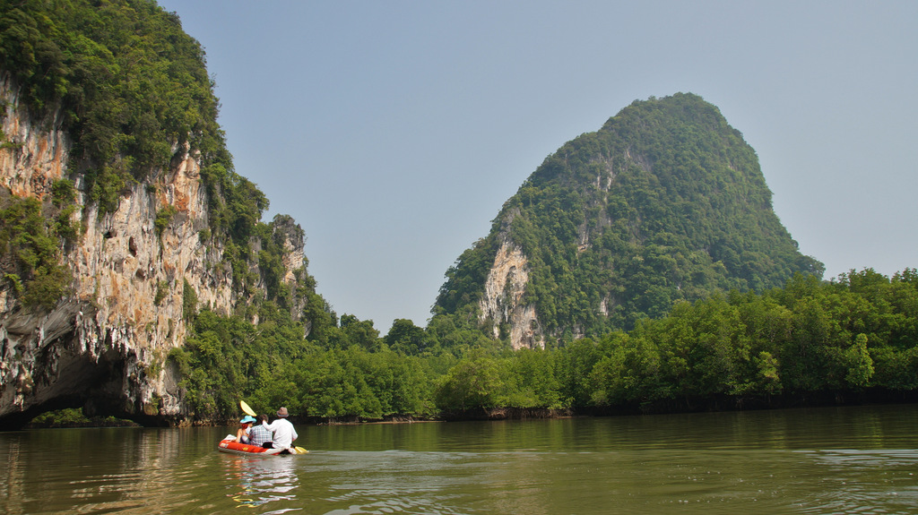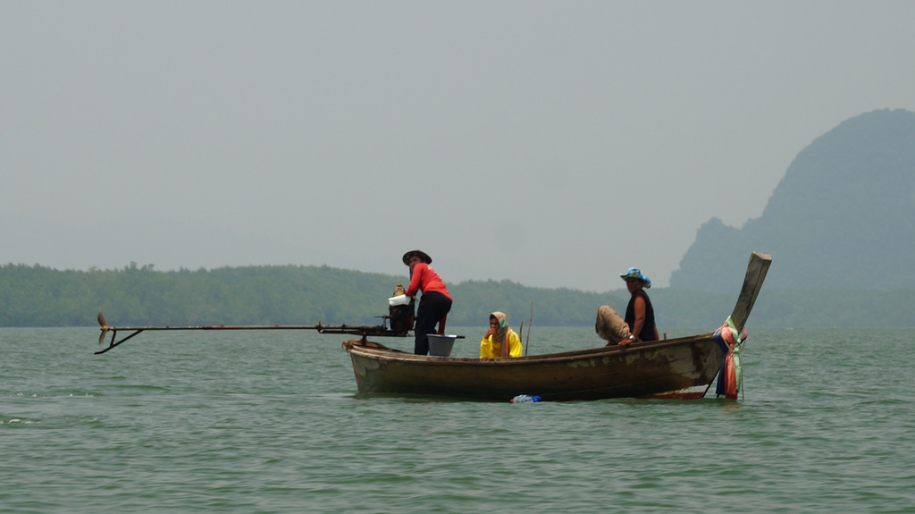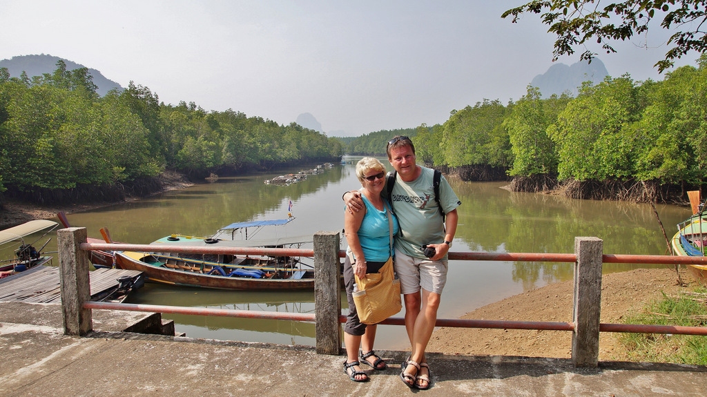| Heute steht wieder ein Ausflug an. Den haben wir bereits am Donnerstag beim Straugbinger, einem deutschen ausgewanderten Tourenanbieter, gebucht. So klingelt heute unser Wecker bereits um 06:30 Uhr, so dass wir immer noch in Ruhe unser Frühstück genießen können. Sehr pünktlich um kurz vor 08:00 Uhr kommt der Minibus zum Hotel und wir fahren über den Highway Nr.4 zuerst Richtung Phuket, um dann in Richtung Phang Nga abzubiegen. Nachdem wir die Provinzhauptstadt passiert haben fahren wir kurze Zeit später zu einem kleine Hafen. Das letzte Stück dahin müssen wir wegen Straßenbauarbeiten nicht mit dem klimatisierten Minibus zurücklegen sondern auf einen PickUp umsteigen. Am Hafen steigen wir in unser Longtail-Boot um und fahren durch Mangrovenwälder vor imposanter Felskulisse zu einer kleinen Kanustation. Hier wechseln wir abermals das Gefährt und setzen die Fahrt in einem kleinen Kanu fort. Glücklicherweise werden wir gepaddelt und können uns so auf die herrliche Landschaft und die beeindruckende Tierwelt konzentrieren. Unter einer Felsgrotte hindurch biegen wir zu engen Flussarmen ab, welche von üppigen Mangroven gesäumt sind. Diese haben wir bereits auf den Seychellen und auf Mauritius erlebt aber nicht in solch einer Dichte wie hier. Am Rande der Mangroven tummeln sich Schlammspringer und diverse Krebse. Nach unserer Kanupartie steigen wir wieder in unser Longtail-Boot um und fahren durch die Flussarme weiter durch ein Flussdelta. In den Mangroven sehen wir vom Boot aus auch Affen (Makaken) in freier Wildbahn. Dann passieren wir das muslimische Seezigeunerdorf, wohin wir später noch einmal zurückkehren werden. Als nächste Etappe steht dann das Highlight unserer heutigen Tour an, der James Bond-Felsen. Dieser gab die Filmkulisse für die Folge "Der Mann mit dem goldenen Colt". Je näher man dem Kalksteinfelsen kommt, desto höher wird die Bootsdichte. In diesem Bereich gibt es viele sogenannter Hongs (Kalksteinfelsen), welche bizarr aus dem Wasser ragen. Der James Bond-Felsen kommt dann in Sicht und wir waren dann doch überrascht, dass dieser nur eine bescheidene Größe hat. Da man hier nicht allein ist und wir nicht mit unzähligen anderen Touristen (meist Chinesen) auf der Miniinsel sein wollen, fahren wir mit dem Boot um die Insel herum, was sich als sehr sinnvoll erweist. So können wir die tolle Perspektive auf die Felsen der Umgebung vom Wasser aus erleben. Schade ist nur, dass auch heute die Luft sehr diesig ist. Das liegt hauptsächlich an der hohen Luftfeuchtigkeit, welche im Moment herrscht. Zum anderen berichtet uns unser Guide Chai, dass gegenüber im nahe gelegenen Indonesien großflächige Waldbrände wüten und die Rauchschwaden auch hier den Himmel trüben. Nach vielen Fotos im Bereich der Hongs geht es dann wieder zurück ins Seezigeunerdorf Koh Panyi. Dieses liegt inmitten der markanten Deltalandschaft vor einem großen Felsen. Schon von weiten sieht man die Moschee mit ihren vergoldeten Türmen. Hier steigen wir dann aus und gehen durch die engen Gängen zwischen den Häusern, welche allesamt auf Pfählen gebaut sind. Hier geht es sehr "rustikal" zu und man hat sich voll auf Touristen eingestellt. So laufen wir auf dem Weg zu unserem Restaurant durch ein Spalier von Verkaufsständen. Dann essen wir in einem Restaurant zu Mittag, um dann wieder mit unserem Boot zurück durch die Mangrovensümpfe zum kleinen Hafen zu fahren, wo wir heute Morgen gestartet sind. Nach kurzer Rückfahrt mit dem PickUp erreichen wir dann wieder unseren Minibus, welcher uns weiter zum Buddhistischen Tempel Wat Suwan Kuh bringt. Hier werden wir von vielen frei lebenden Makaken empfangen, welche an die Touristen gewöhnt sind und ständig von diesen gefüttert werden. Außerdem sind die Affen auf ihre ganz spezielle Weise ziemlich "anhänglich". So muss dann auch der Hut einer unserer Mitreisenden dran glauben, welchen sich ein Affe aneignet und sogleich den Hut hoch oben auf einem Baum sicherstellt. Unser eigentliches Ziel hier ist aber der Buddhistische Tempel Wat Suwan Kuha mit seinem liegenden Buddha. Dieser befindet sich in einer Karsthöhle, welche wir kurz hinter dem "Affentheater" erreichen. Neben vielen Buddhafiguren in der Höhle ist der große liegende Buddha natürlich der Blickfang. Nachdem wir noch zwei kleinere Höhlen im hinteren Bereich besichtigt haben, geht es dann weiter zurück in Richtung Khao Lak. Bevor wir wieder die Schnellstraße erreichen, machen wir noch einen kleinen Abstecher zum Sa Nang Matora National Park. Hier ergießt sich ein Wasserfall über mehrere Kaskaden hinunter ins Tal. Im oberen Bereich ist ein kleiner "Pool", wo sich bereits viele Badelustige abkühlen. Nach diesem kurzen Abstecher geht es dann endgültig zurück nach Khao Lak. Es war heute wirklich ein toller und sehr intensiver Tag. Bevor wir zum Abendessen ins Sassi wechseln, springen wir noch schnell in den Pool. Nach dem Essen müssen wir leider feststellen, dass unsere Klimaanlage den Dienst quittiert hat. Leider hat die Klimaanlage im Nachbarbungalow, welcher uns sofort angeboten wurde, das gleiche Problem, so dass wir heute Nacht wohl ziemlich schwitzen werden. | |