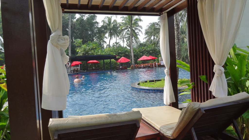 | Nachdem wir gestern den ganzen Tag unterwegs waren, steht heute wieder ein etwas ruhigerer Tag an. Nach dem Frühstück klären wir an der Rezeption zuerst einmal die Thematik mit der Klimaanlage. Wie erwartet, war die vergangene Nacht wegen der fehlenden Kühlung doch recht unangenehm. Da wir nicht den dritten Versuch mit einer Beachfront-Villa machen wollten haben wir uns für die zweite angebotene Alternative, die Pool-Villa entschieden. Nicht nur, dass hier die Klimaanlage bestens funktioniert sondern auch das Ambiente ist hier genial. Pool-Villa bedeutet, dass man seinen privaten kleinen Pool inkl. Liegen, Sitzecke und Außendusche hat. So haben wir nun ein Up-Up-Upgrade und hier lässt es sich sehr gut aushalten. Nach dem kleinen Umzug bummeln wir nochmals kurz zur Mainstreet, um ein paar Einkäufe zu erledigen. Ebenso checken wir noch unseren für morgen geplanten Ausflug in den Khao Sok Nationalpark ab. Des weiteren loten wir die finale Tour für den Freitag nach Phi-Phi-Island aus. Falls das Wetter mitspielt wollen wir vor unserer Heimreise noch diese Traumbucht (Drehort von "The Beach") besuchen, auch wenn man inzwischen nicht nur ausnahmslos positive Dinge von dort liest. Den restlichen Tag verbringen wir dann in unserem kleinen Paradies und hoffen auch für morgen auf gutes Wetter. | |