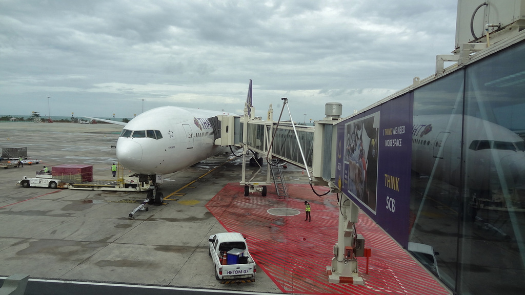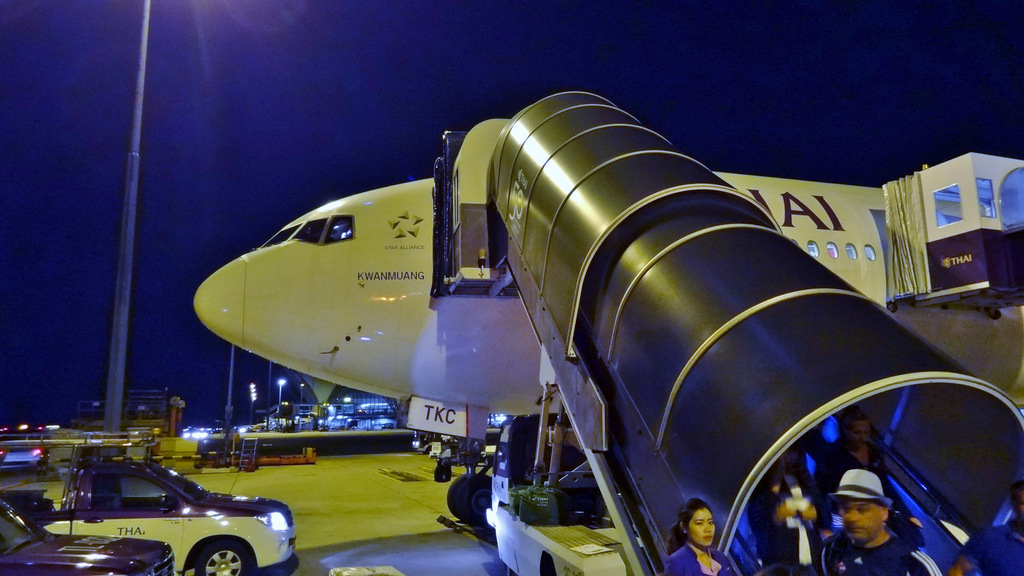 Boeing 777-300 der Thai-Airways in Richtung Bangkok. Von dort geht es