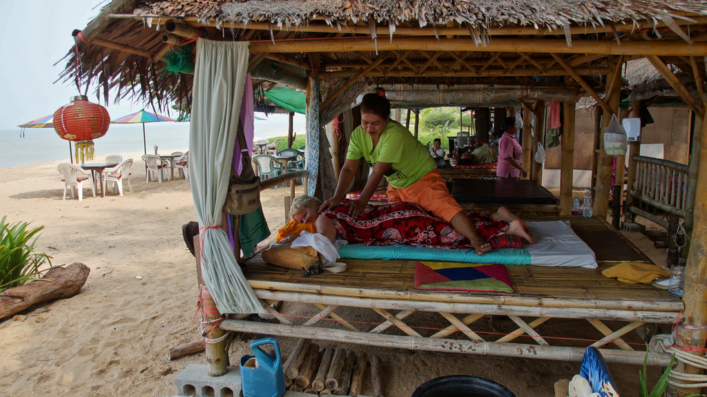 | Den heutigen Tag lassen wir ruhig angehen. Daher wird der heutige Bericht auch etwas kürzer ausfallen. Nach dem obligatorischen Frühstück schlendern wir entlang des Bang Niang-Beaches direkt vor unserer Tür. Unweit von hier mündet ein kleiner Fluss ins Meer an dessen Ufer einige Fischer- bzw. Longtailboote liegen. Der Strand ist an dieser Stelle vergleichsweise breit, hingegen er ein paar 100 Meter weiter fast gänzlich abgetragen ist. Dann nutzt Ines die Gelegenheit, sich in einer der Massagehütten massieren zu lassen. Eine Thai-Massage (1h) schlägt mit 250 Baht (ca. 6,50 EUR) zu Buche, was mehr als preiswert ist. Dann verbringen wir den Großteil des Tages auf unserer Meerblickterrasse und lassen es uns gut gehen. Bevor wir am späten Nachmittag wieder ins Sassi`s gehen, drehen wir noch eine kleine Runde rund ums Hotel. Nach dem wie immer hervorragenden Abendessen lassen wir den Tag auf der Terrasse ausklingen. | |