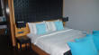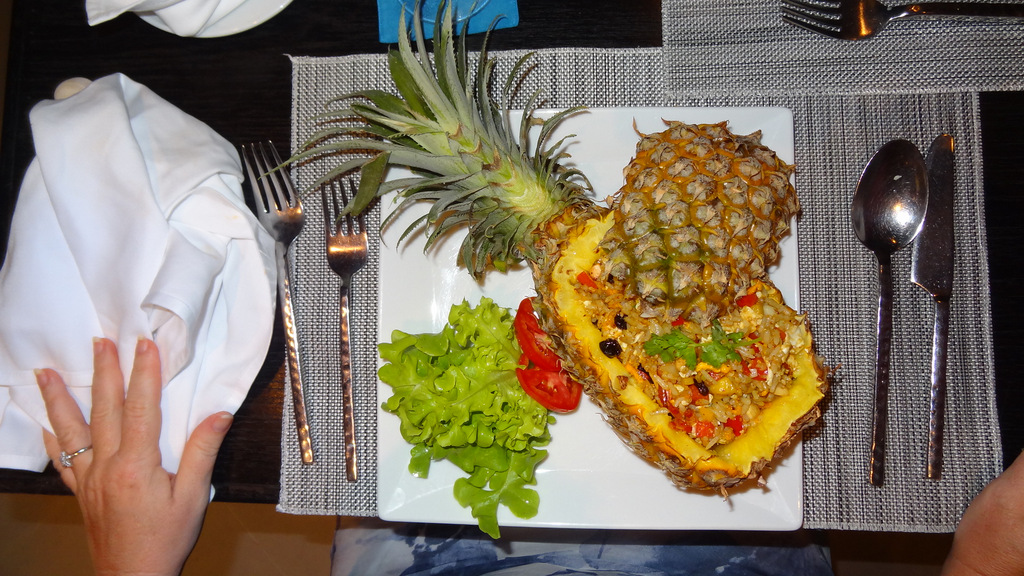 | Nach 10 Stunden Flug erreichen wir am frühen Morgen Ortszeit die thailändische Hauptstadt. Nach unkomplizierter Immigration wechseln wir dann via Transferschalter zum anderen Gate, wo auch schon unser Anschlussflieger nach Phuket bereit steht. Leider zeigt sich das Wetter hier nicht gerade von seiner besten Seite und über Bangkok gehen gerade heftige Regenschauer hernieder. Ebenfalls pünktlich um 07:45 Uhr geht es dann los zur nächsten Etappe nach Phuket. Leider haben wir das Wetter aus Bangkok mitgebracht und auch hier ist es stark bewölkt. Der Regen macht im Moment eine kurze Pause. Nachdem wir unsere Koffer in Empfang genommen haben, bringt uns ein kleiner Minibus ins ca. 100 km entfernte Khao Lak, wo wir gegen 11:00 Uhr in unseren Hotel, dem Ramada Khao Lak-Resort ankommen. Hier werden wir ausgesprochen herzlich empfangen und nach kurzem Check-In können wir dann auf unser Zimmer. Da das Hotel wegen der Nebensaison nur wenig belegt ist, erhalten wir ein Upgrade auf eine Beachfront-Villa. Hier haben wir einen tollen Meerblick direkt vom Zimmer bzw. Terrasse. Leider können wir diesen Blick heute nicht richtig genießen, da gegen Mittag der Monsunregen wieder richtig loslegt und es draußen wie aus Kübeln schüttet. Am Nachmittag drehen wir die erste Runde und buchen einen Ausflug zum sog. James Bond-Felsen. Hoffen wir, dass das Wetter am Montag mitspielt. Im 7 Eleven füllen wir noch unsere Getränkevorräte auf. Auf dem Rückweg zum Ramada bricht wieder der Regen los und wir müssen uns erst einmal unterstellen. Am Abend essen wir im Sassi-Restaurant ganz lecker thailändisch. Leider regnet es unaufhörlich...es kann morgen bloß besser werden. | |